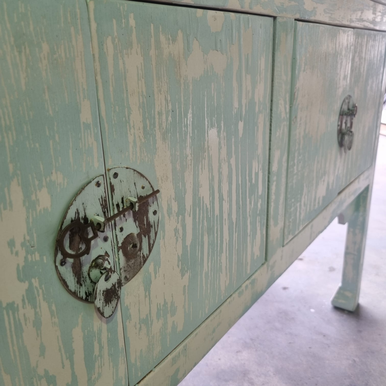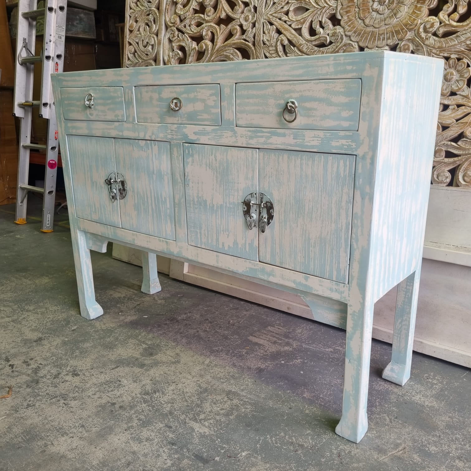 Indian Antique Tribal Beautiful Hand Carved Art Solid Wooden Console Hall Table Blue 130x40x100cm