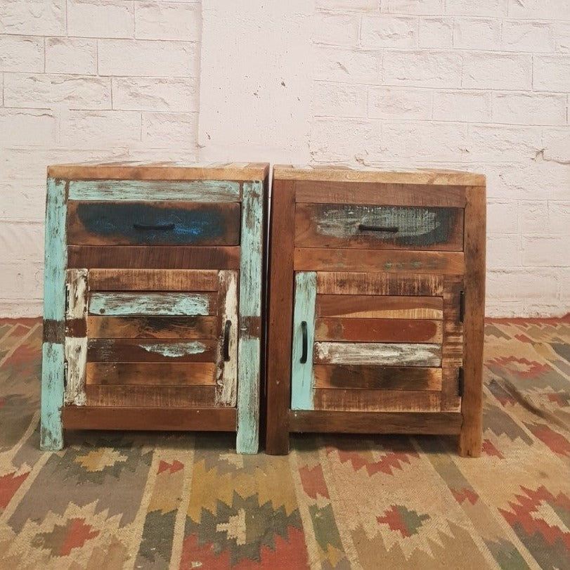 - Original antique wooden bedside in modern colours..
