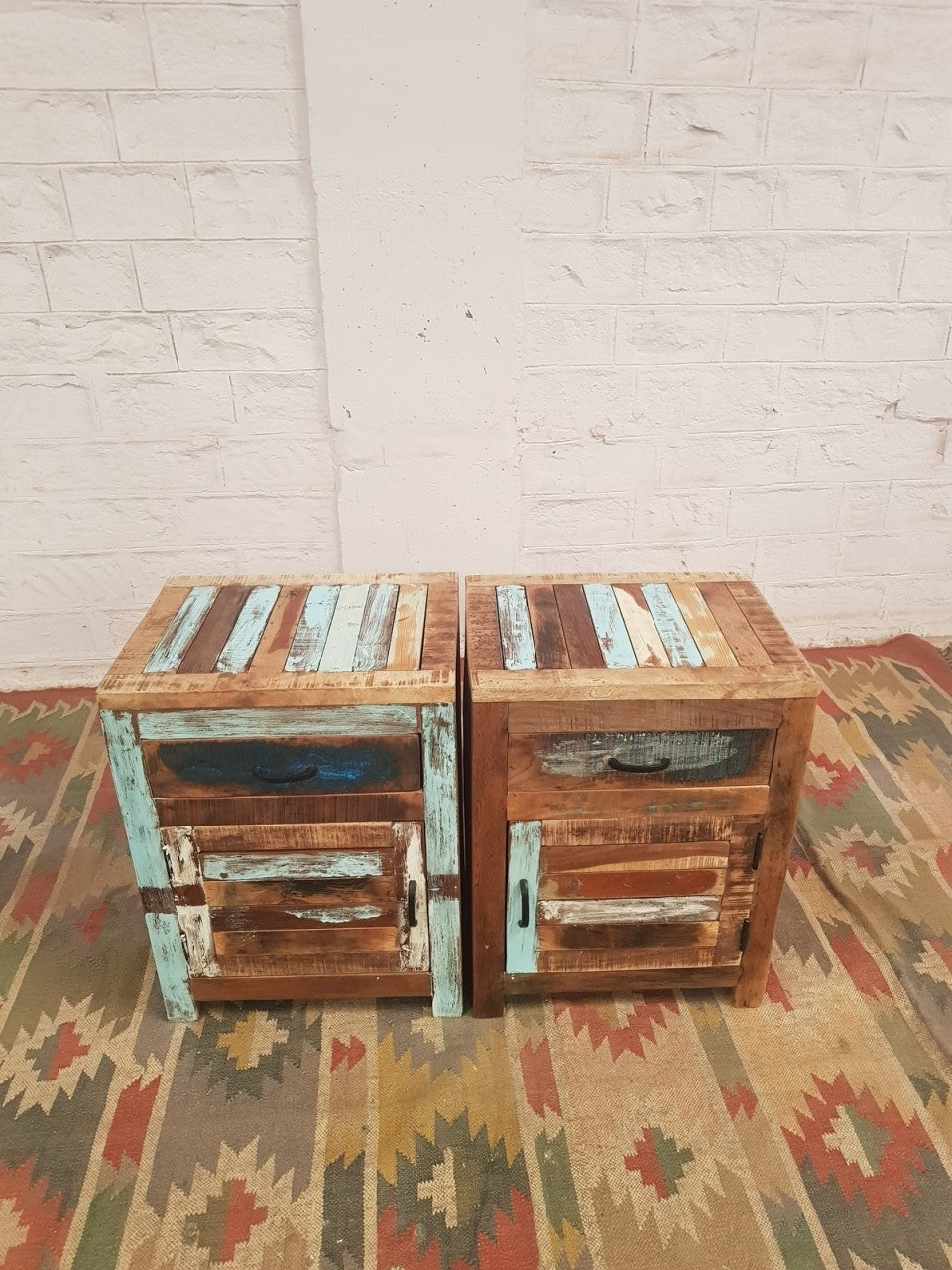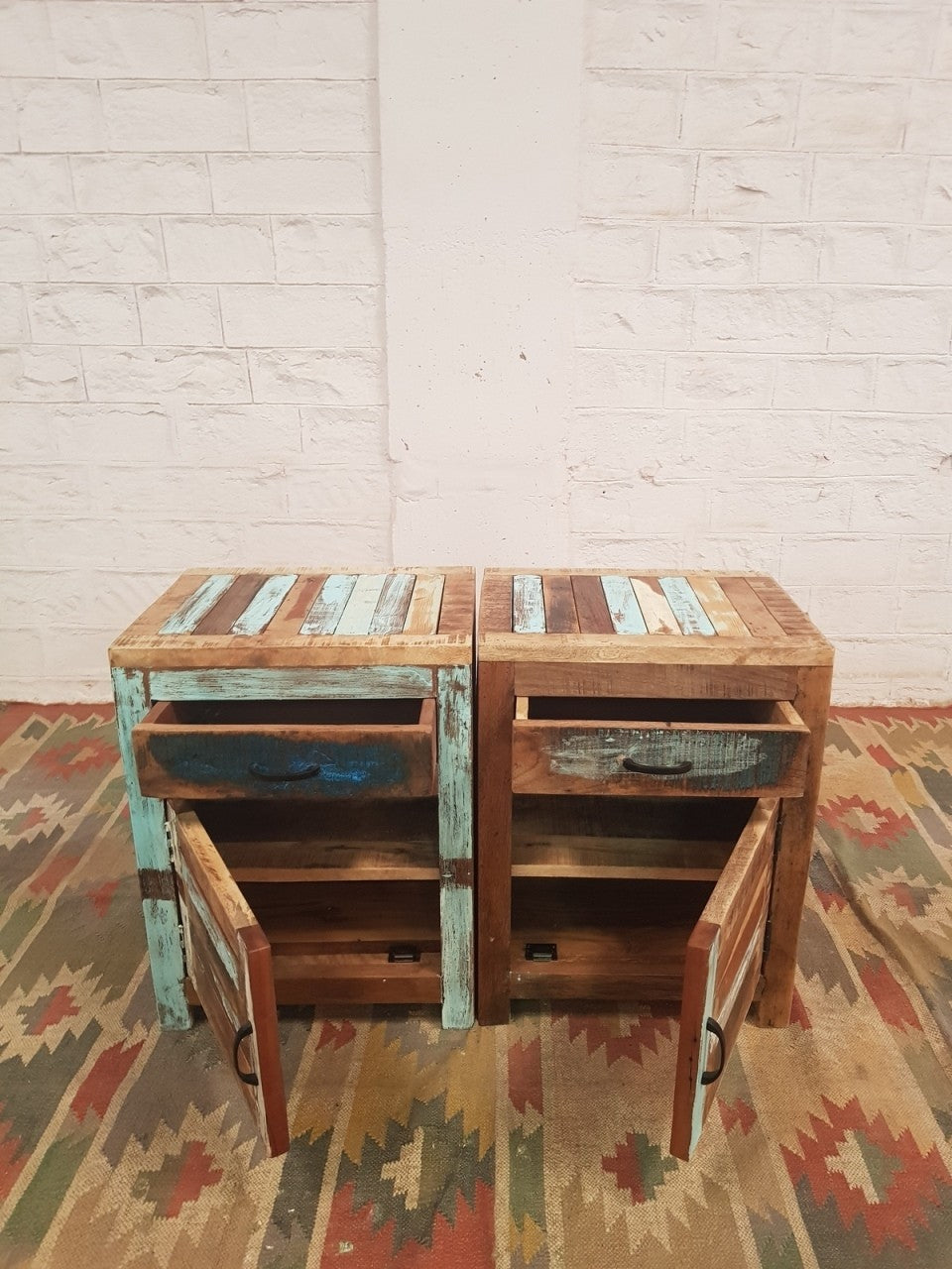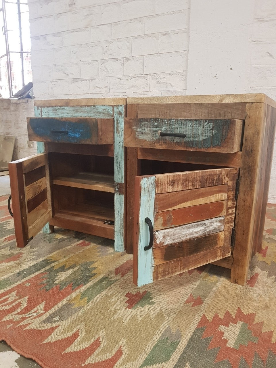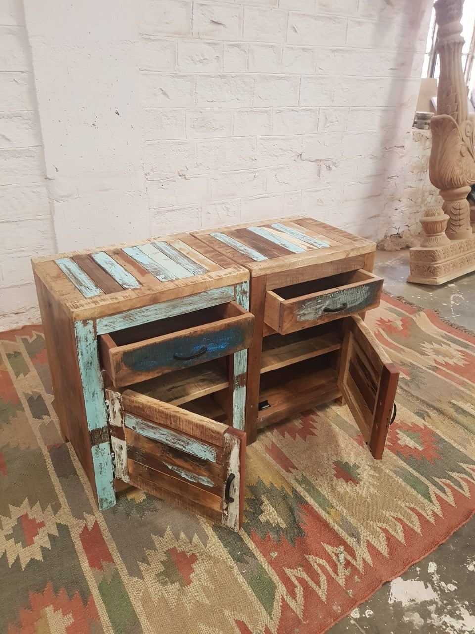 This range of furniture is handmade with solid mango wood. This item is made by refined craftsmen. Modern and beautiful this is a piece of furniture that will suit both classic and contemporary interiors. The colours in this item are rustic and distressed.