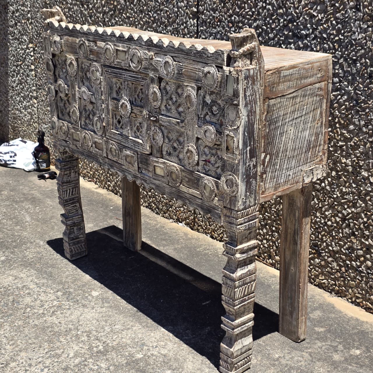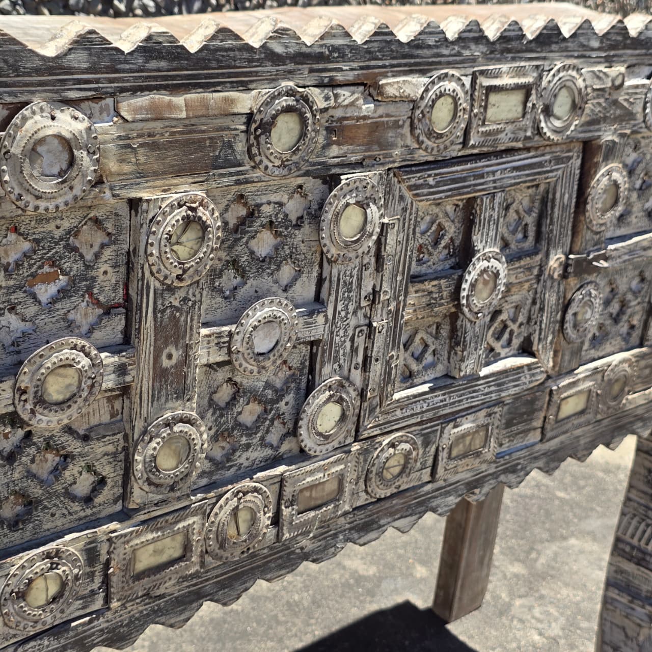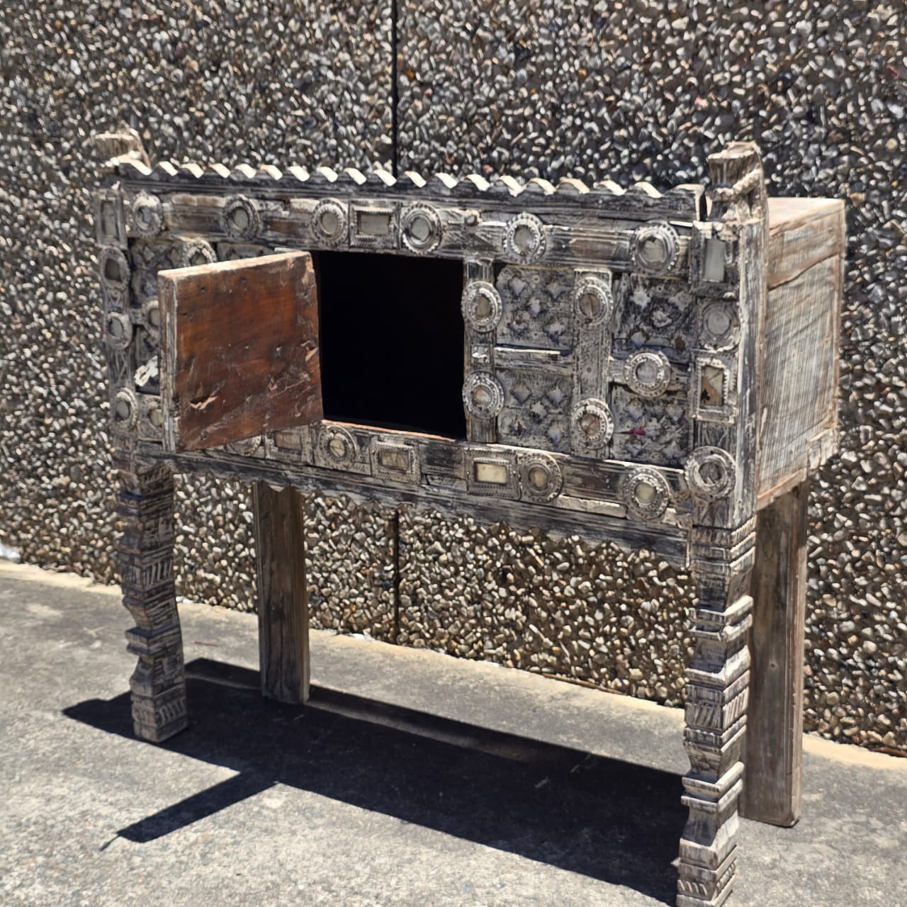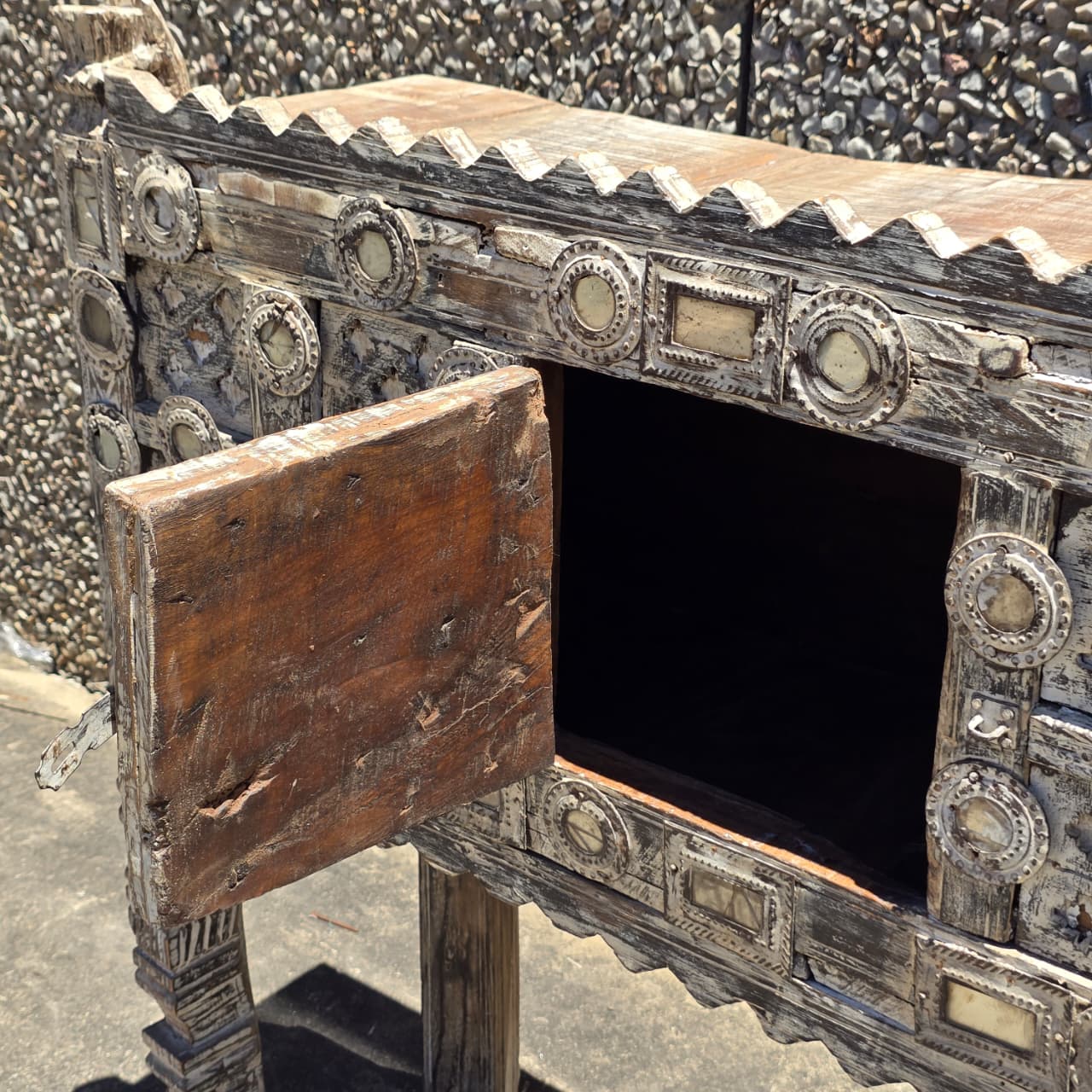 Indian Antique Tribal Hand Carved Art Wooden Damchiya Vanity