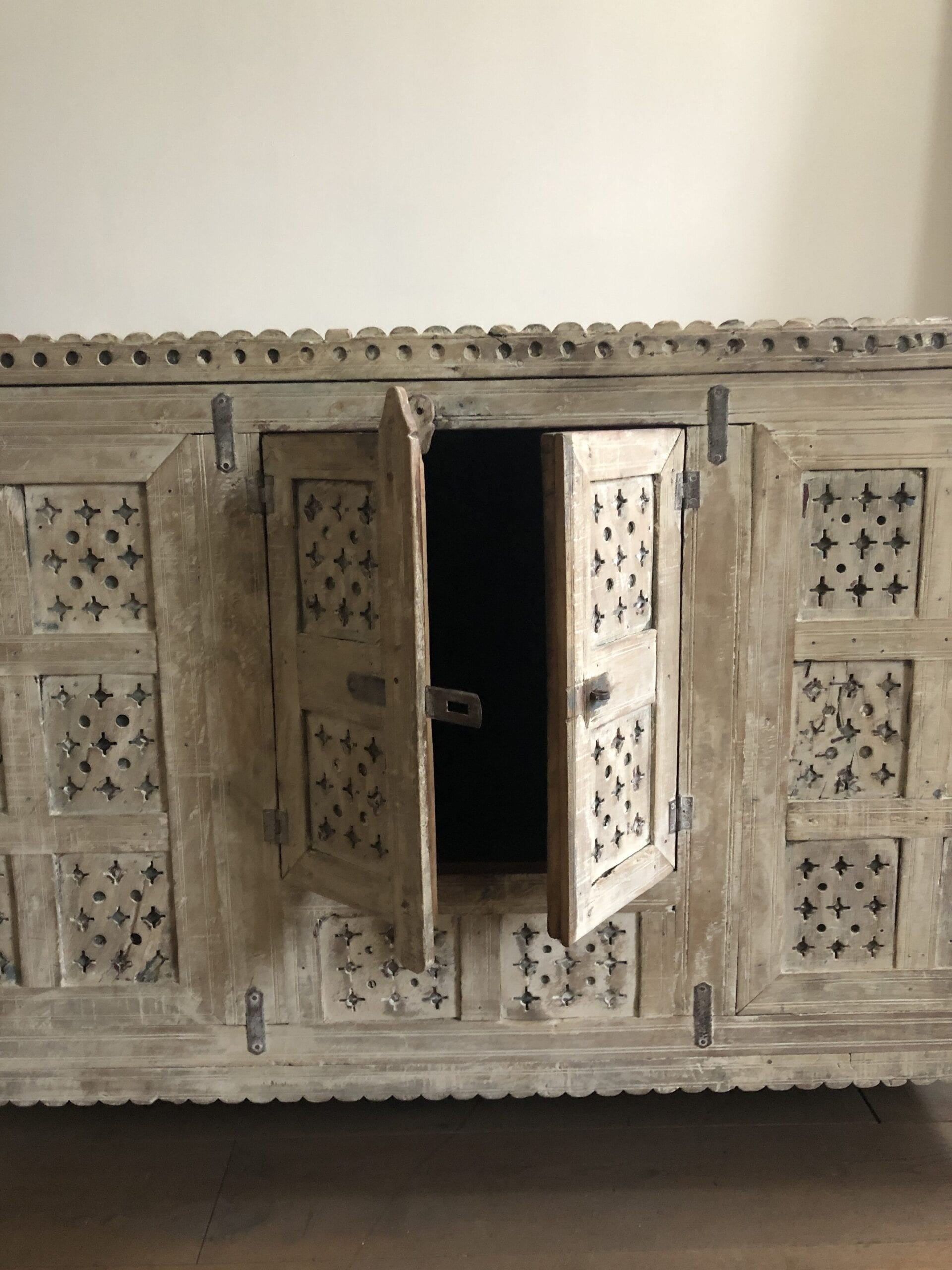 Indian Antique Tribal Hand Carved Art Wooden Damchiya Whitewash 150cm