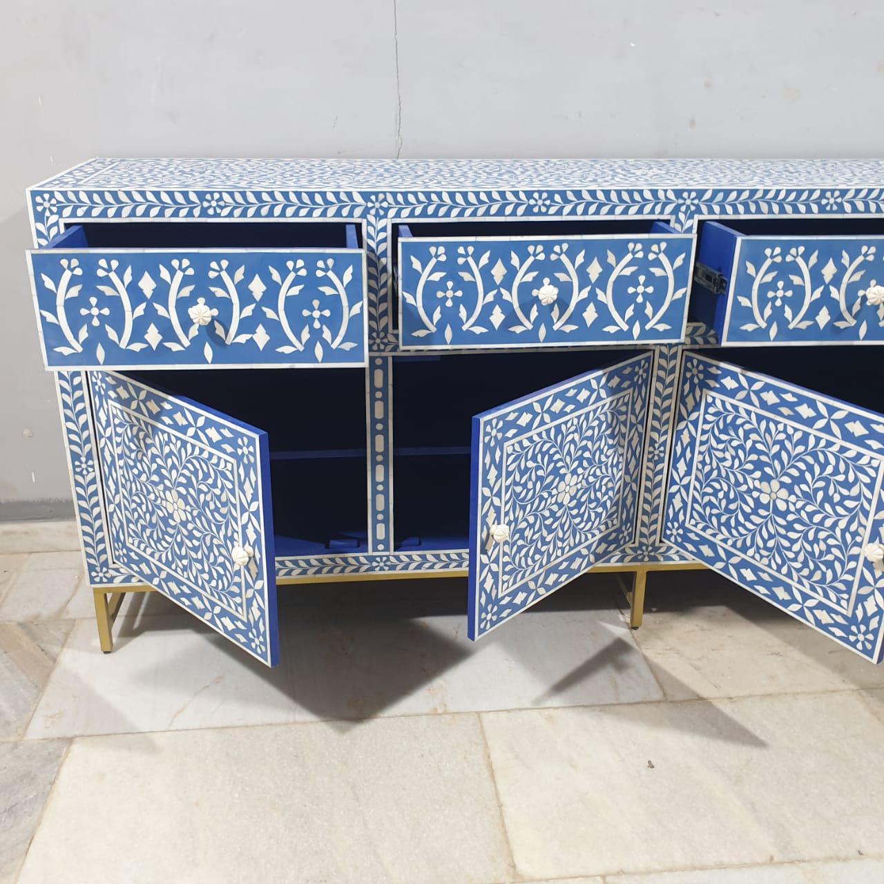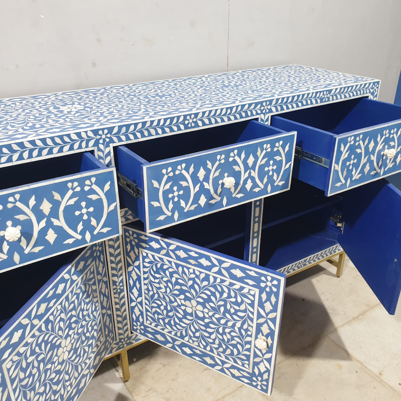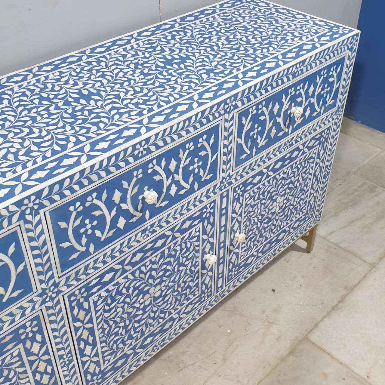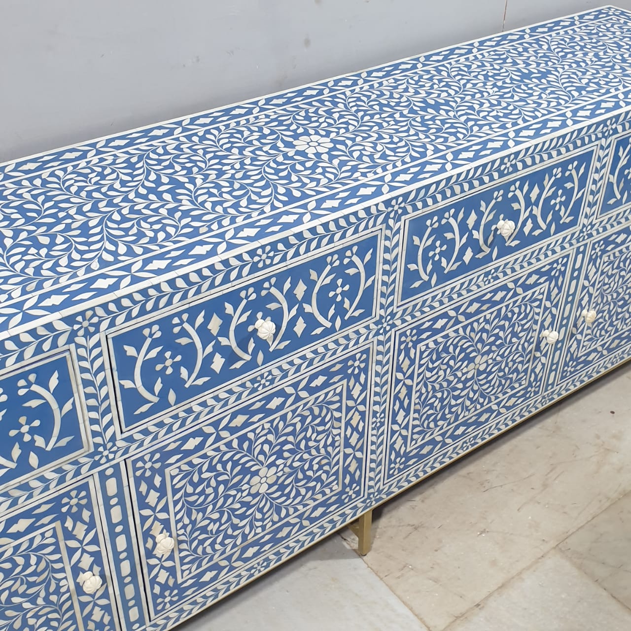 Indian Bone Inlay Floral Pattern Sideboard Hutch Buffet C38