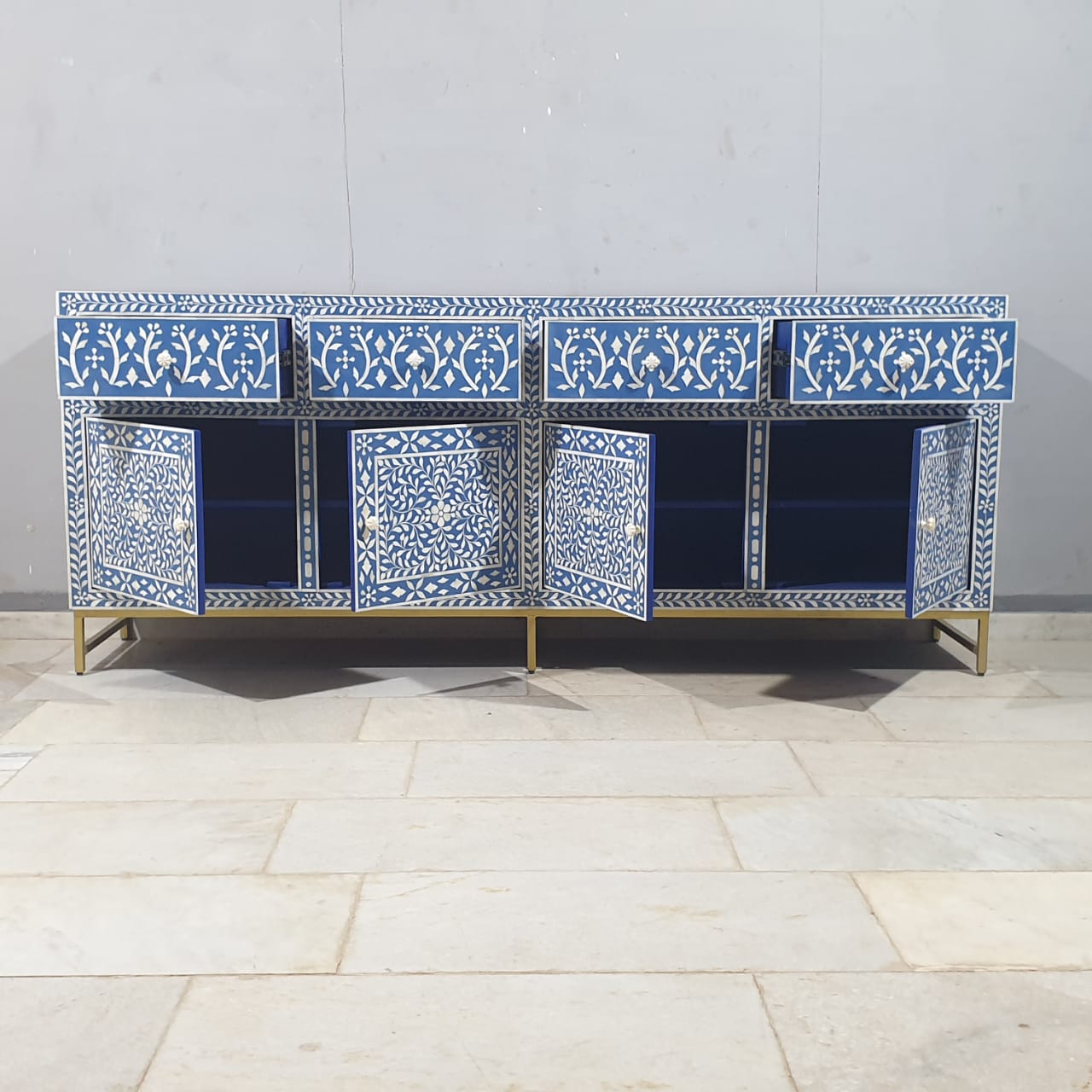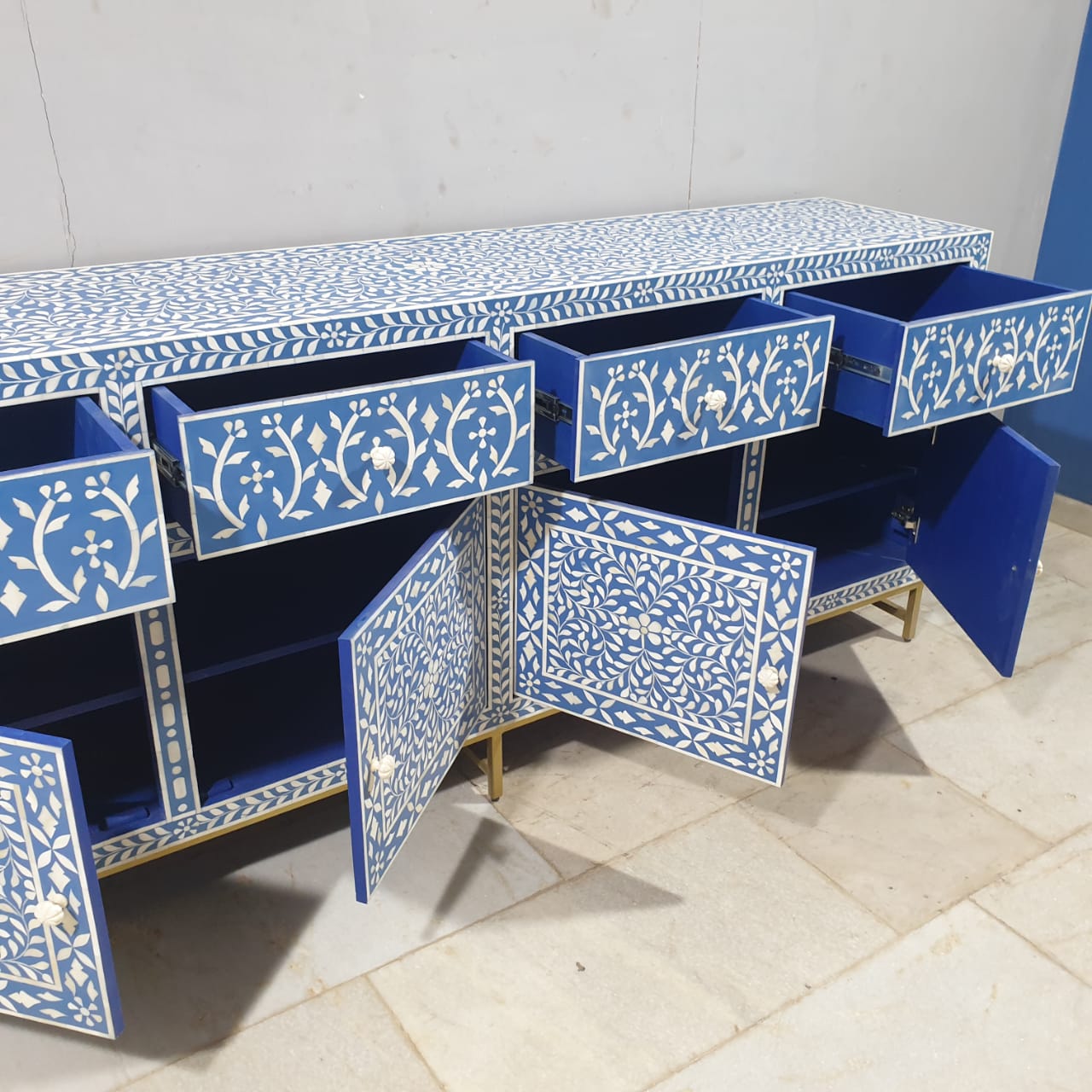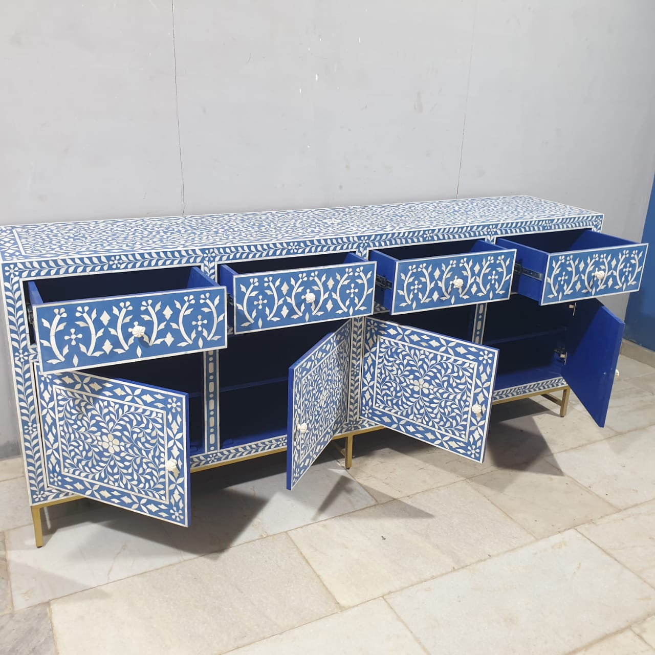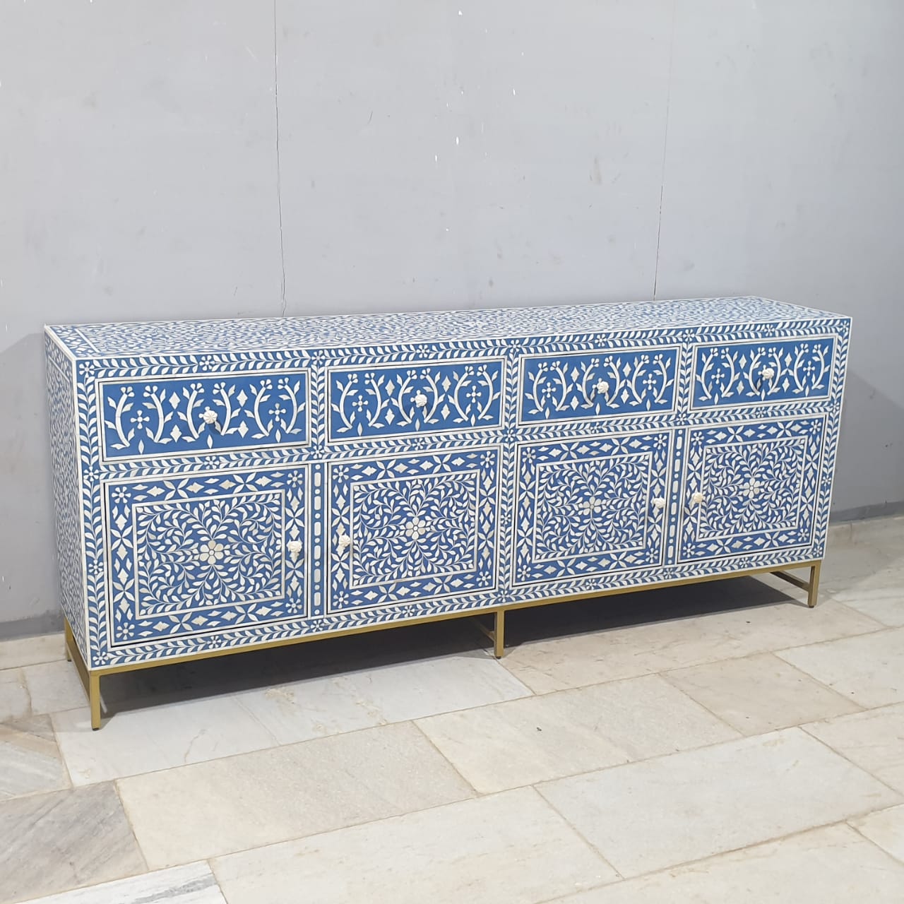 Indian Bone Inlay Floral Pattern Sideboard Hutch Buffet C38