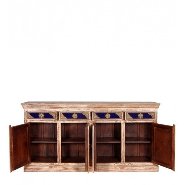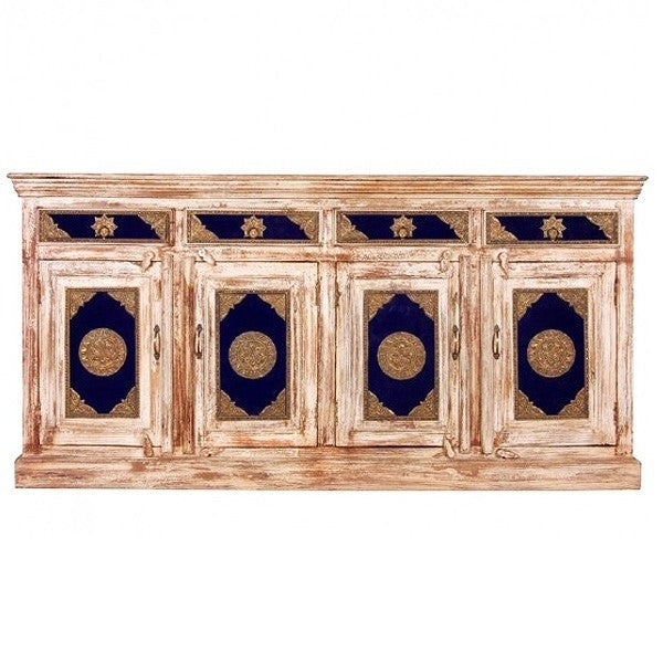 This listing includes : 1 x Indian Brasswork white blue Sideboard