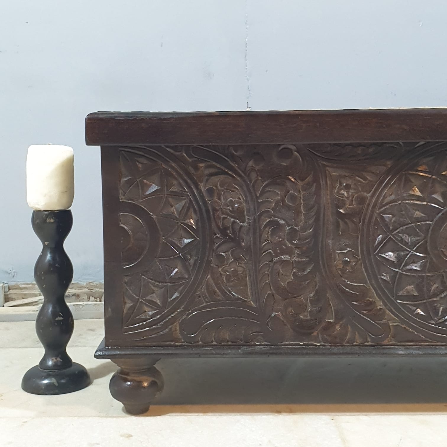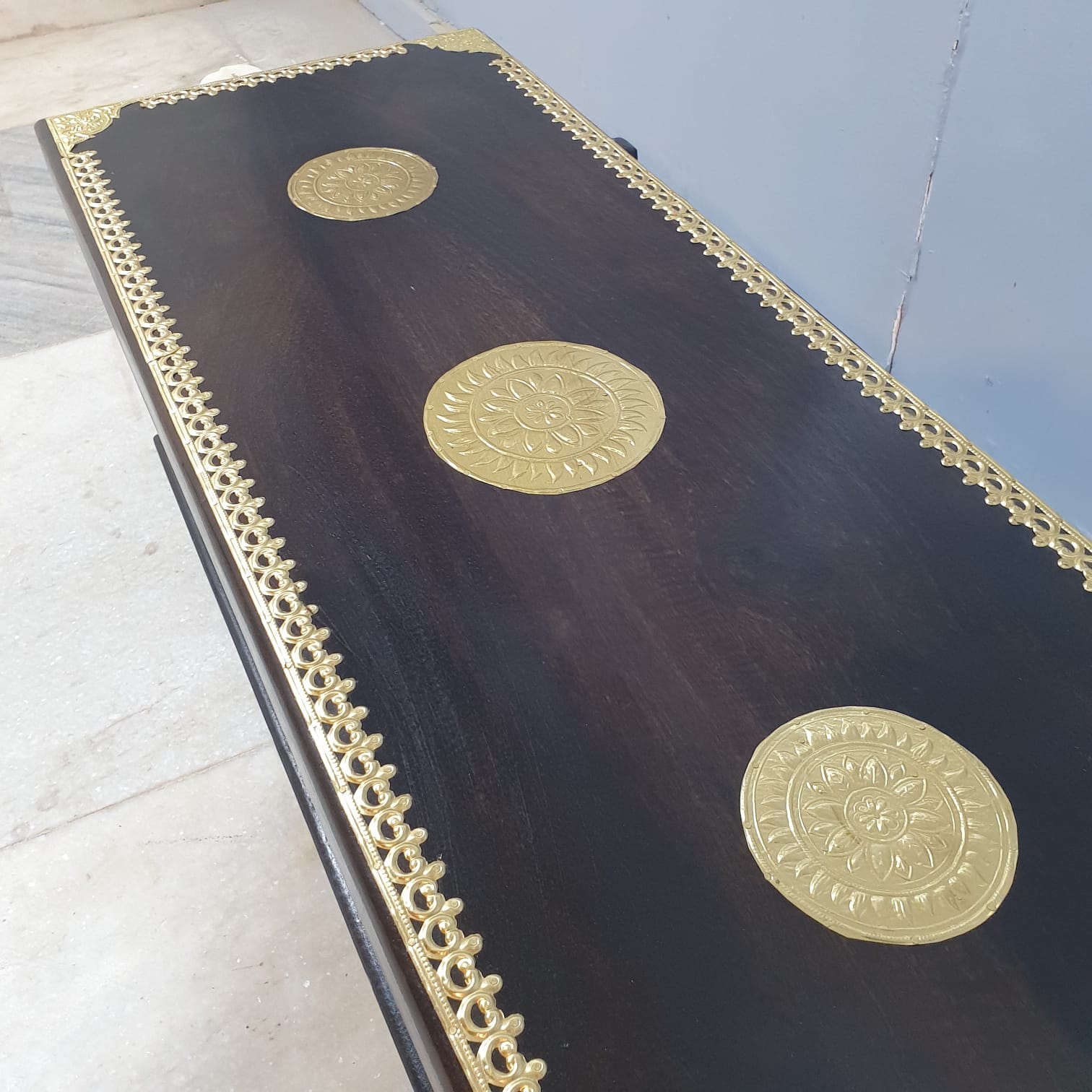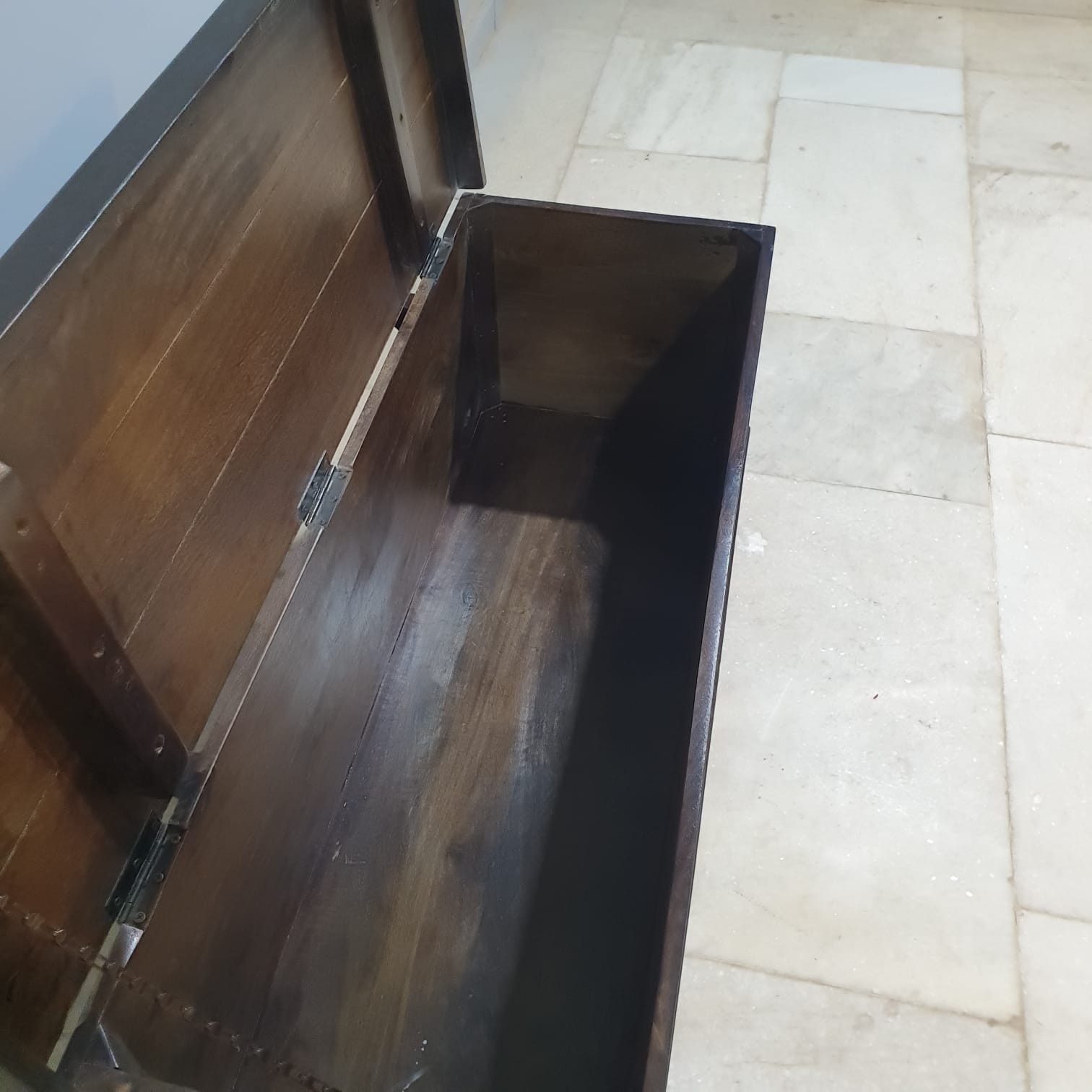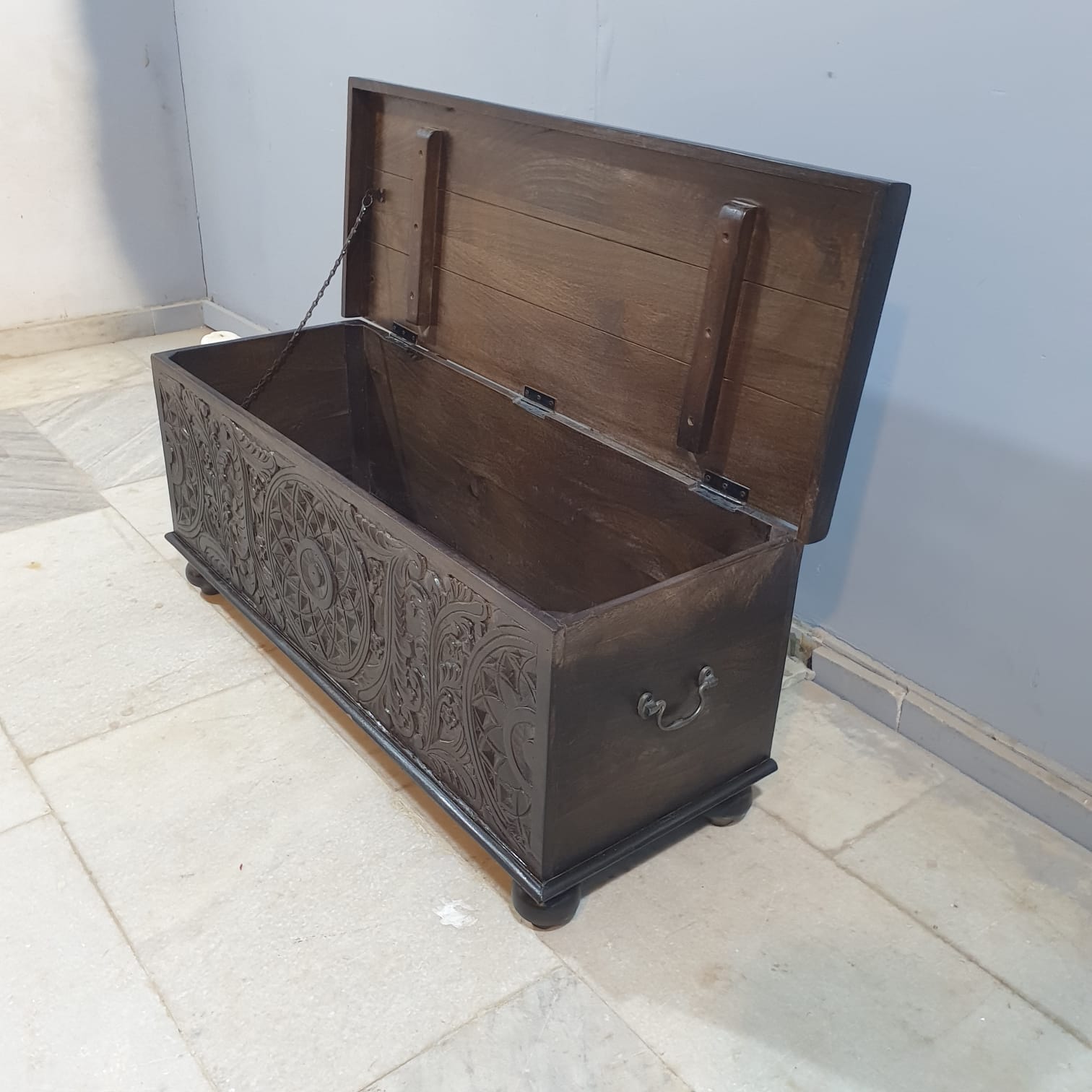 Indian Furniture Brass Work Solid Hard Wood Carved Blanket Box B4