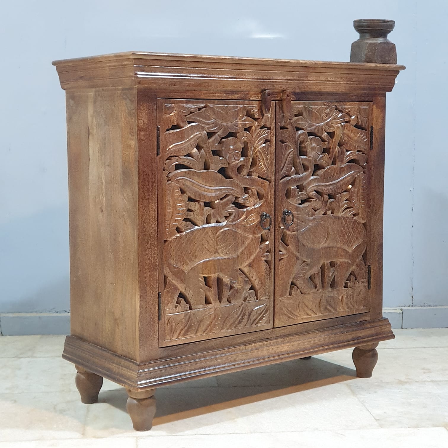 Indian Furniture Hand Carved Solid Wood Cabinet 90x40x90 Cm