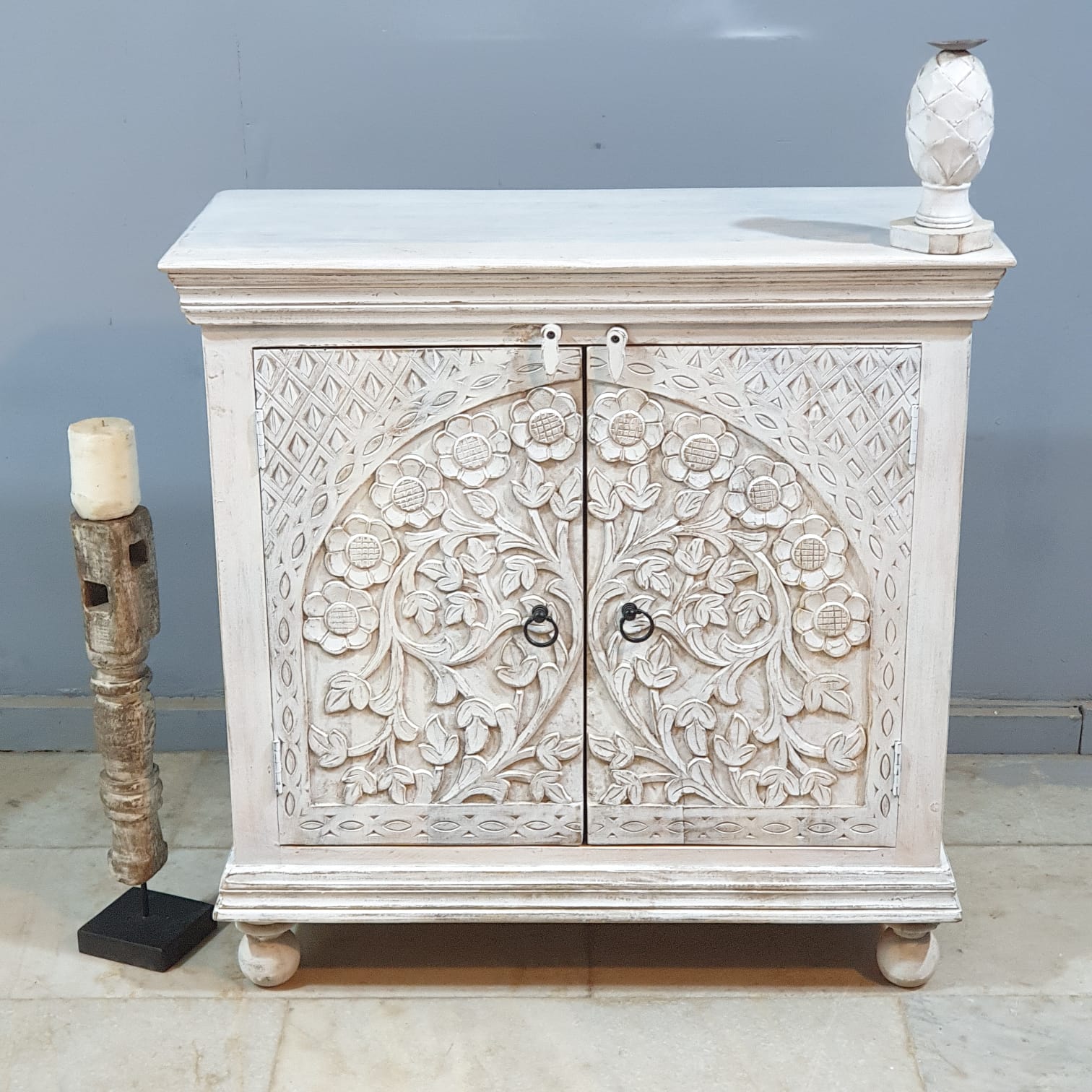 Indian Furniture Hand Carved Solid Wood Cabinet 90x40x90 Cm
