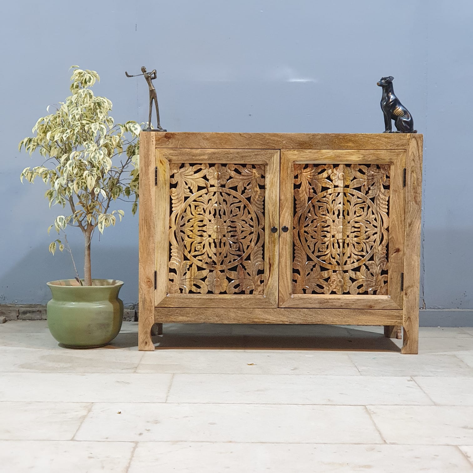 Indian Furniture Hand Carved Solid Wood Small Cabinet 100x40x80 Cm