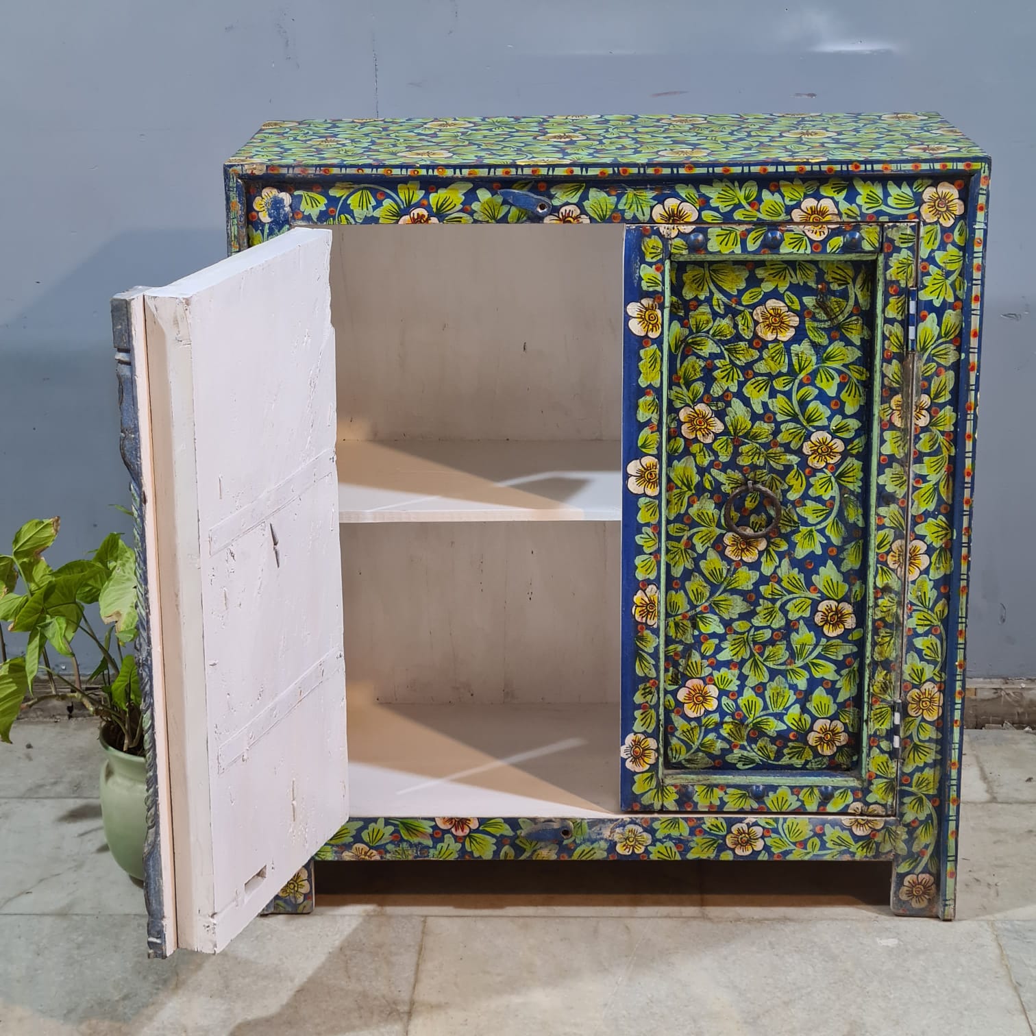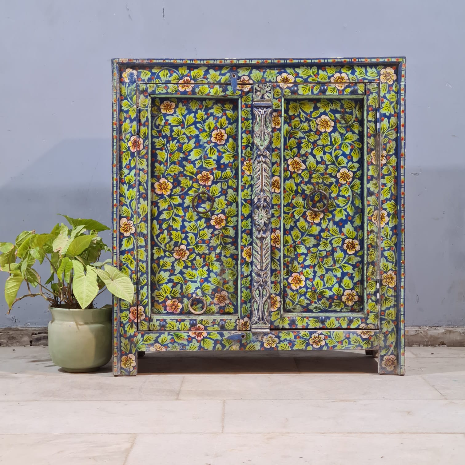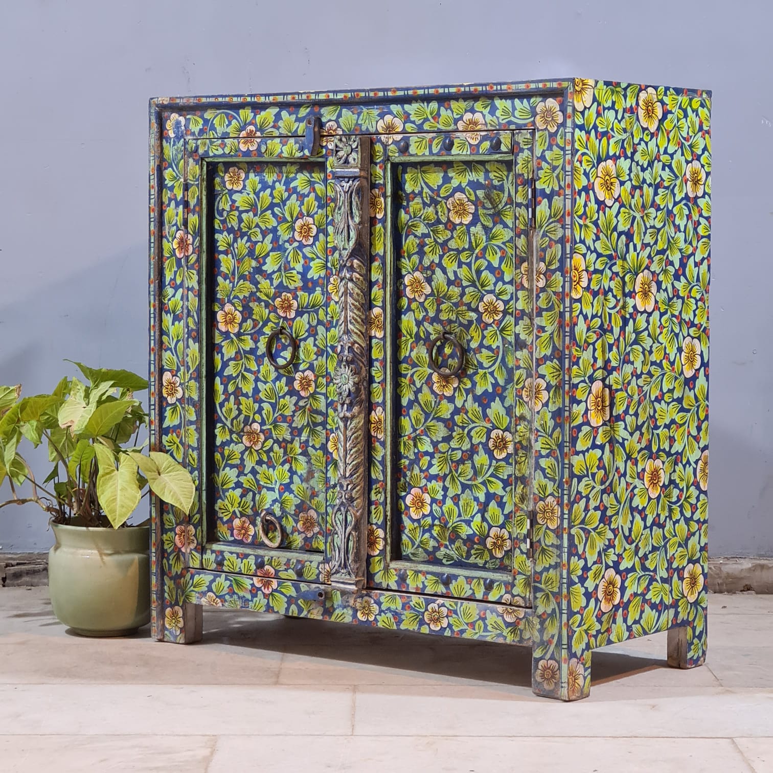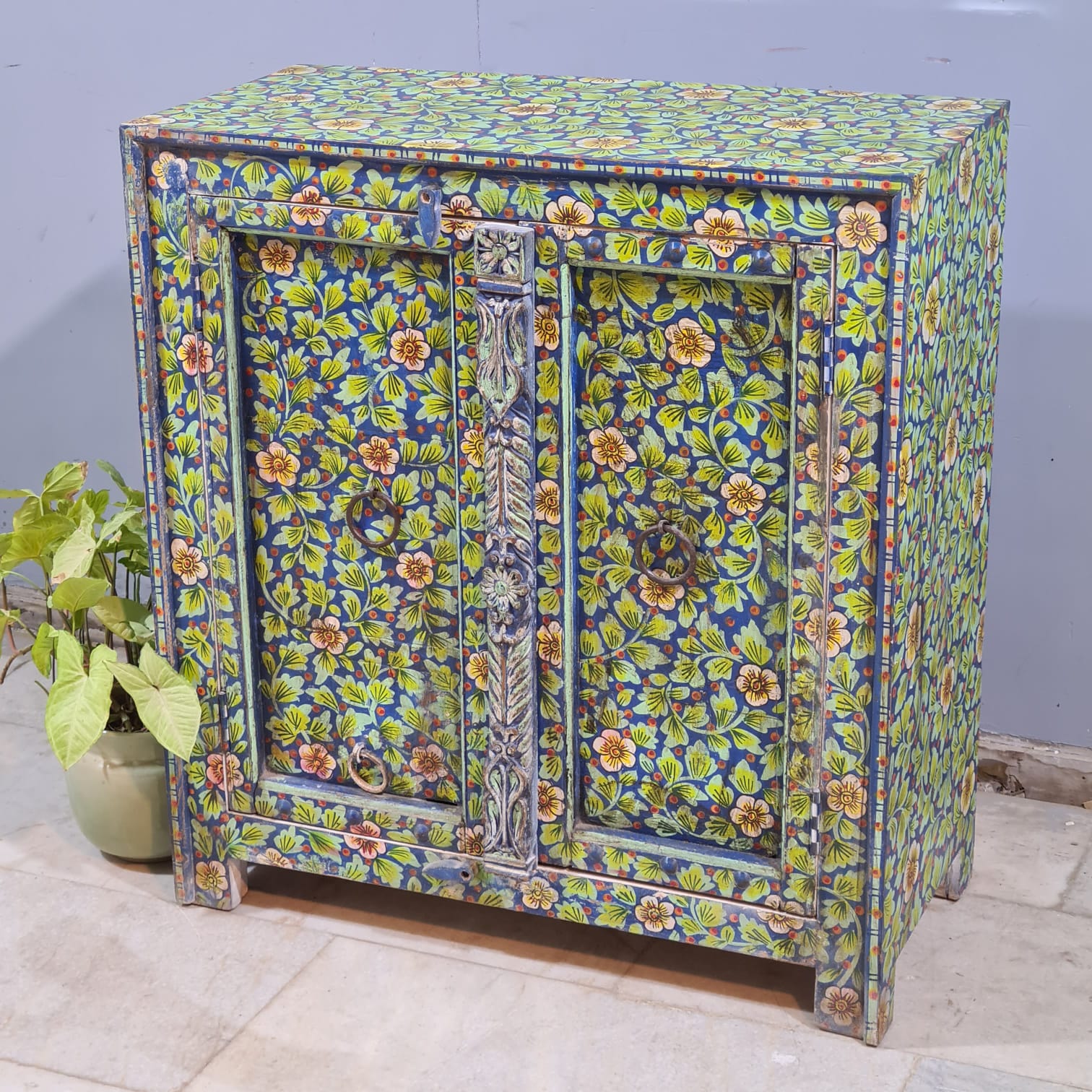 Indian Furniture Hand Painted Solid Wood Cabinet 90X43X98 Cm
