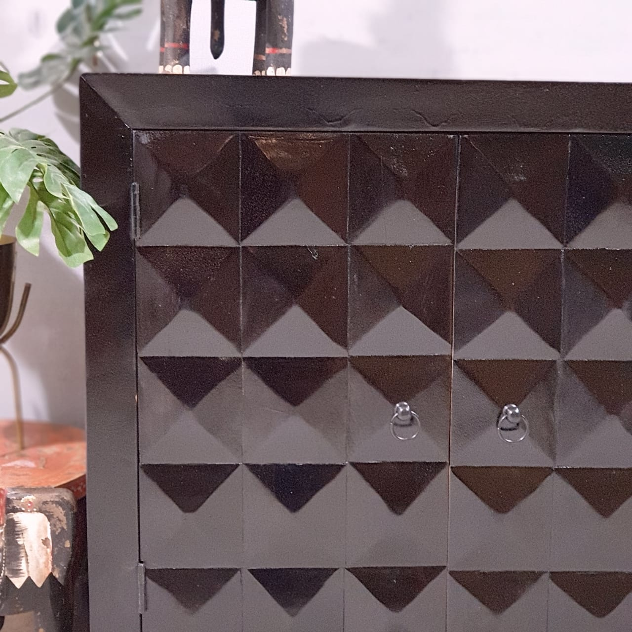 Indian Furniture Handmade Solid Wood Cabinet 2 Door Carved Black 90x40x90Cm