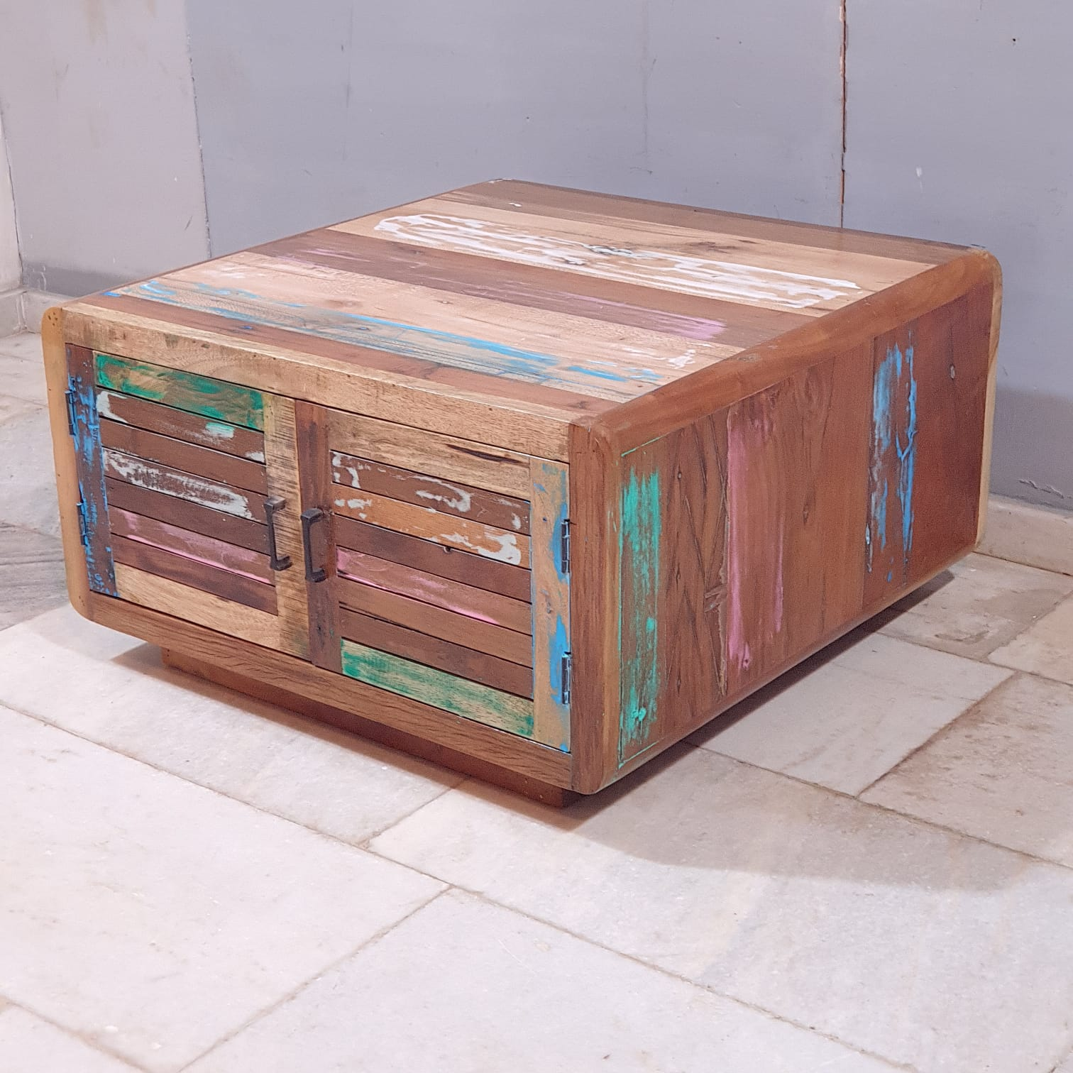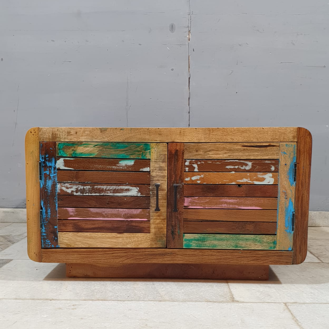 Indian Furniture Handmade Solid Wood Cabinet 2 Door Carved MultiColor 80x80x45Cm