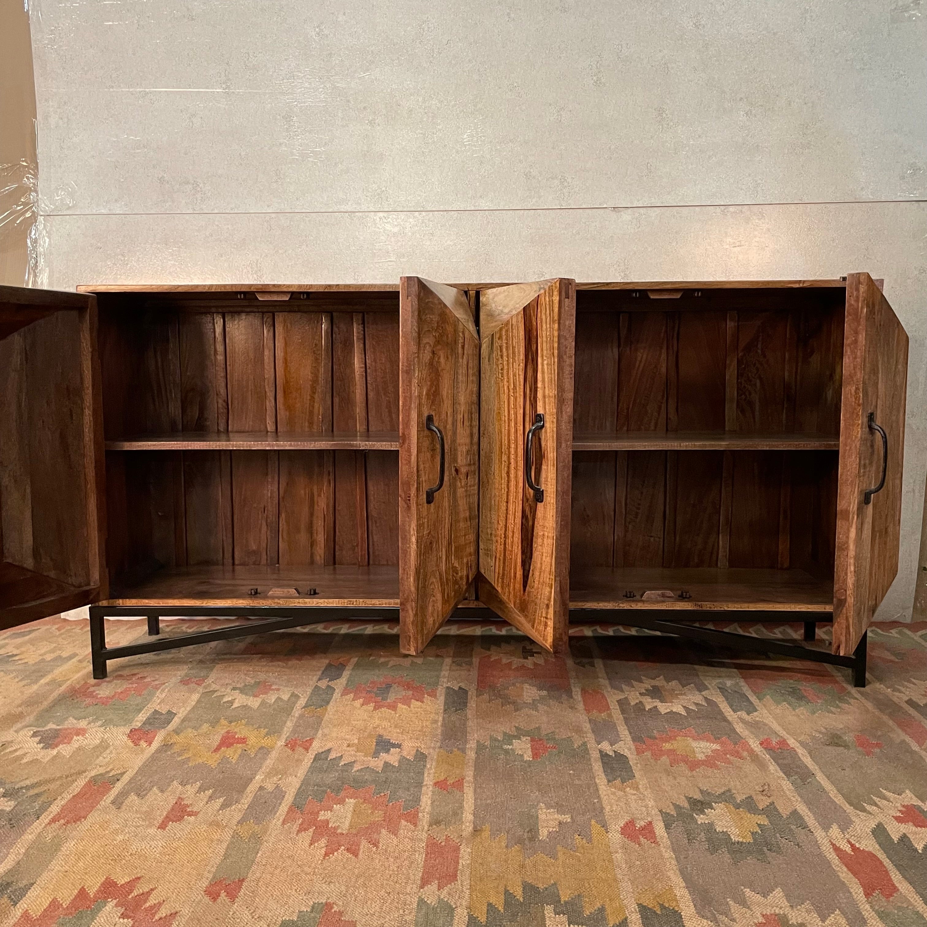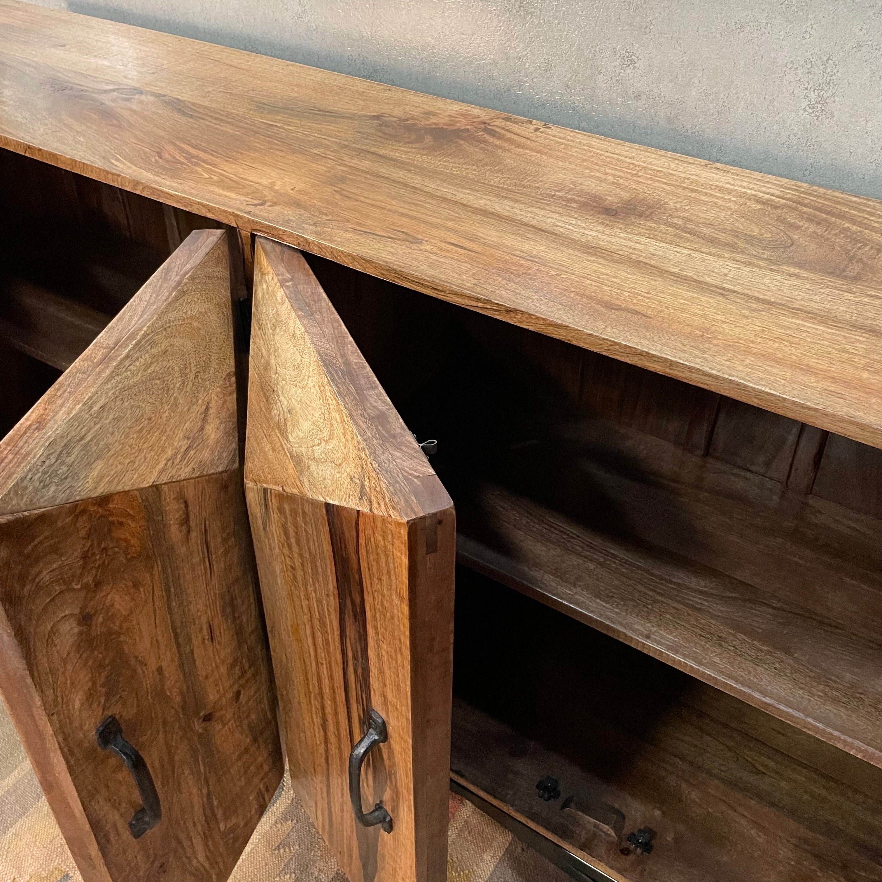 Indian Furniture Handmade Solid Wood Sideboard Carved 4 Doors Brown Modish 180x40x93Cm
