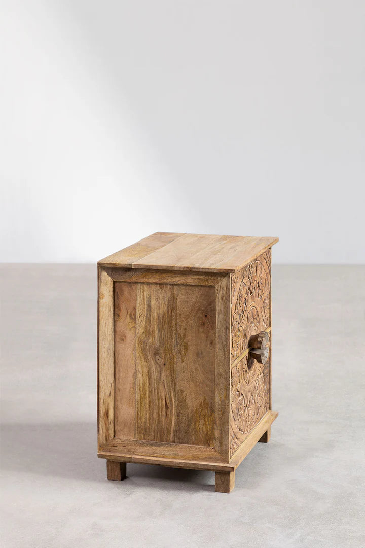 Indian Hand Carved Mango Wood Bedside Table 37