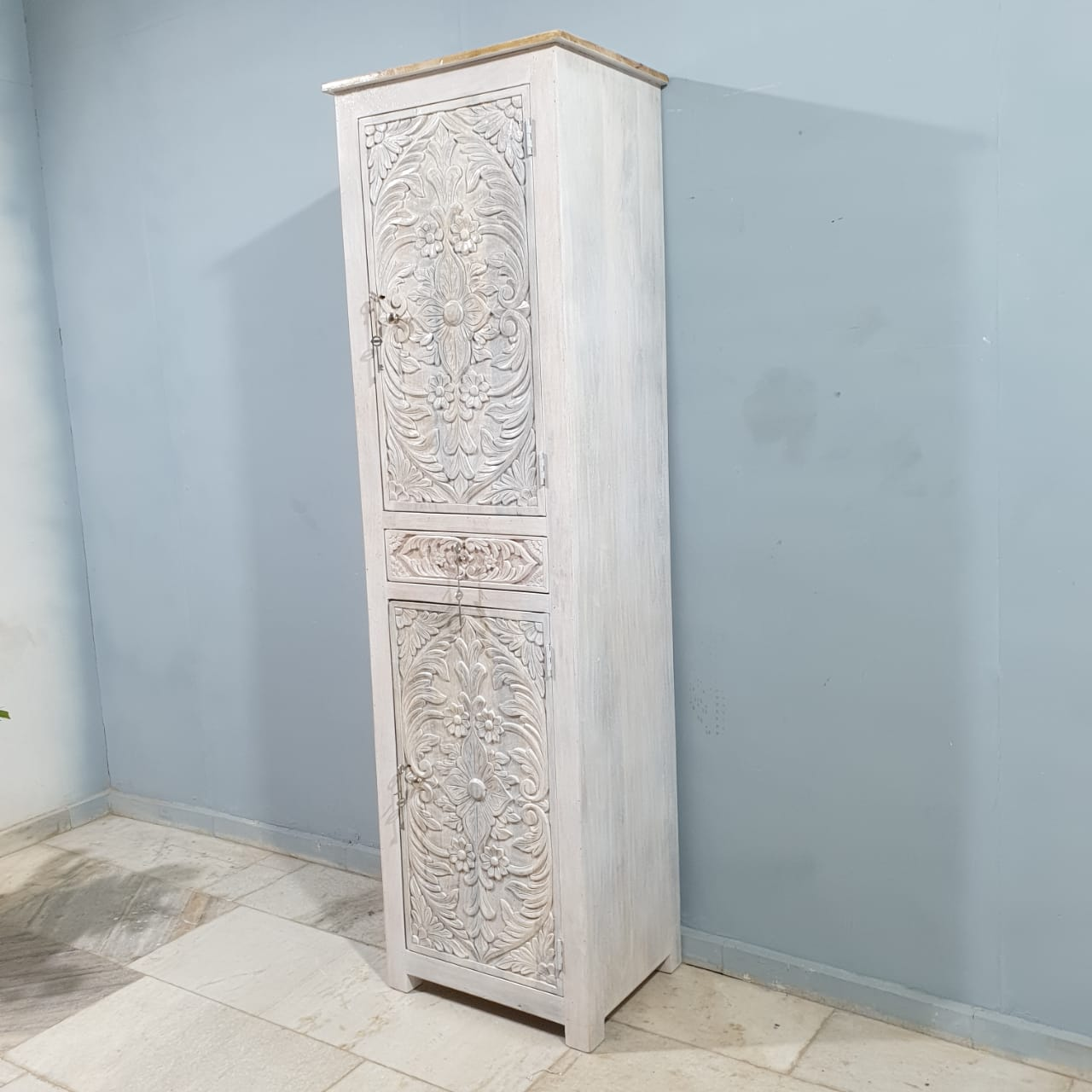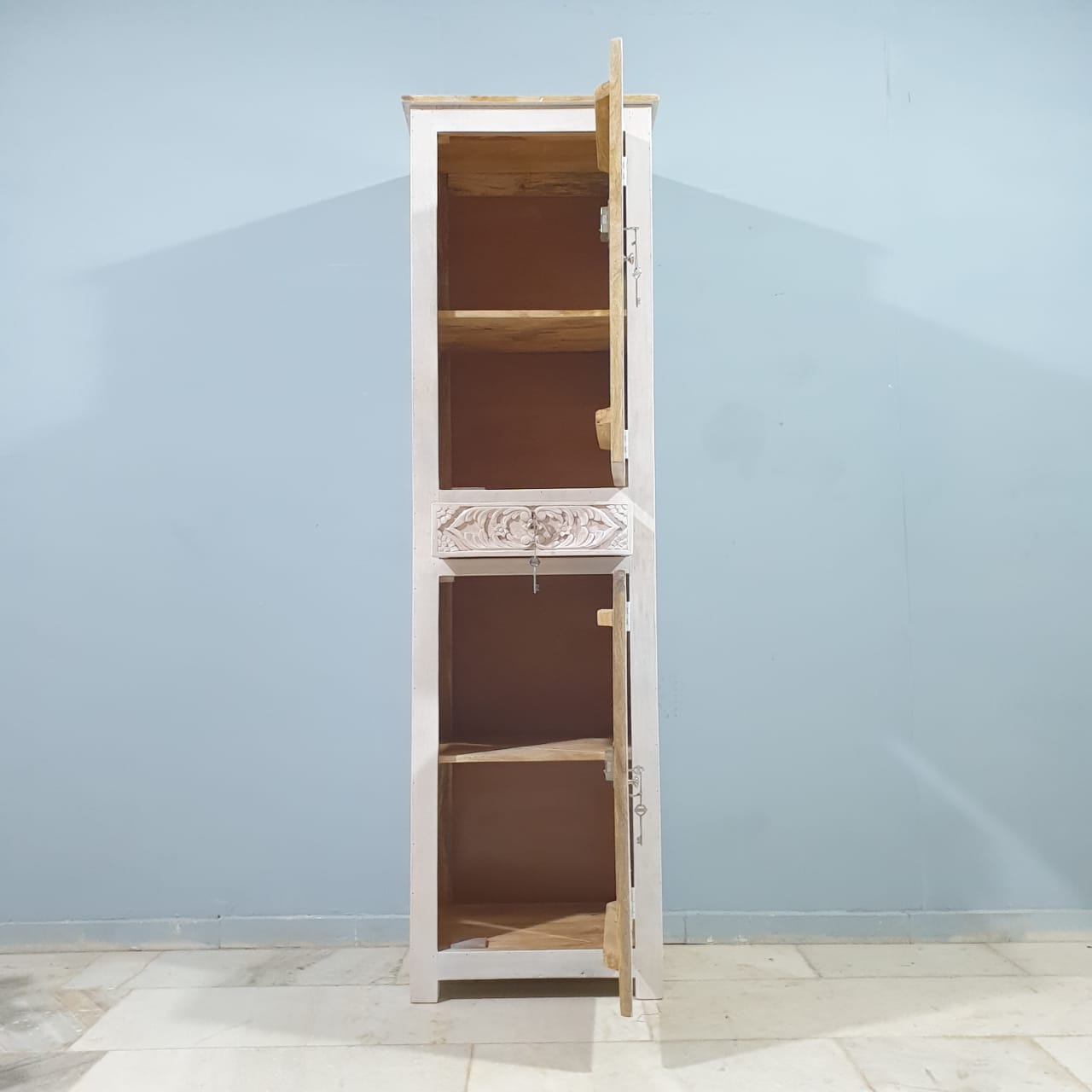 Indian Hand Carved Mango Wood 2 Doors and 1 Drawer Cabinet D116