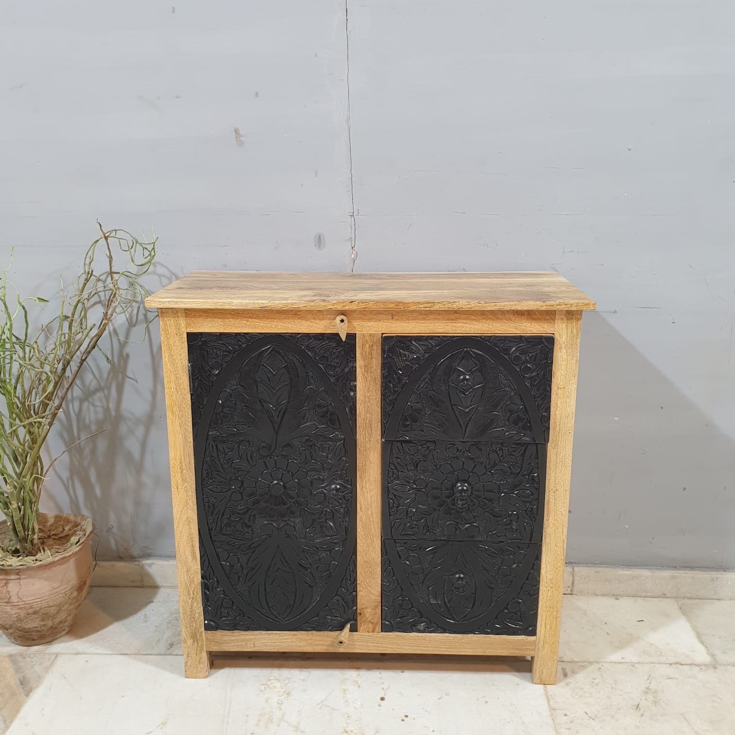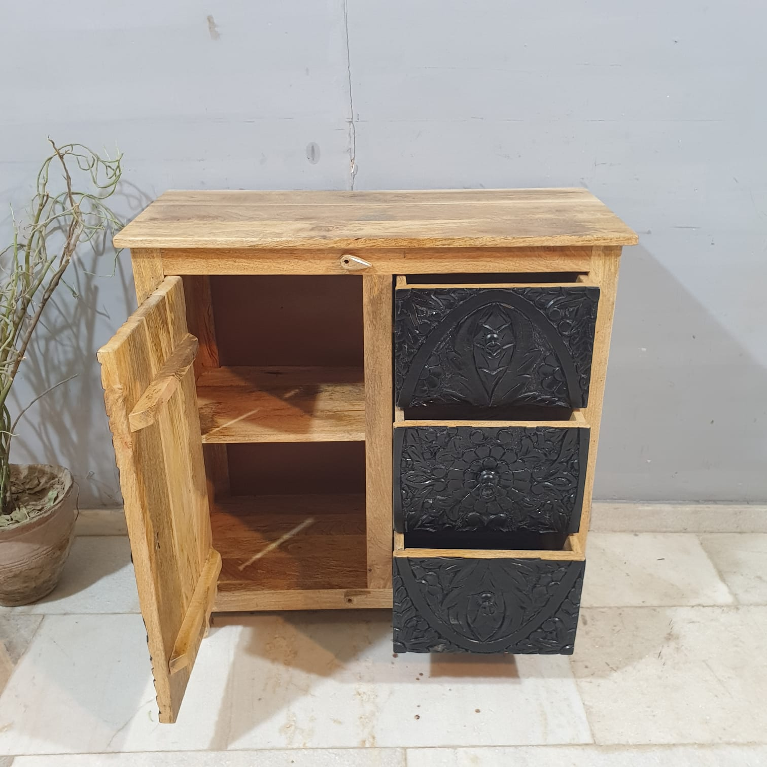 Indian Hand Carved Mango Wood Cabinet Vanity D113