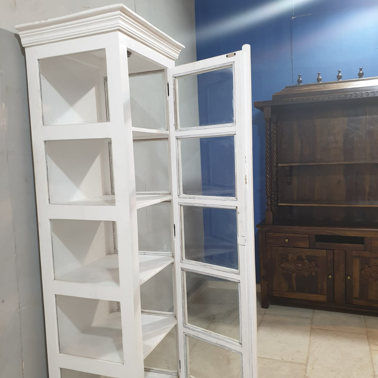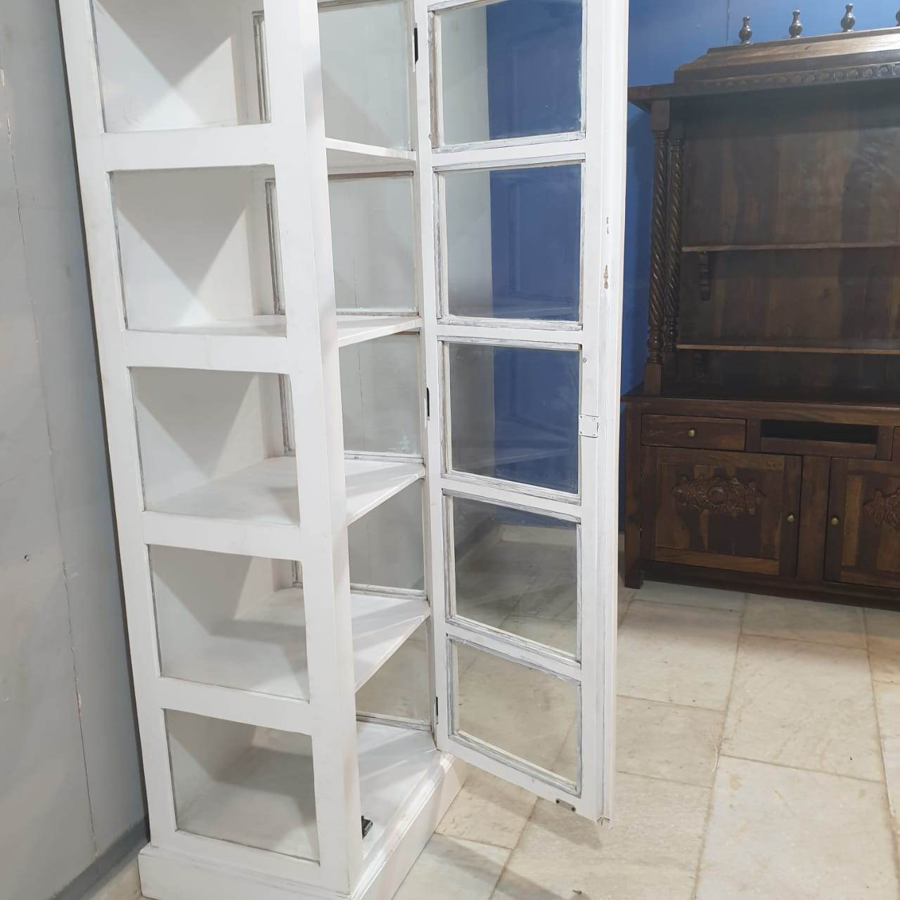 Indian Hand Carved Mango Wood Display Cabinet D105