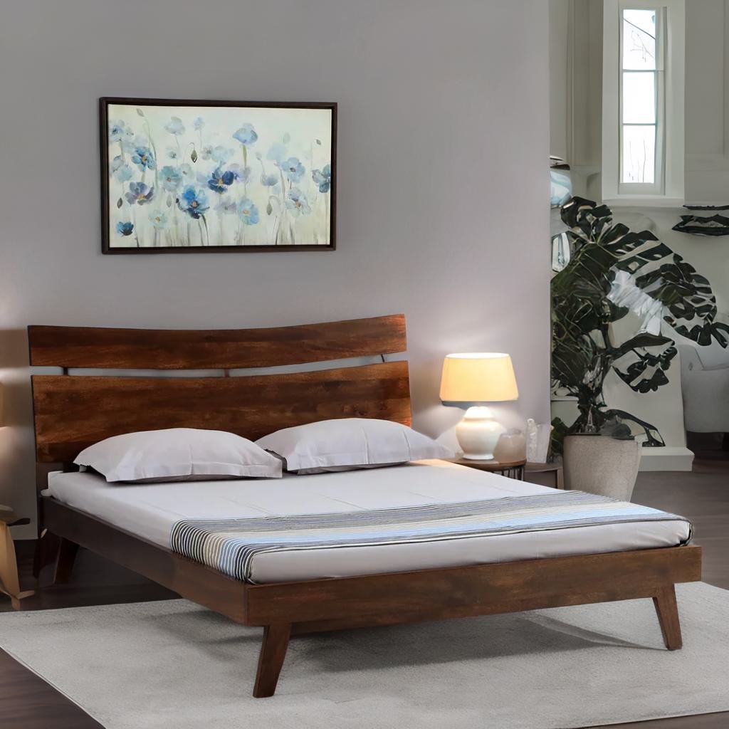 Indian Hand Carved Modern Mango Wood King Size Bed Tubaq Finish 137