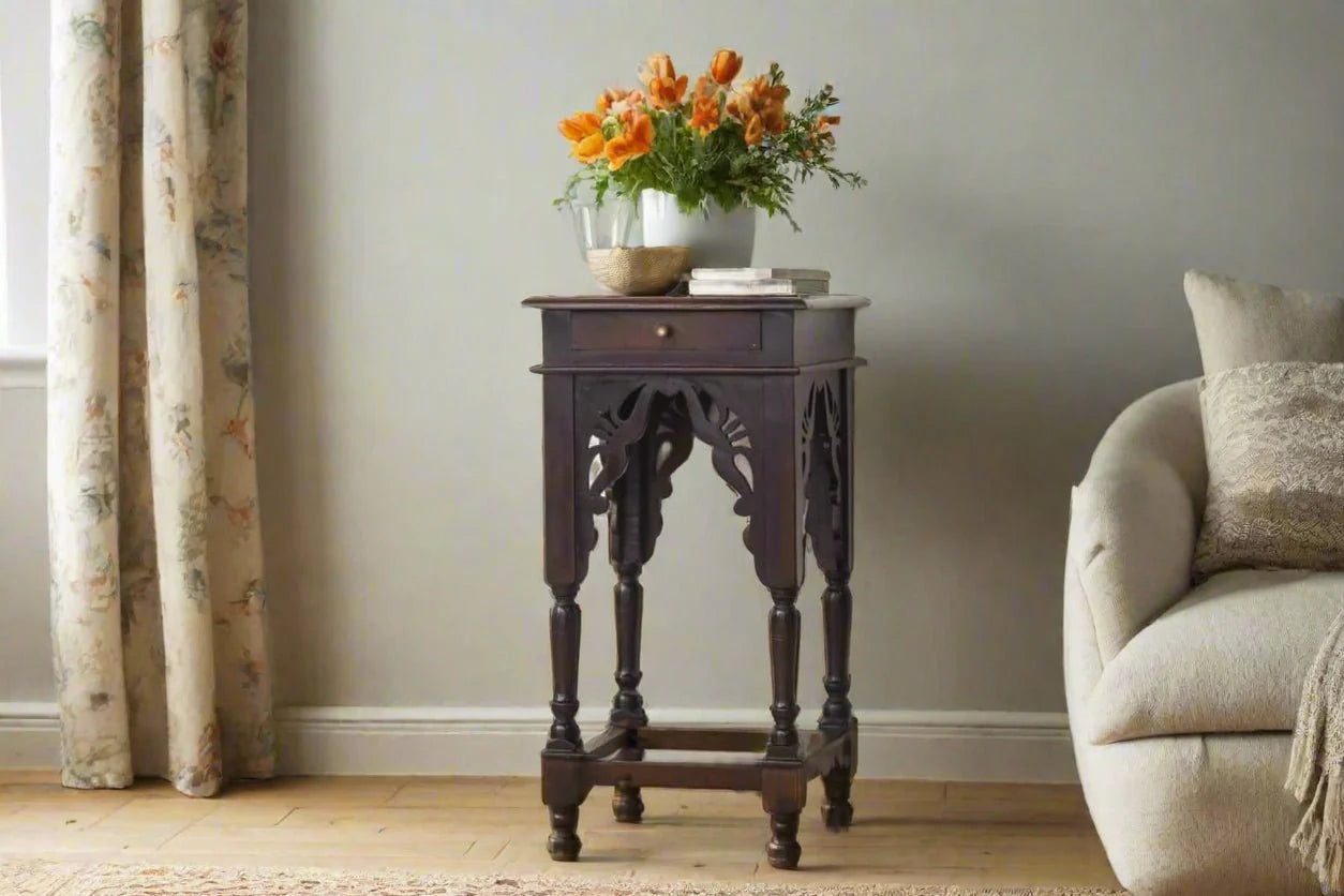 Indian Hand Carved Sheesham Wood Side Table