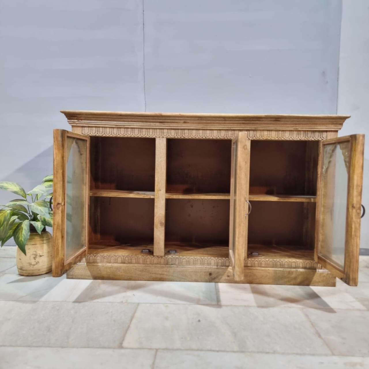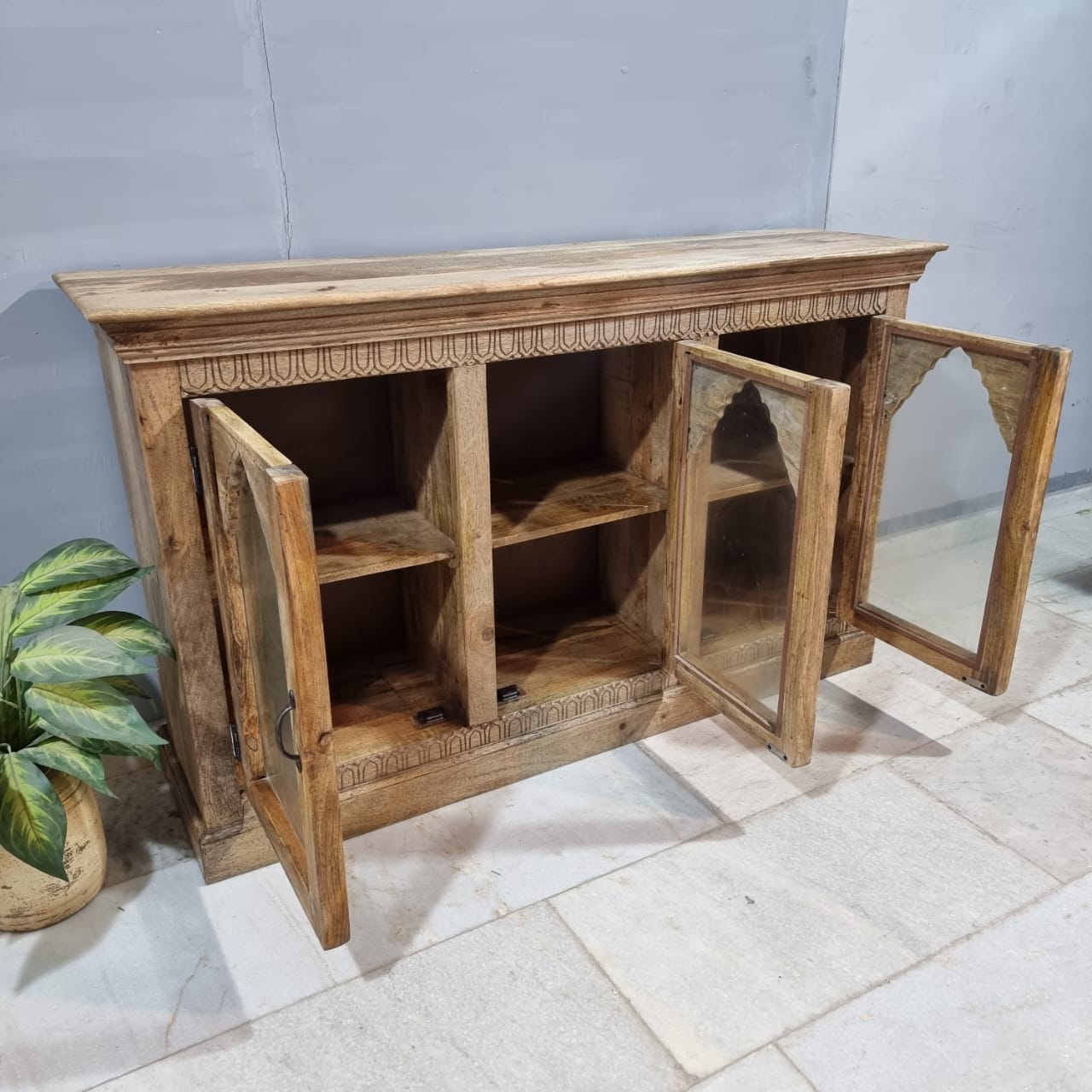 Indian Hand Carved Solid Hard Wood Sideboard C45