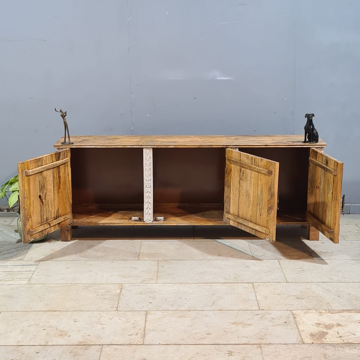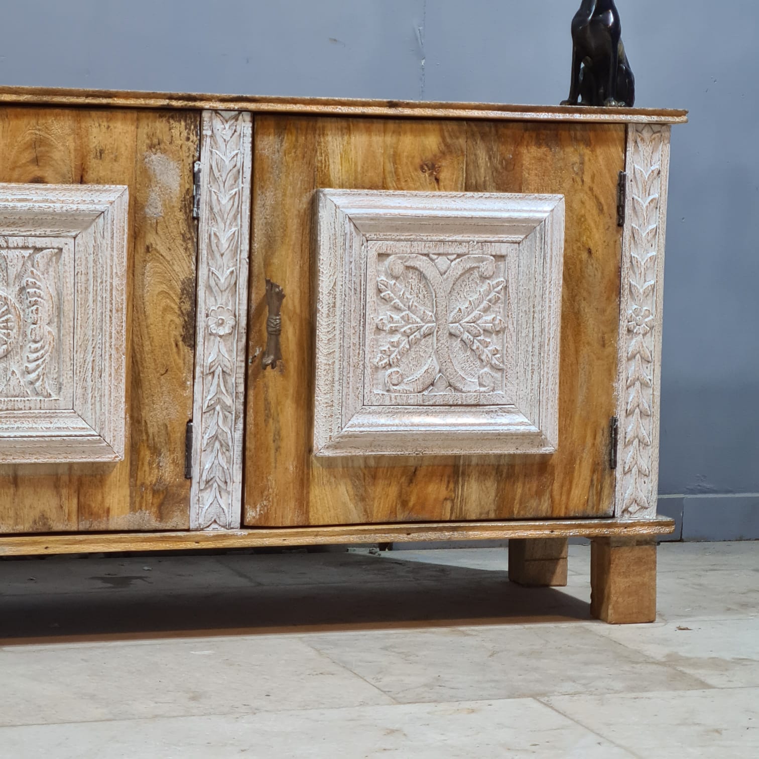 Indian Hand Carved Solid Hard Wood TV Unit 180x40x75 cm