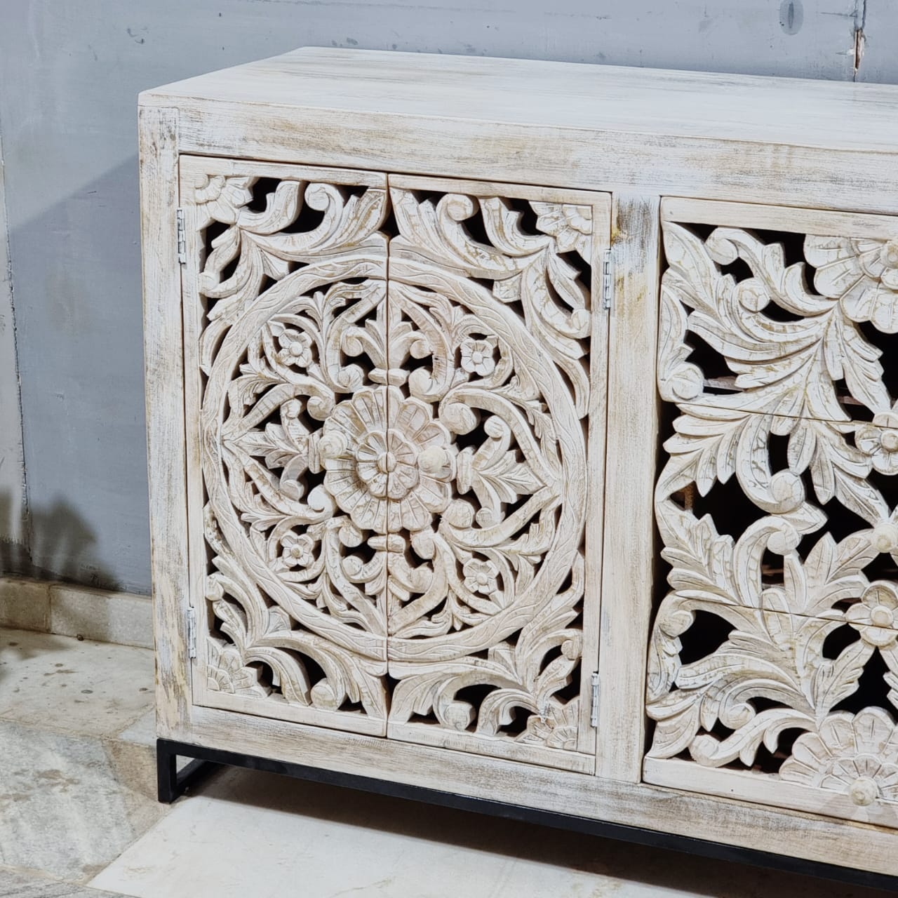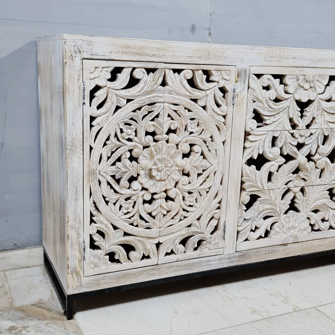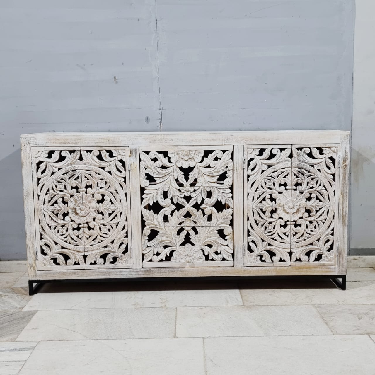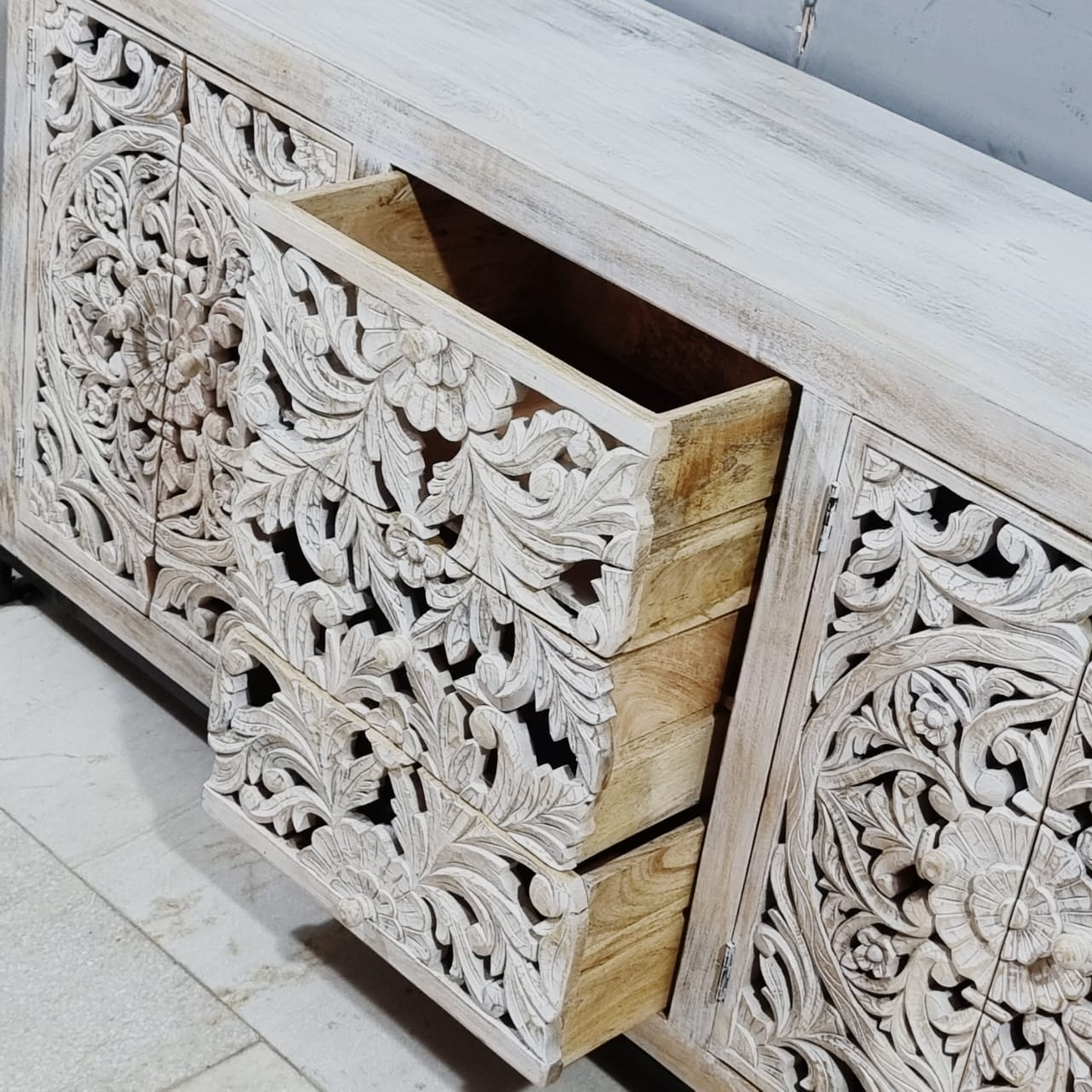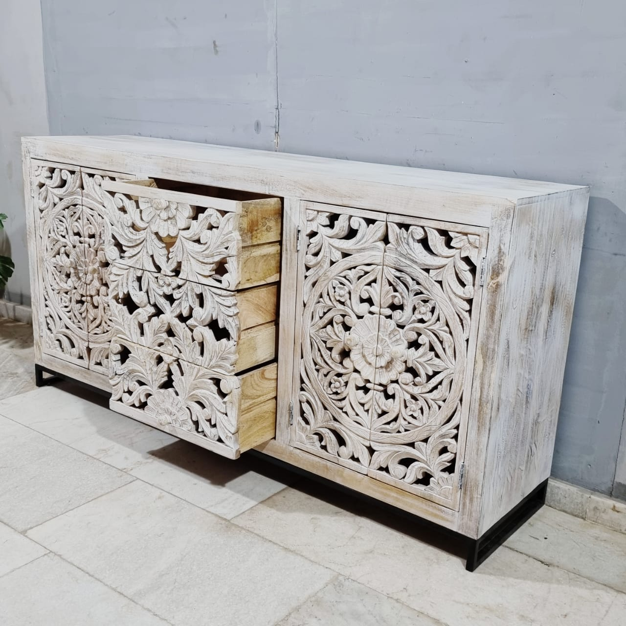 Indian Hand Carved Solid Wood Sideboard Buffet C56
