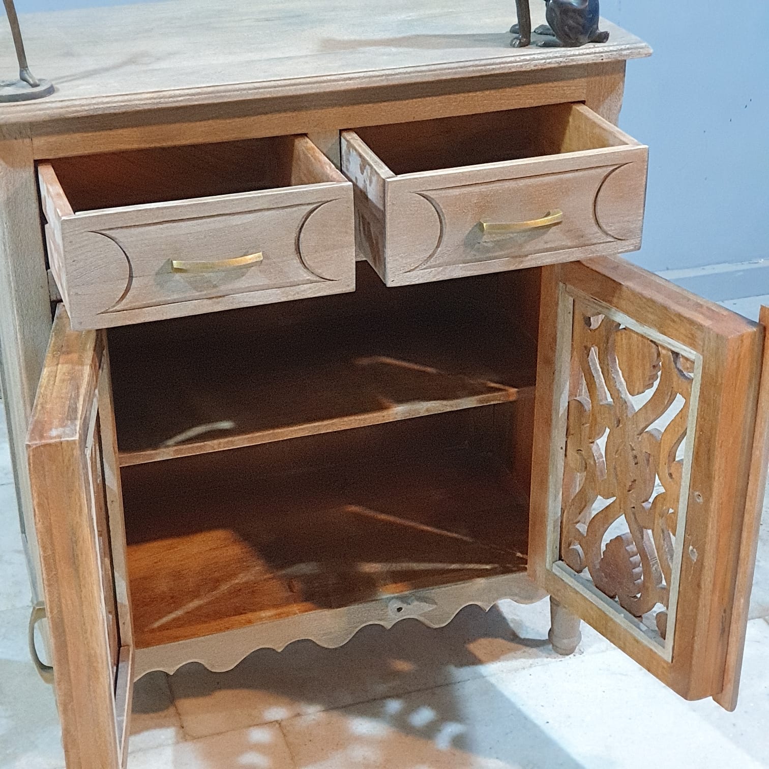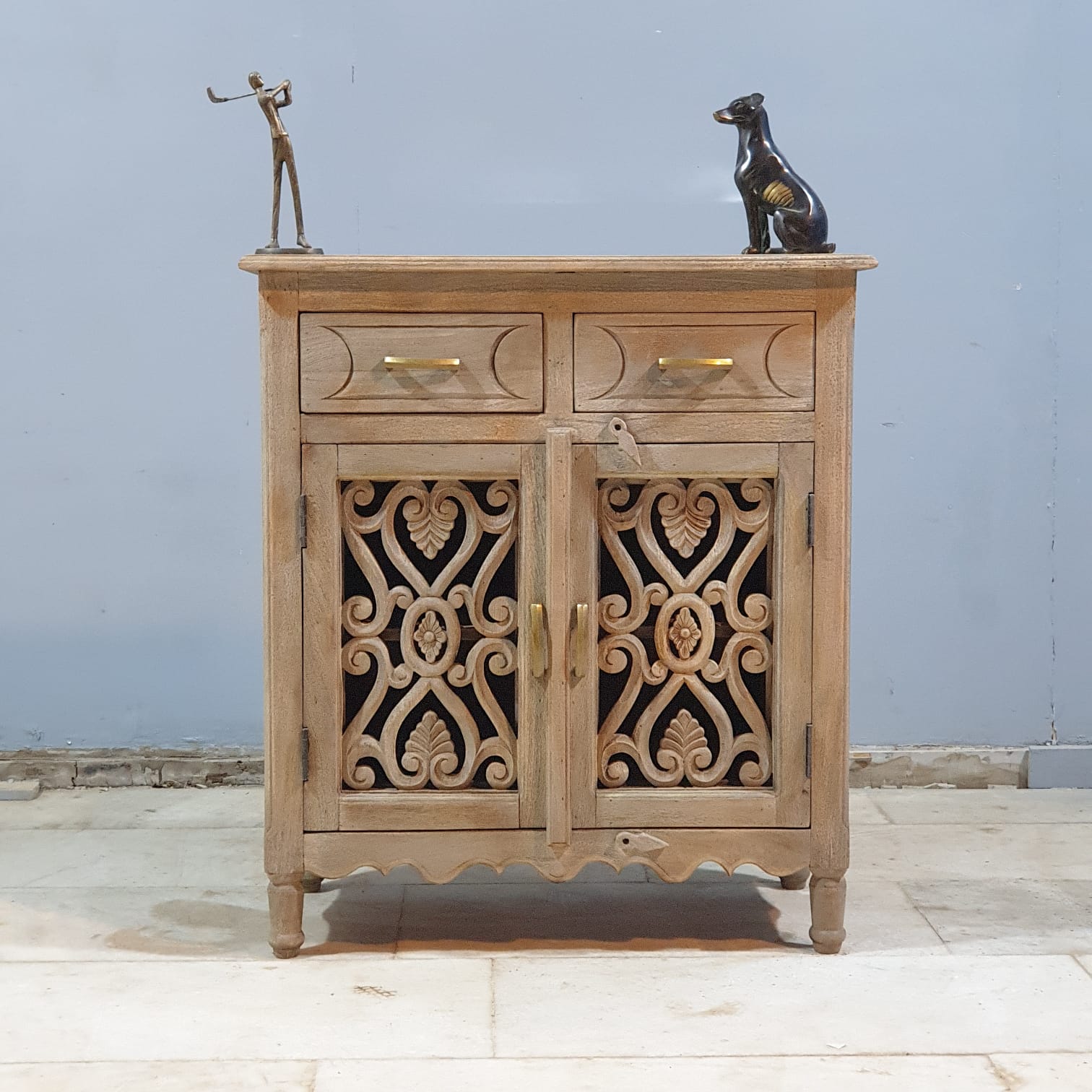 Indian Hand Carved Solid Wood 2 Door and 2 Drawer Cabinet D117