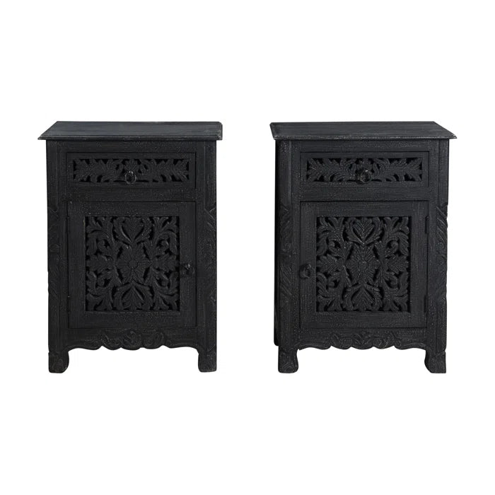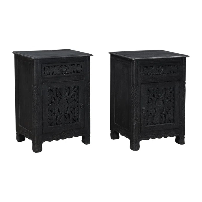 Indian Hand Carved Solid Wooden Bedside Table