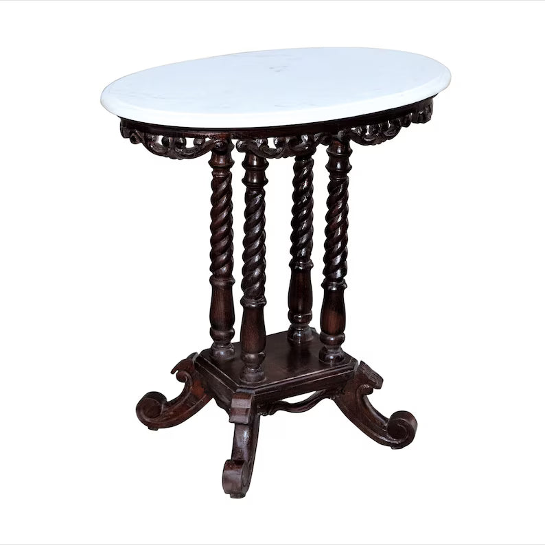 Vintage Hand Carved Solid Wood And Marble Bedside Table 40