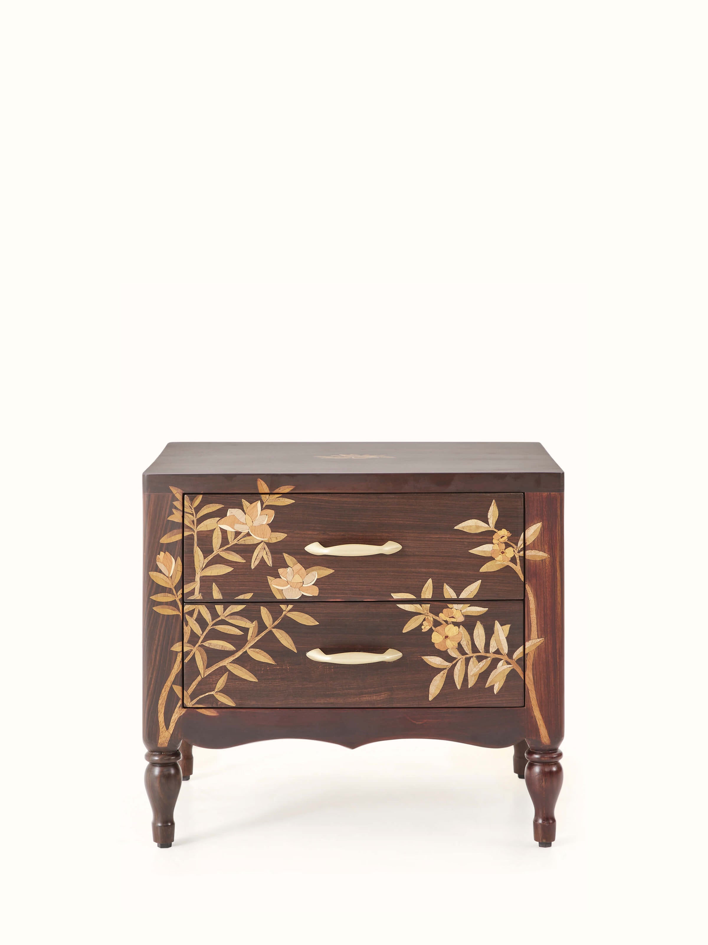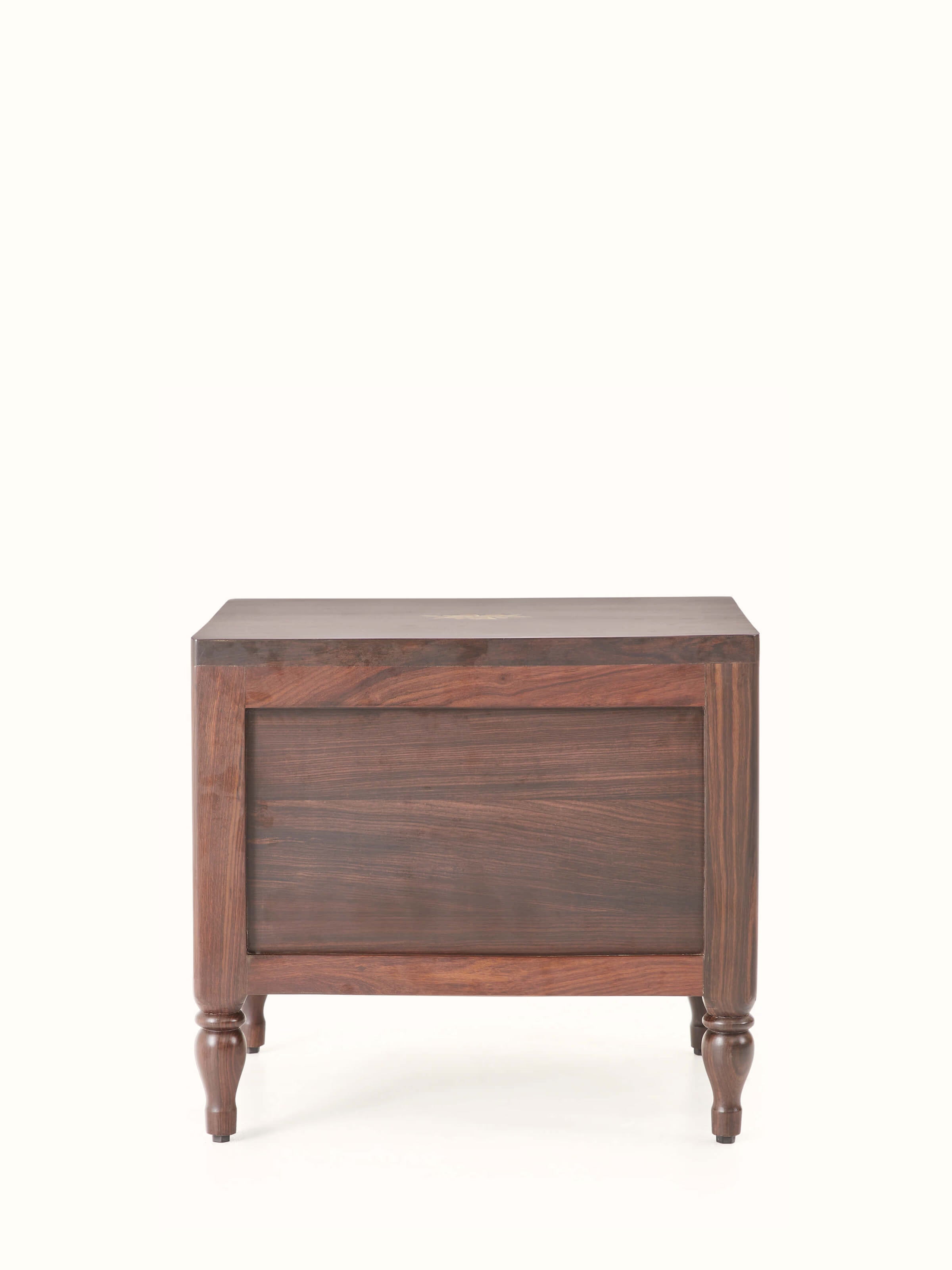 Indian Hand Carved Solid Wood Inlay Bedside Table