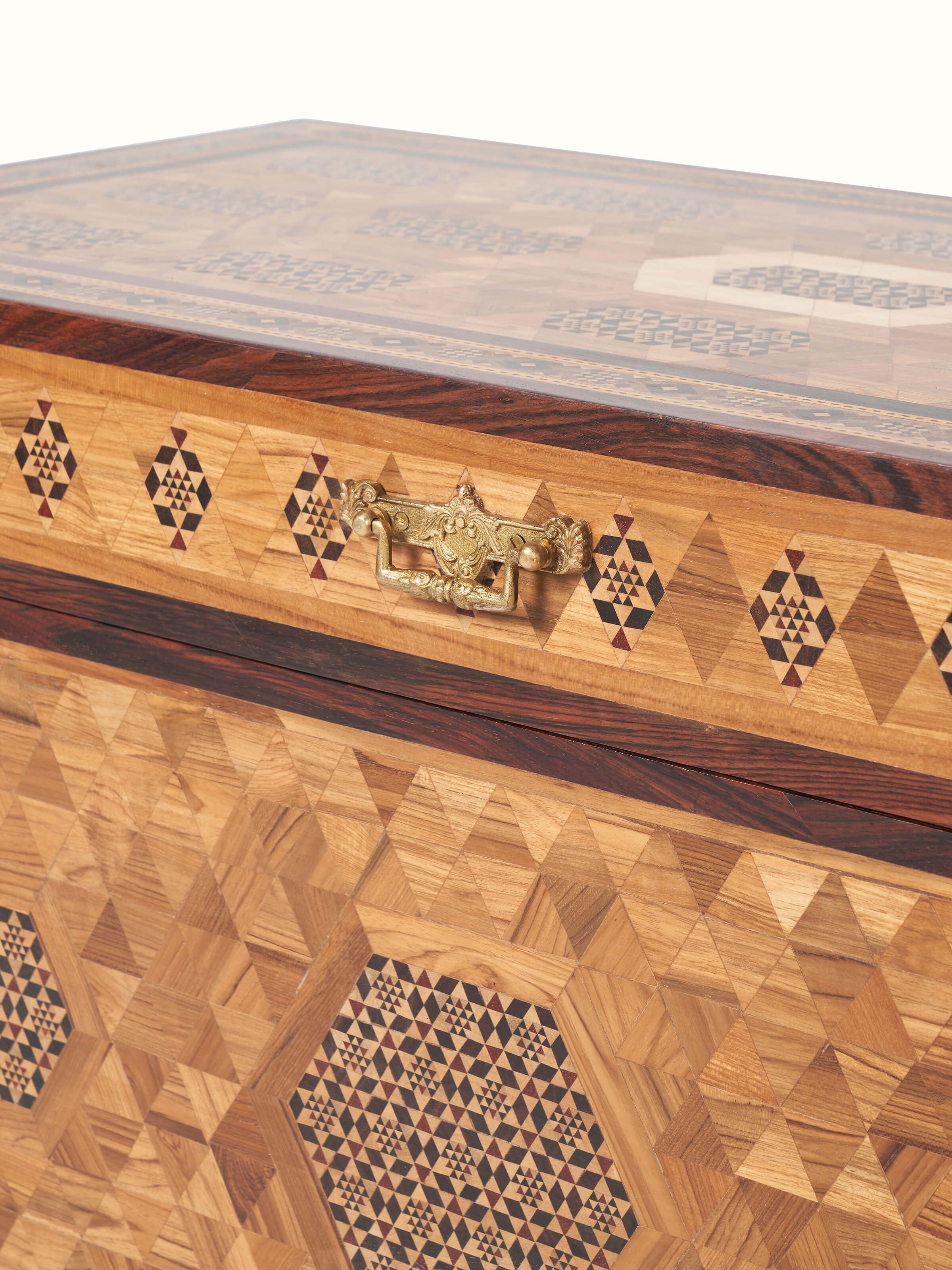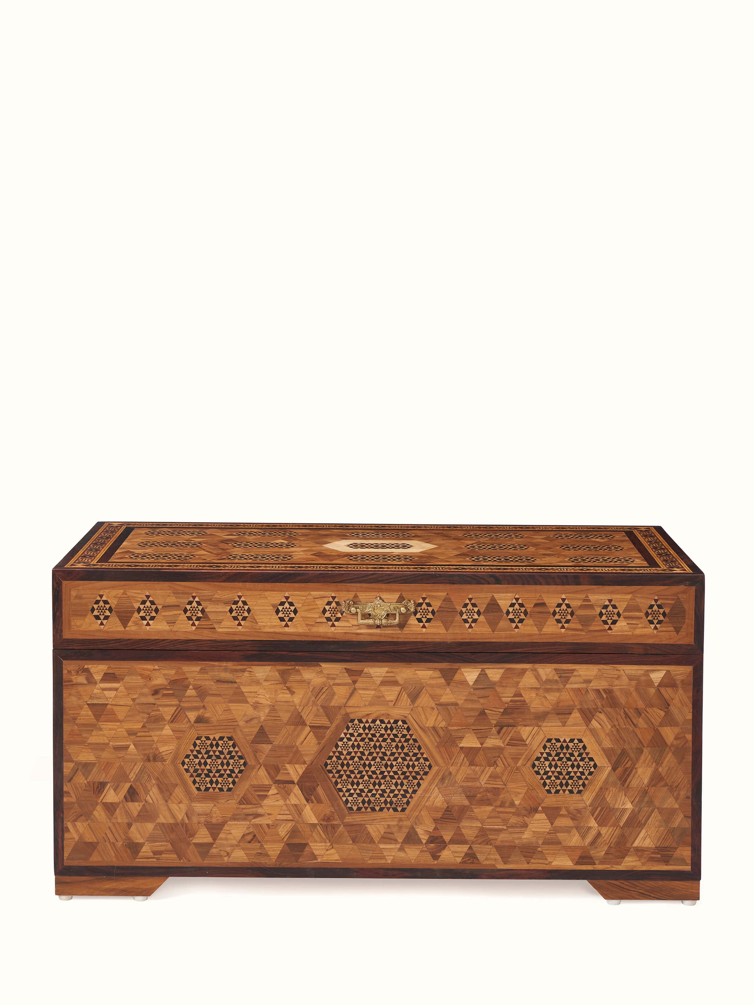 Indian Hand Carved Teak Wood Marquetry Trunk Blanket Box Chest C12