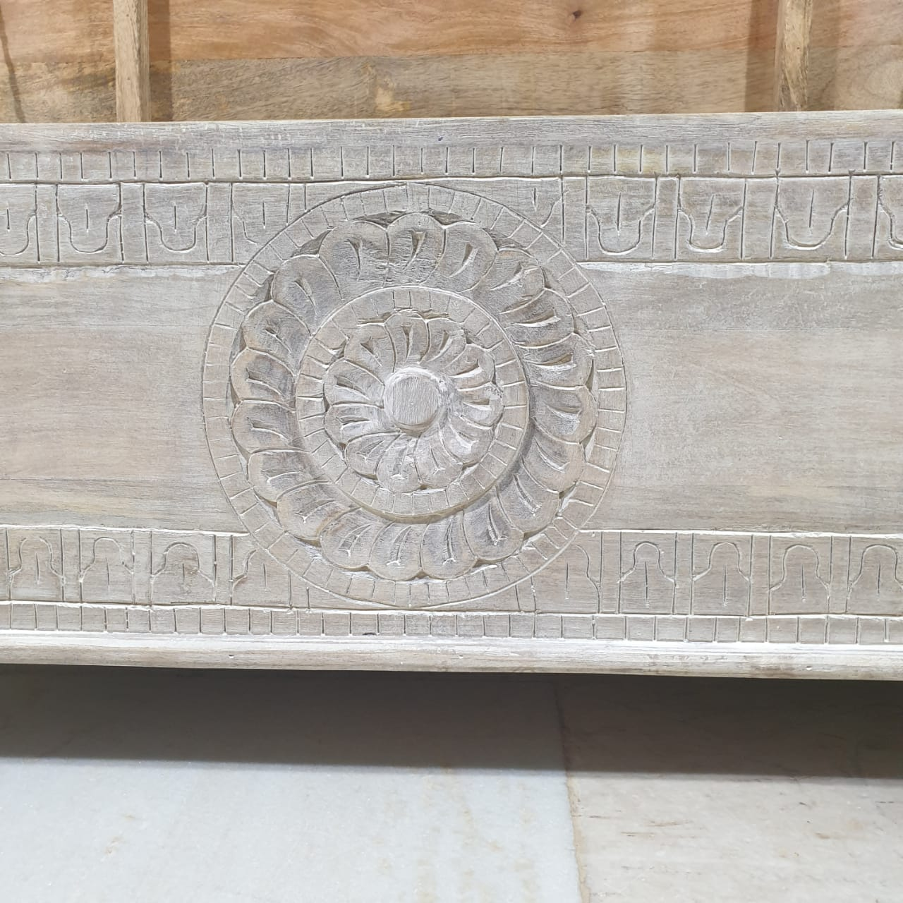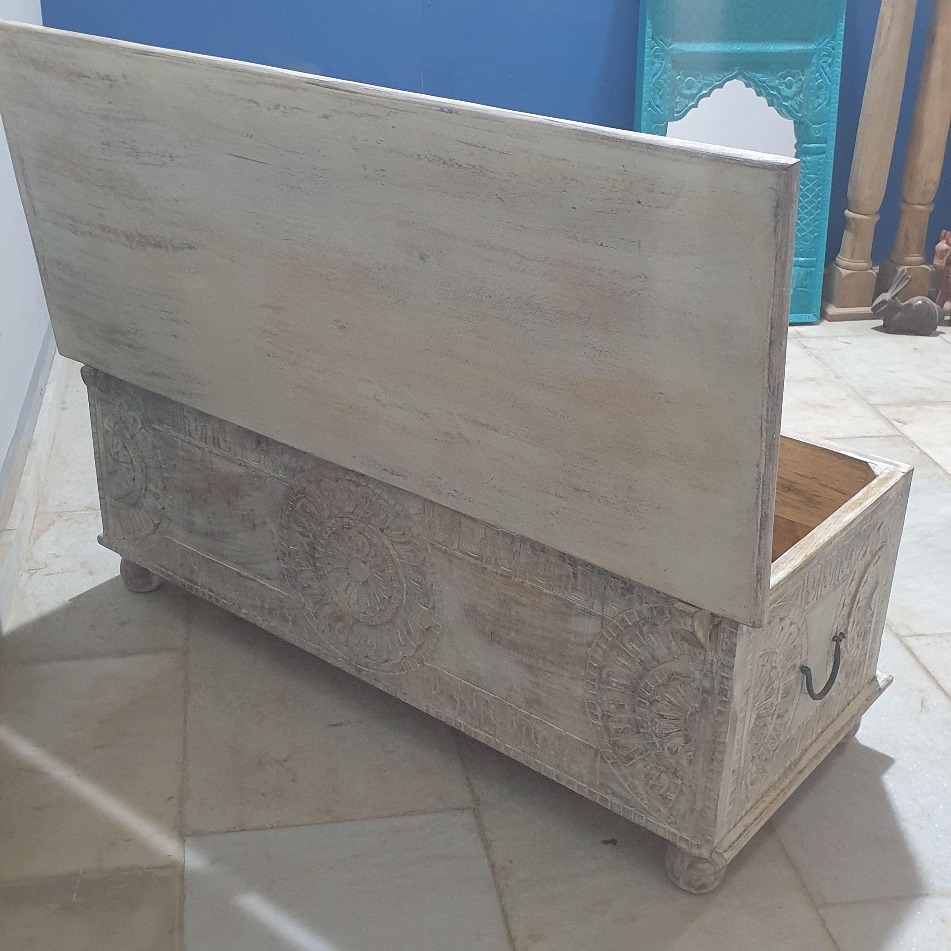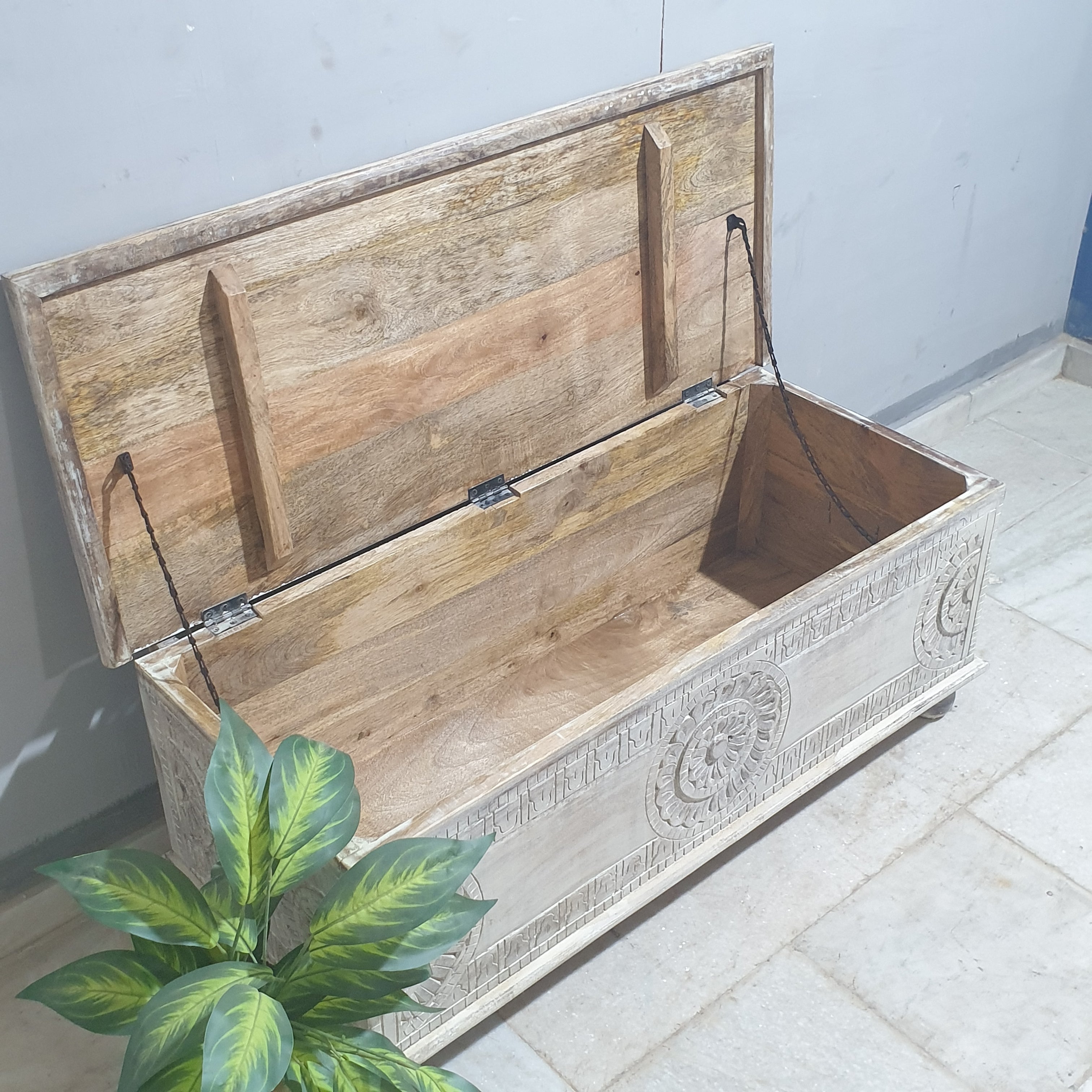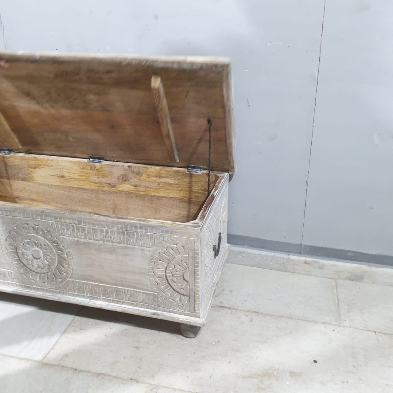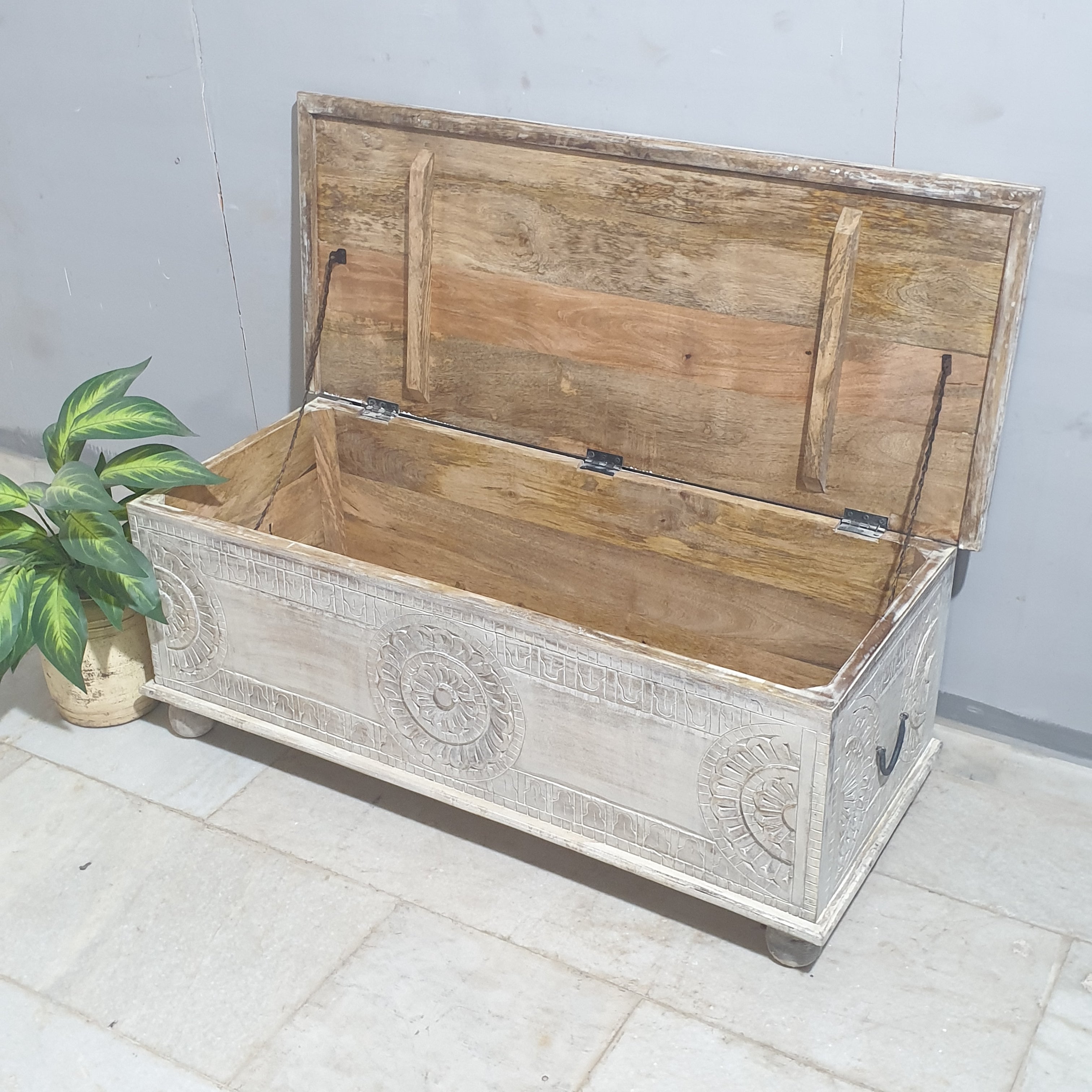 Indian Hand Carved Solid Wood Blanket Box Rustic C23