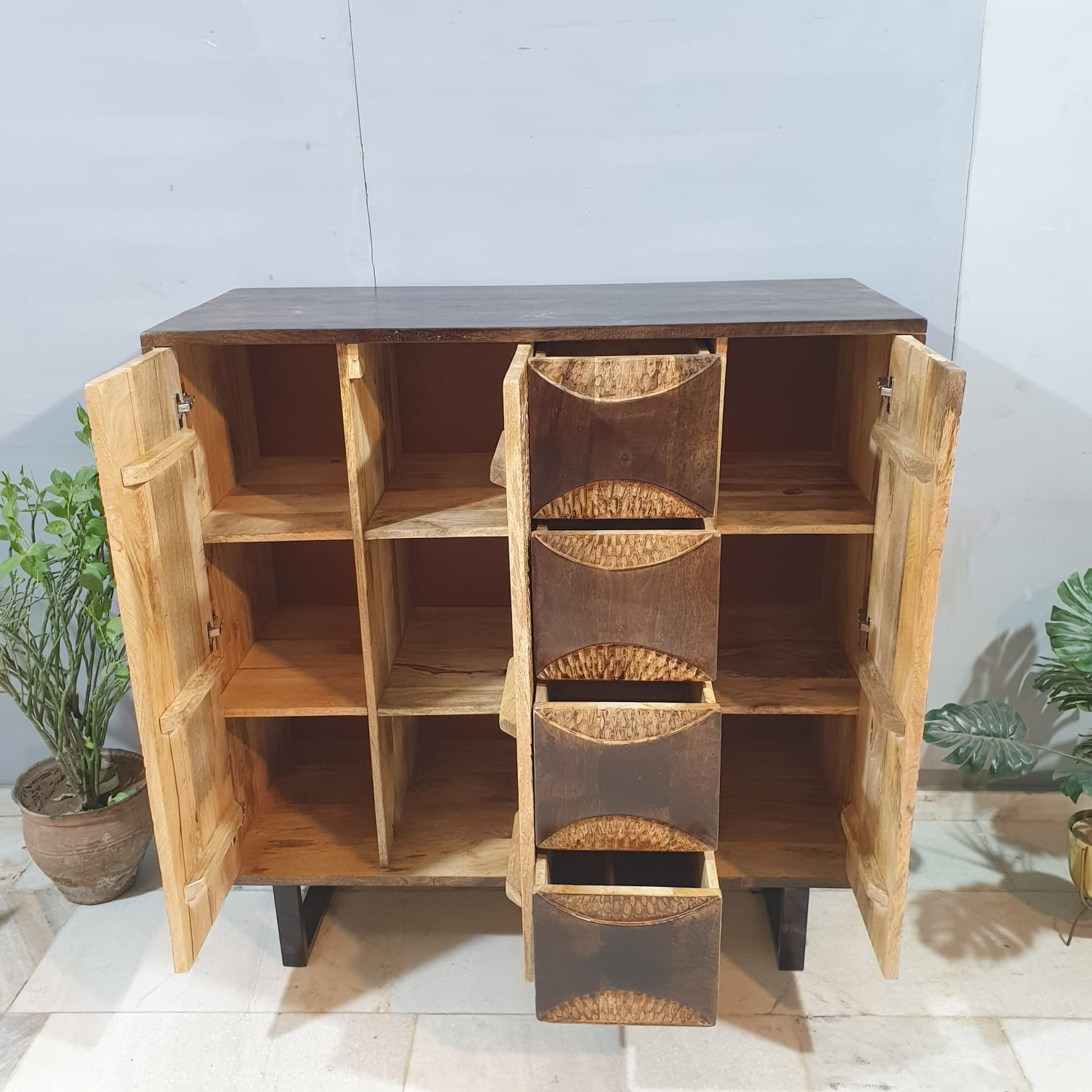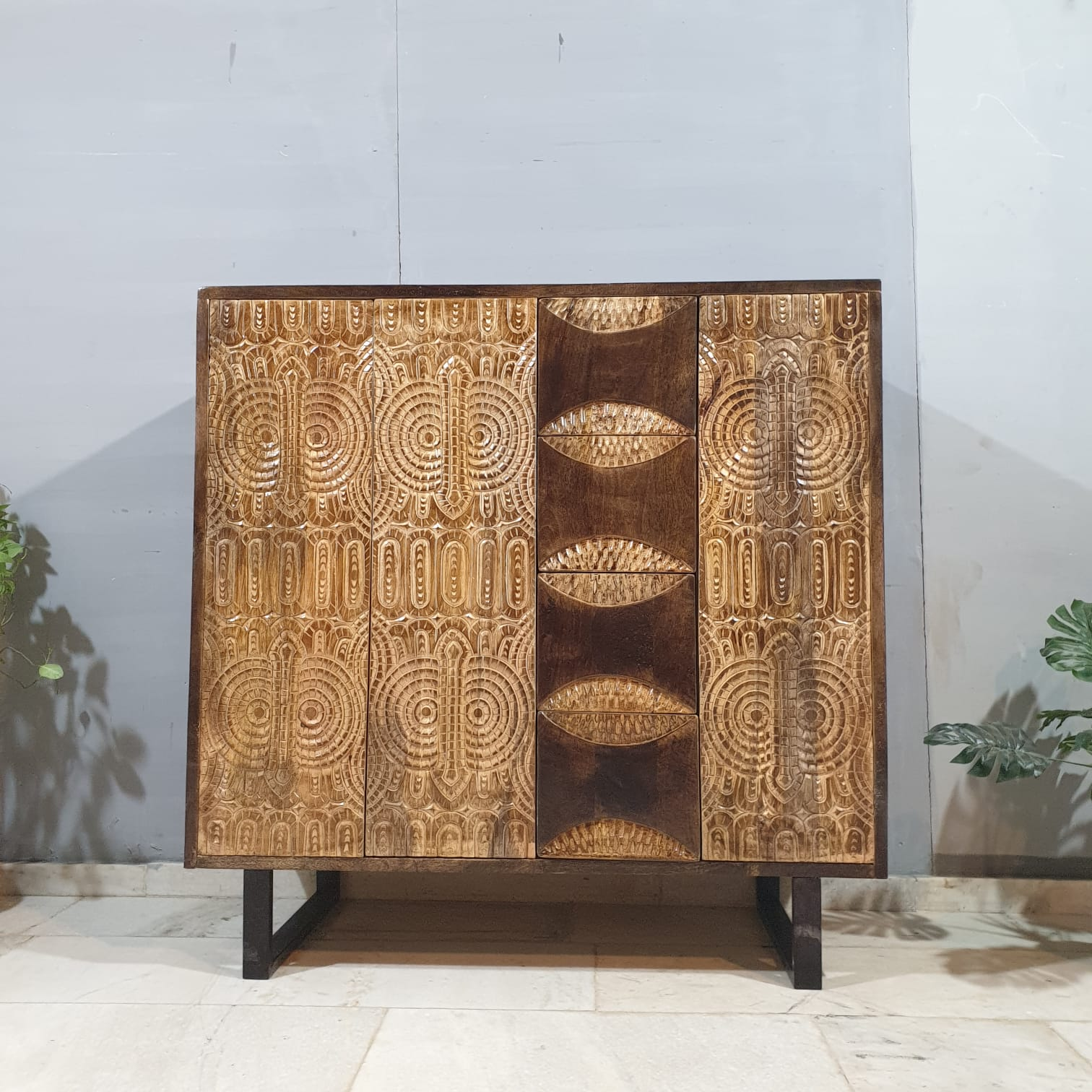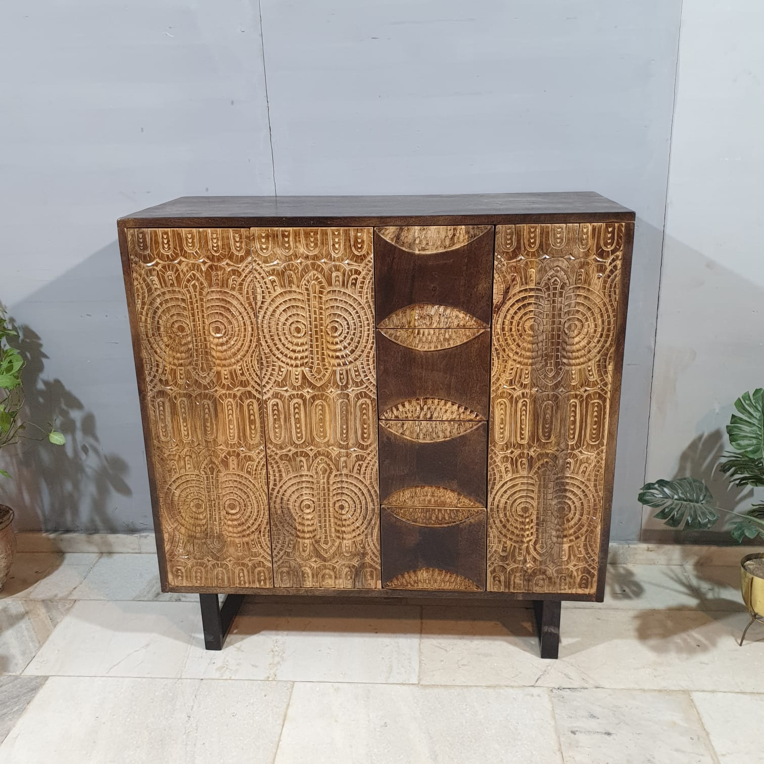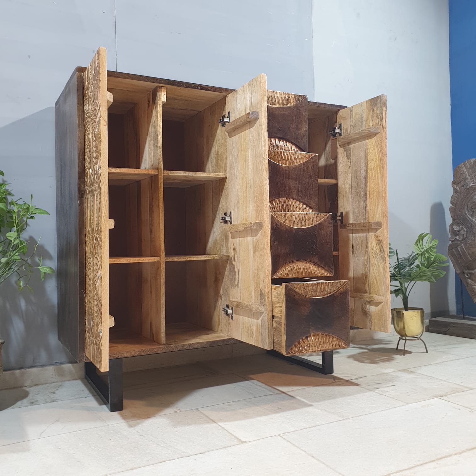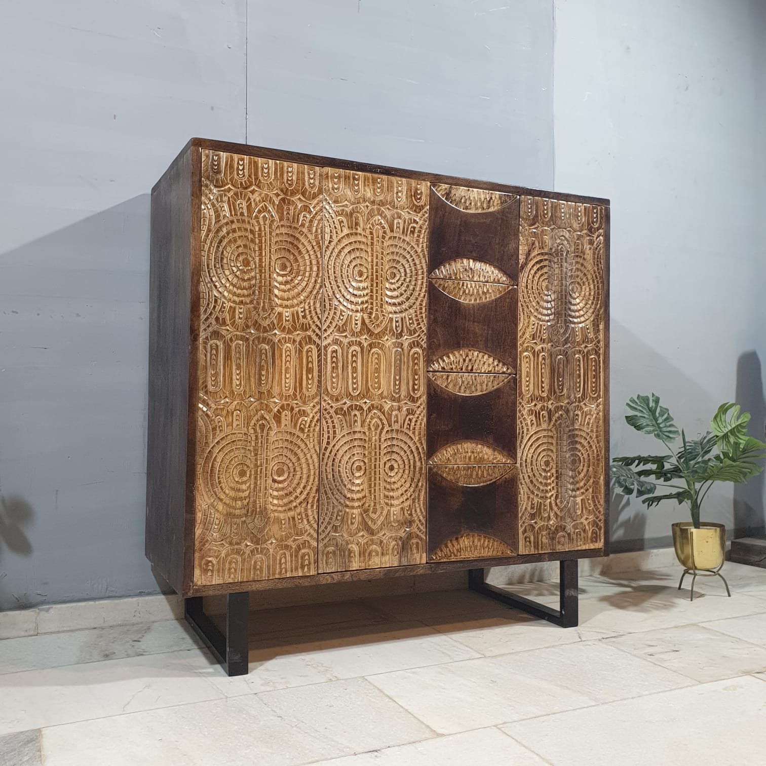 Indian Hand Carved Solid Wood Cabinet D112