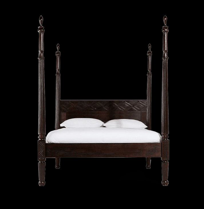 Indian Hand Carved Solid Wood Poster King Size Bed Walnut 128