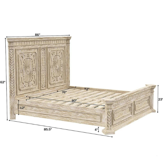 French provincial design inspired Solid Wood Bed rustic White Wash 108