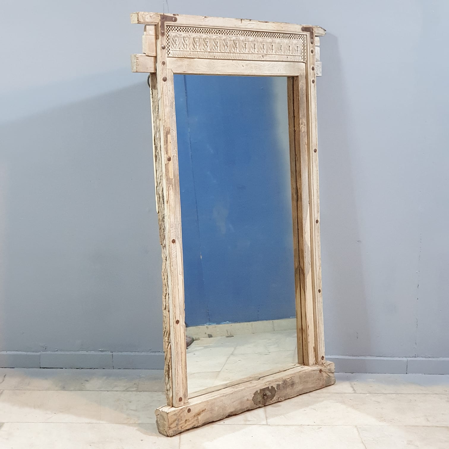 Indian Antique Hand Carved Solid Wood Mirror Frame 104X8X165 Cm Bleach