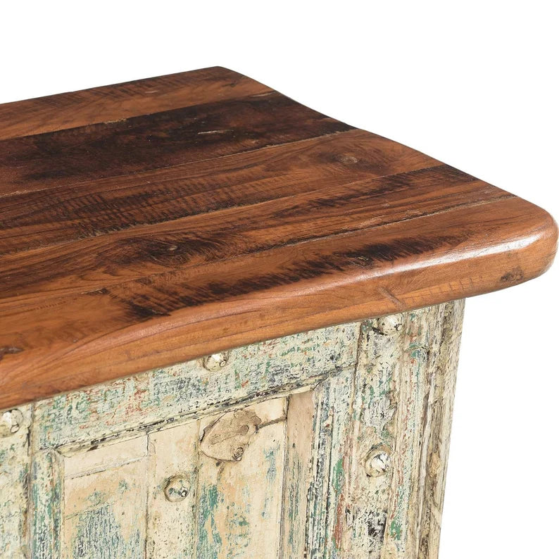 Indian Hand Carved Solid Wood Rustic Storage Blanket Box C40