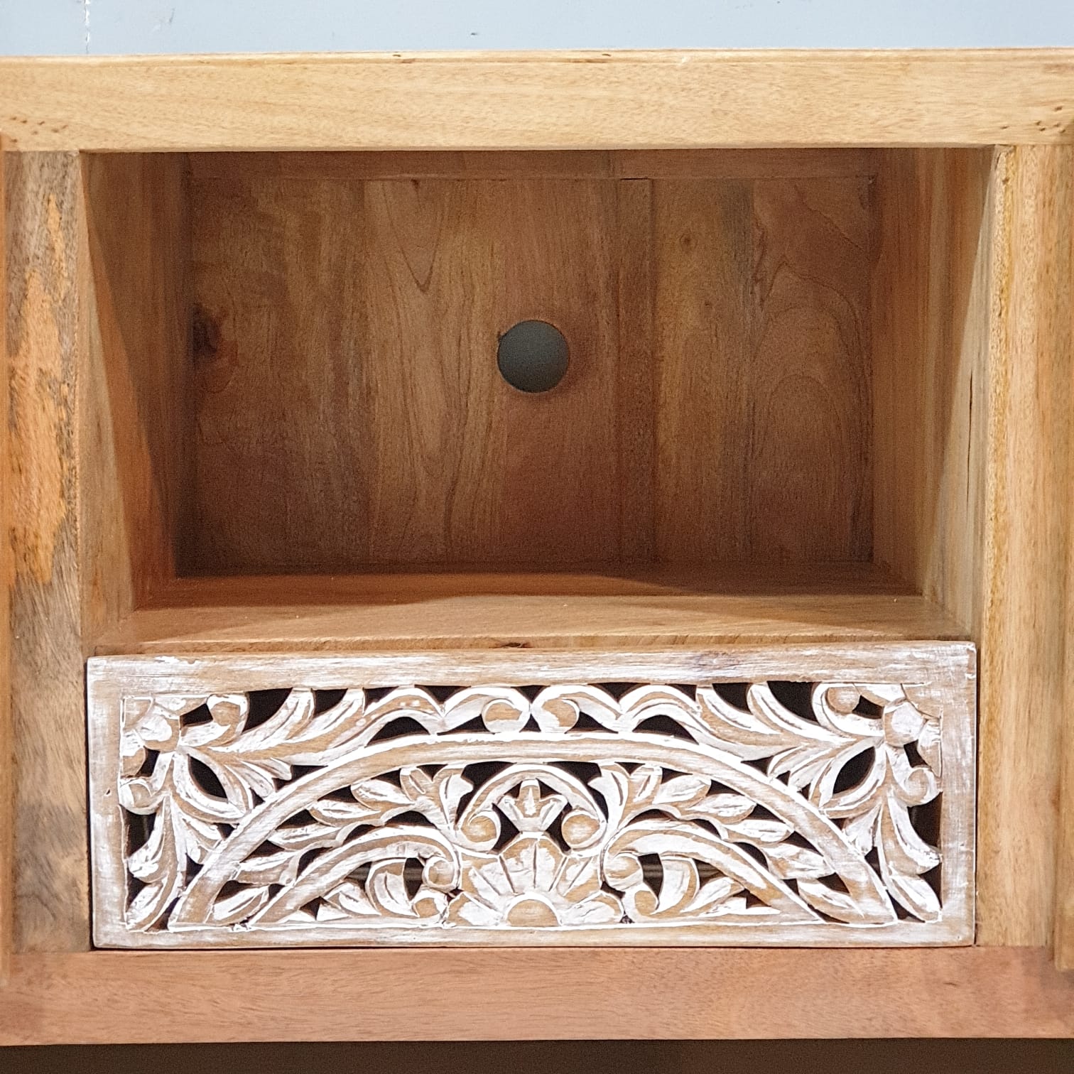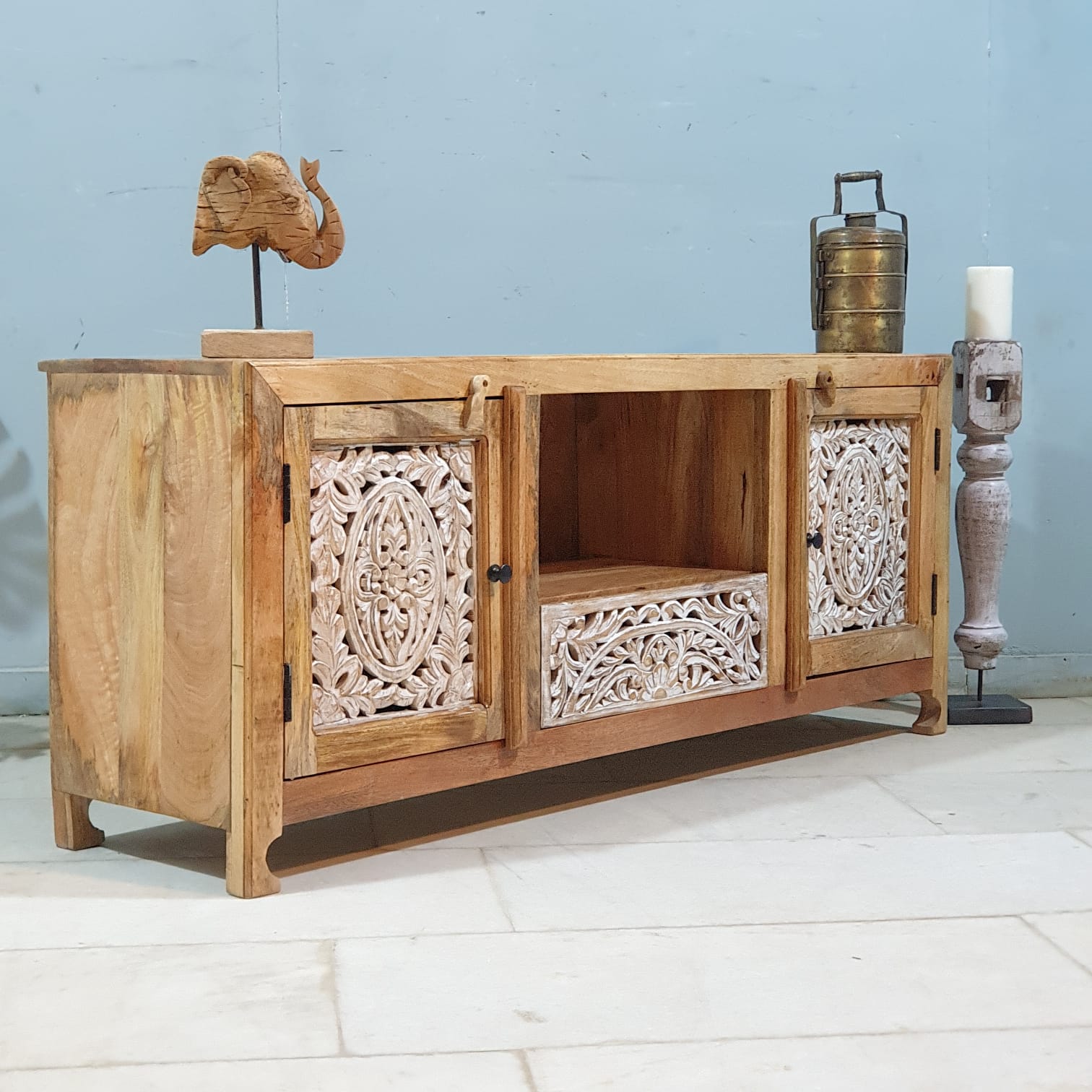 Indian Hand Carved Solid Wood Tv Unit 144X40X60 Cm Natural