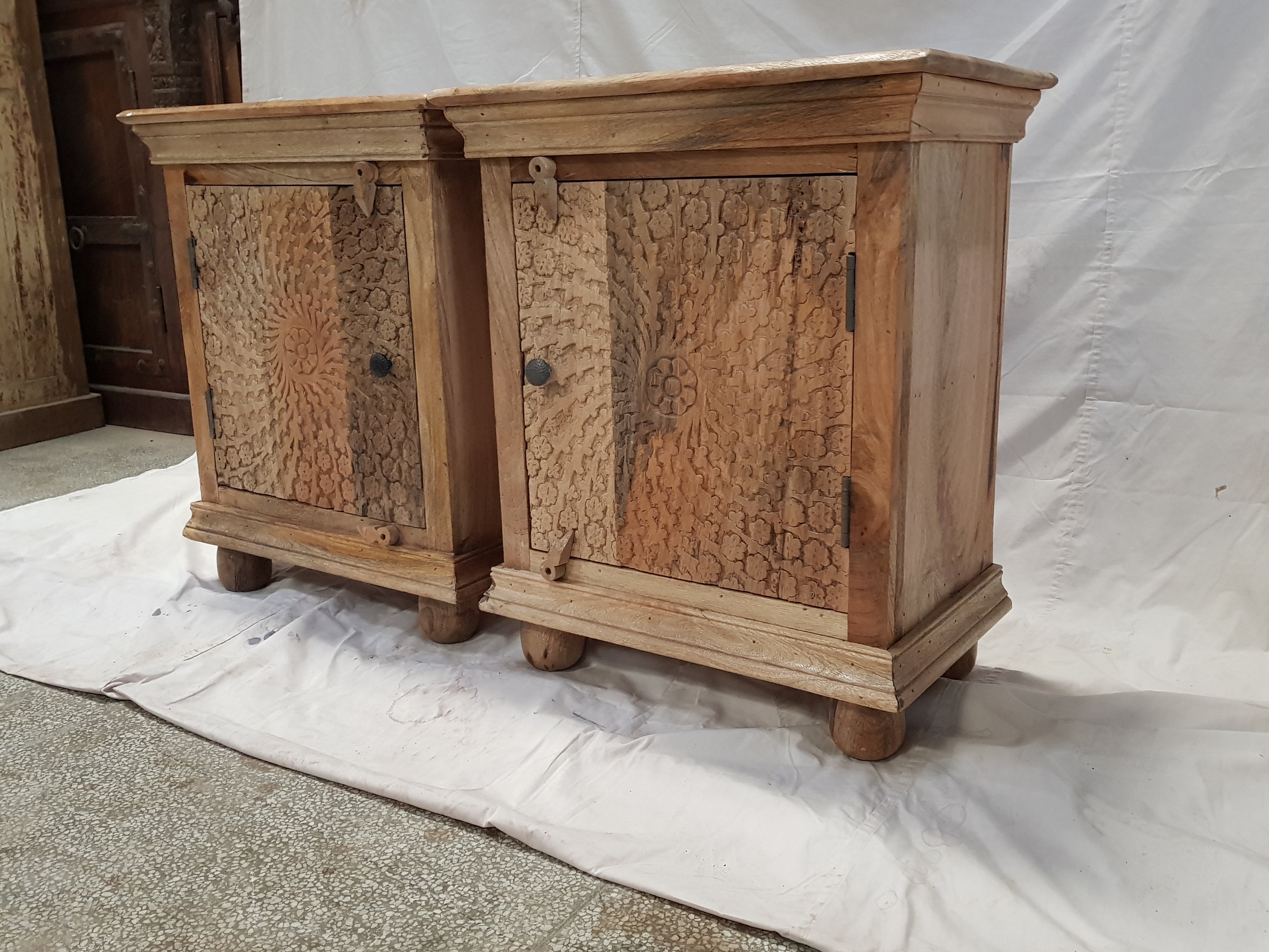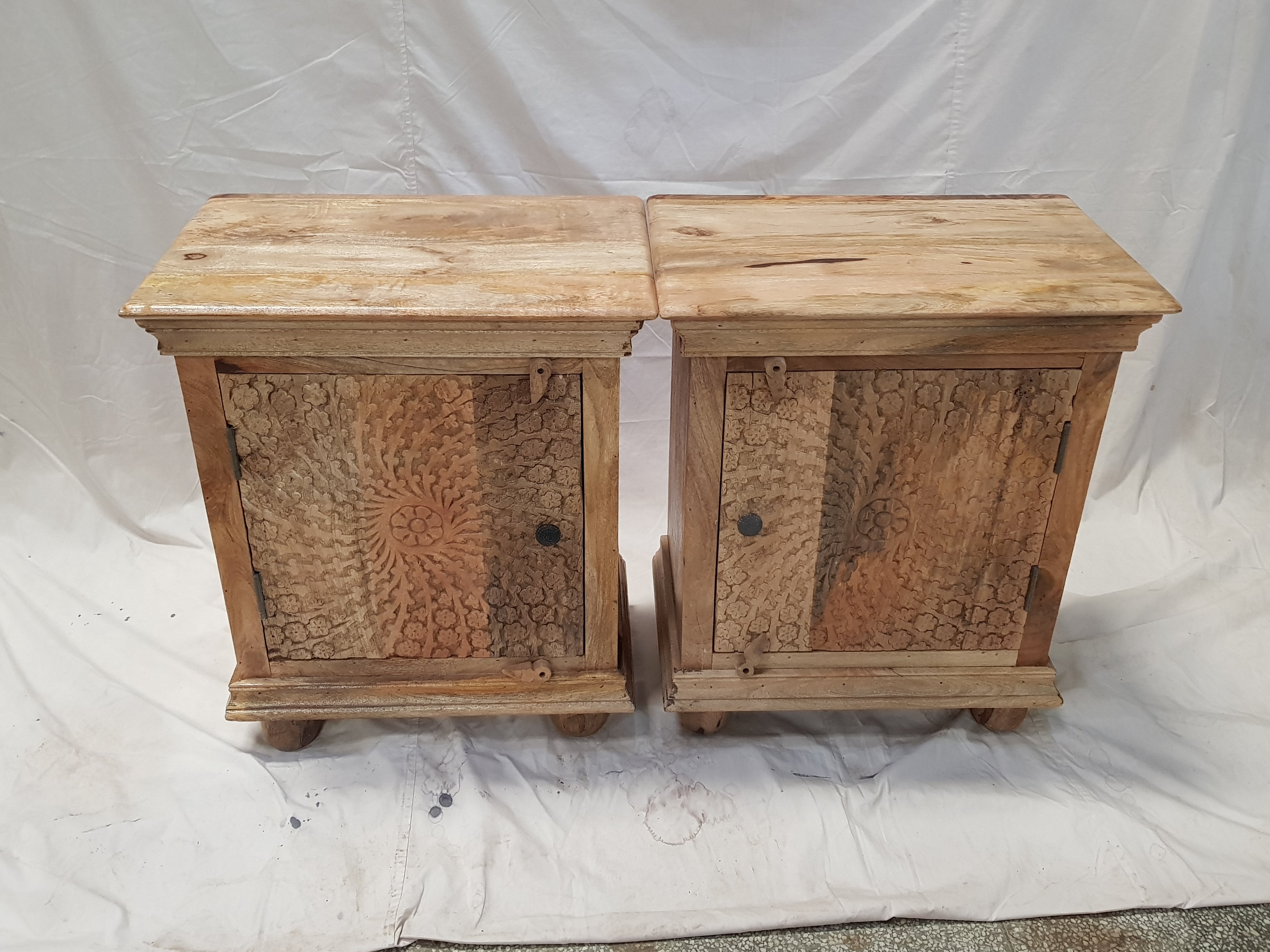 Indian Hand Carved Solid Wooden Bedside Table 55x34x60 cm