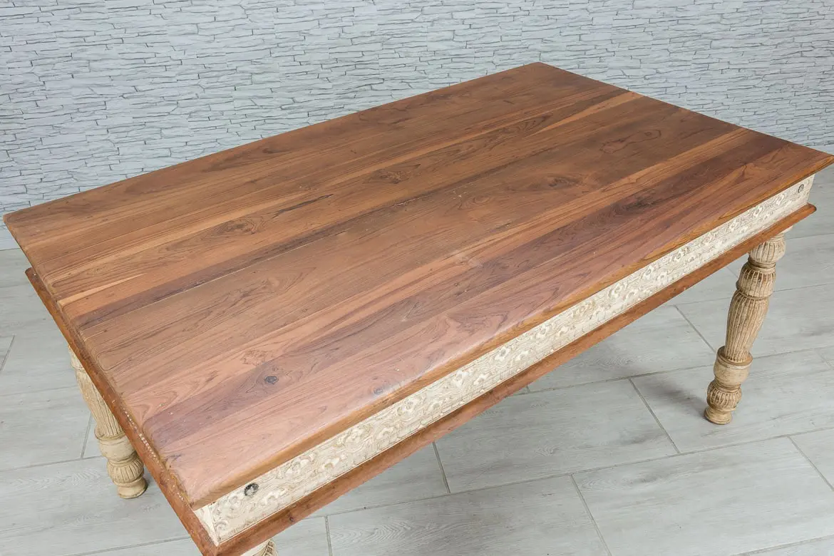 Indian Hand Mughal Garden Indian Solid Wooden Dining Table Whitewash 150x90x78cm