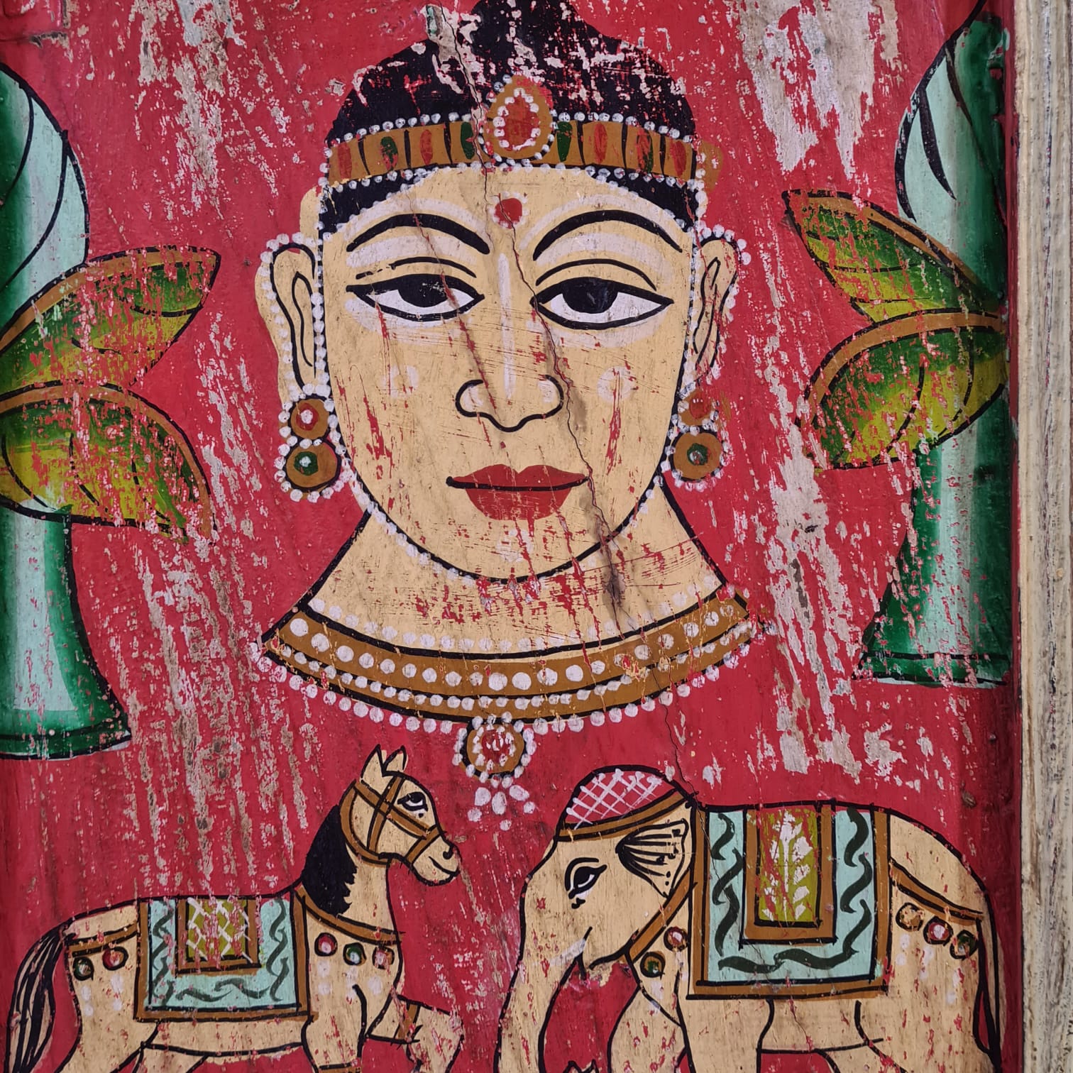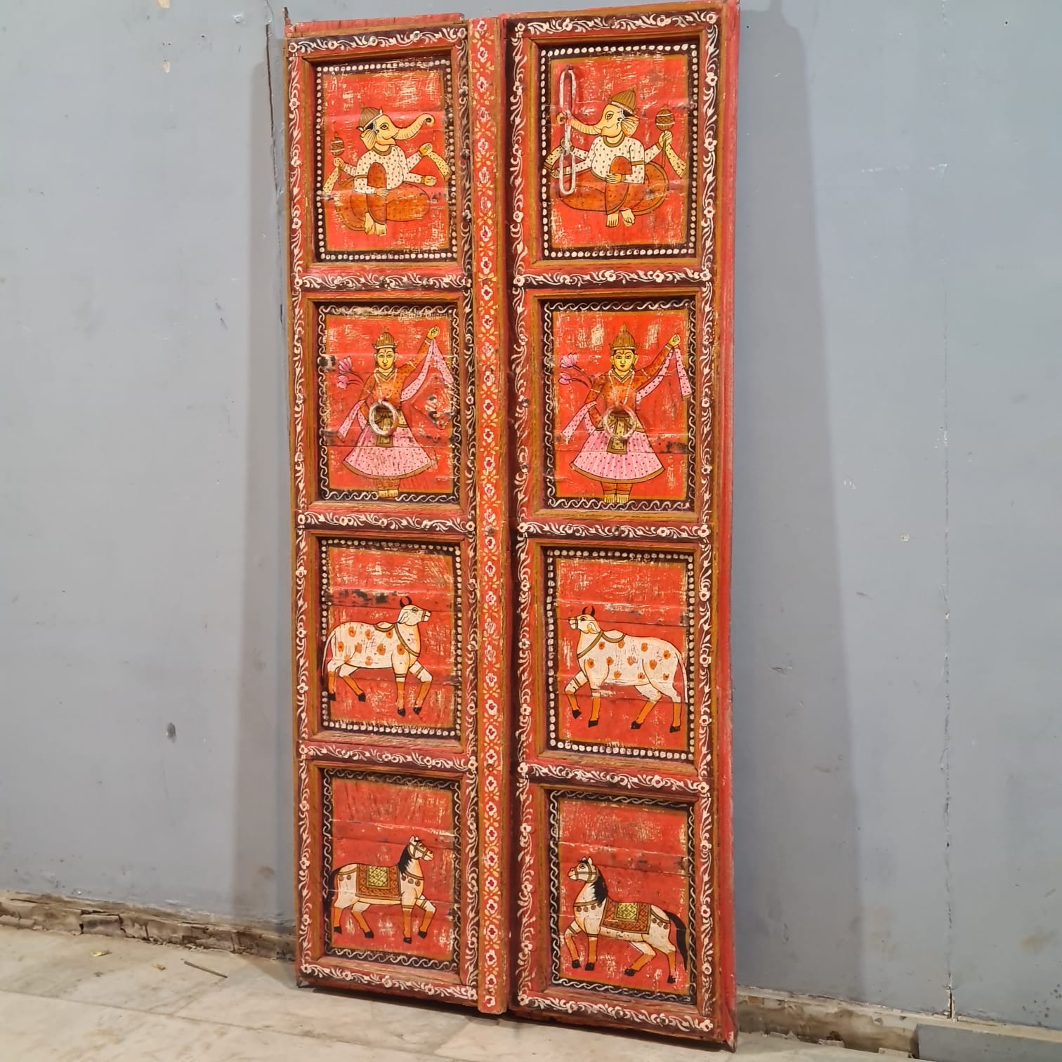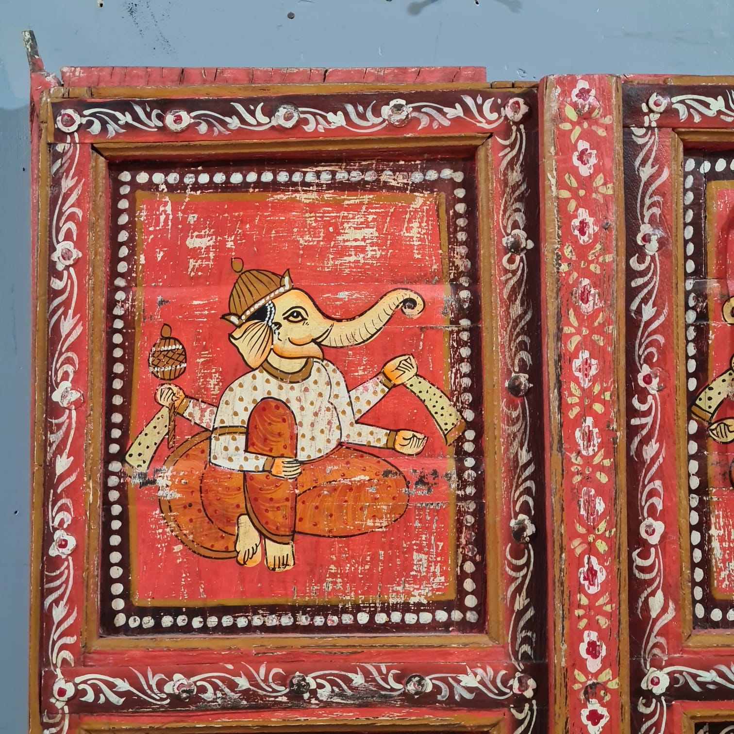 Indian Hand Painted Solid Wooden Door Panel Red