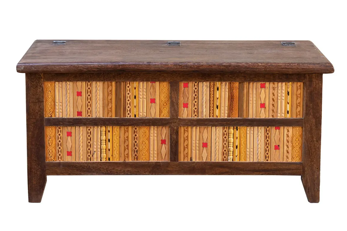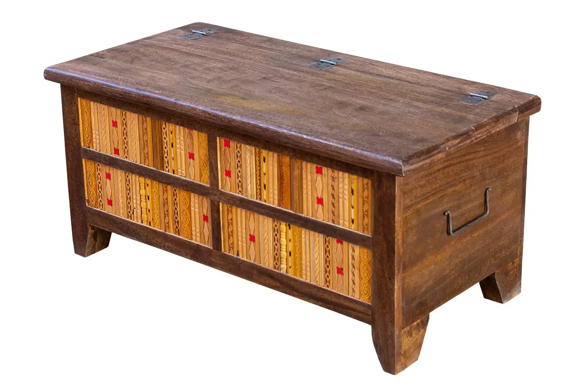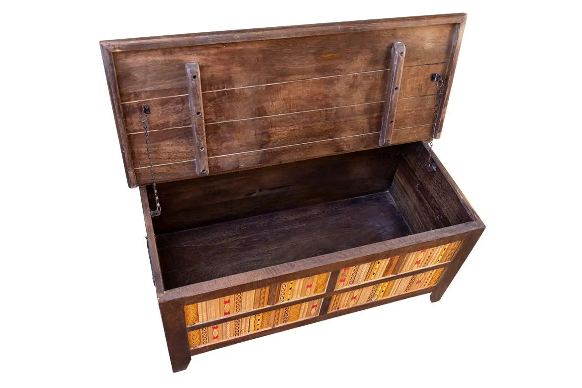 Indian Hand Reclaimed Liberty Solid Wooden Chest Blanket Box Storage Natural 97×48×45cm