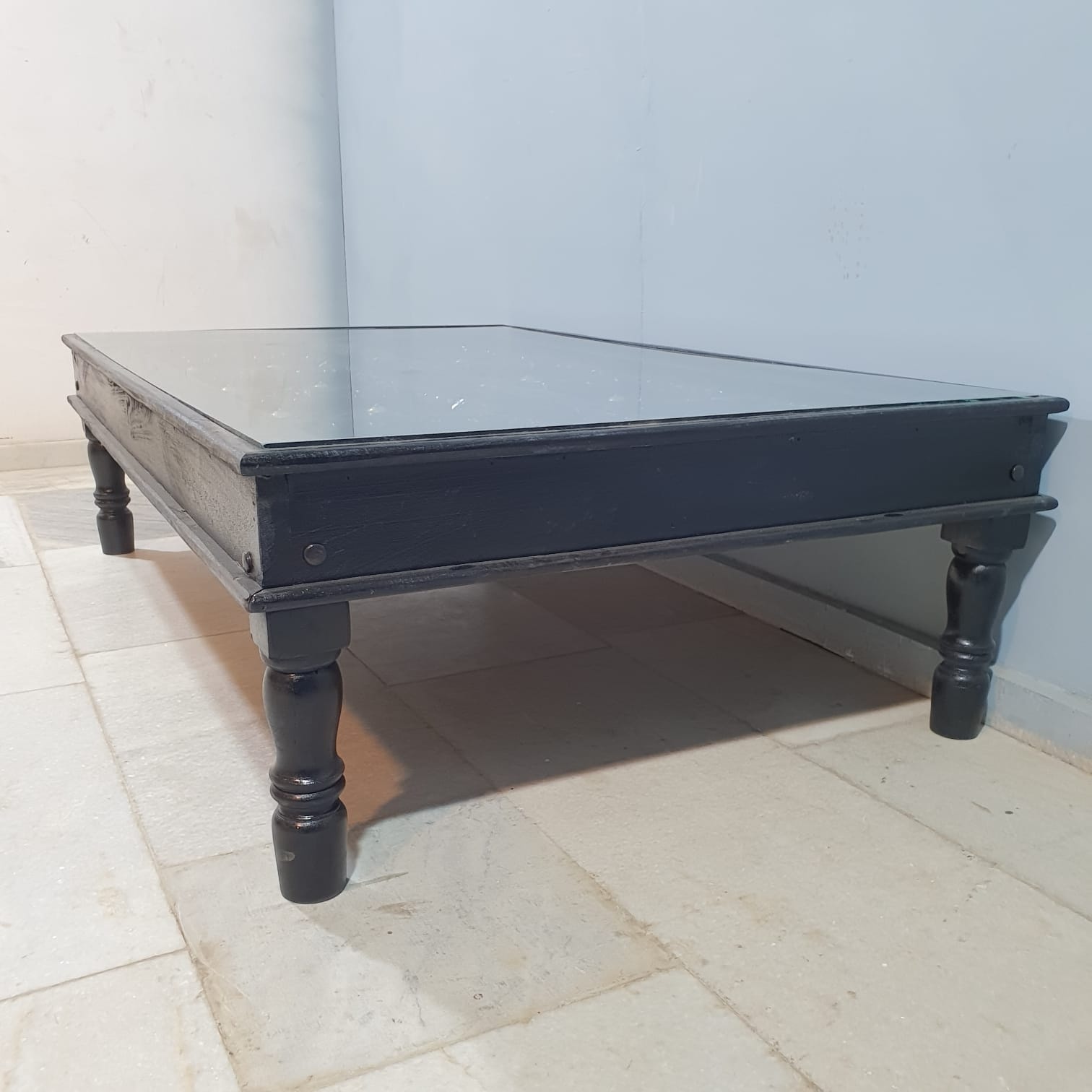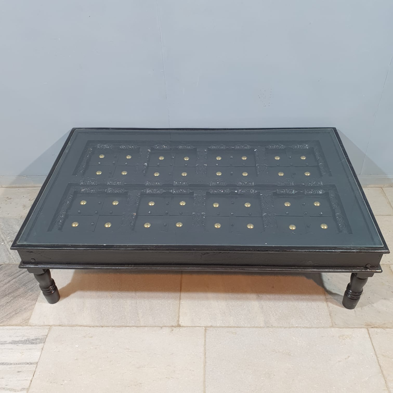 Indian Handmade Carved Solid Hard Wood Coffee Table in Black With Glass Cover 160x100x45Cm