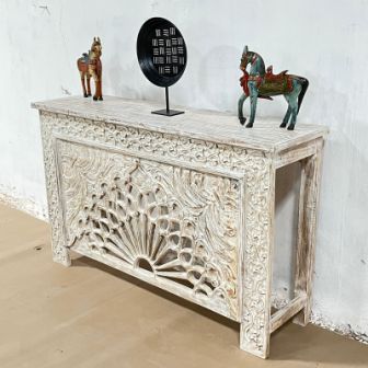 Indian Handmade Carved Solid Hard Wood Oriental Style Console Hall Table 150x40x90Cm