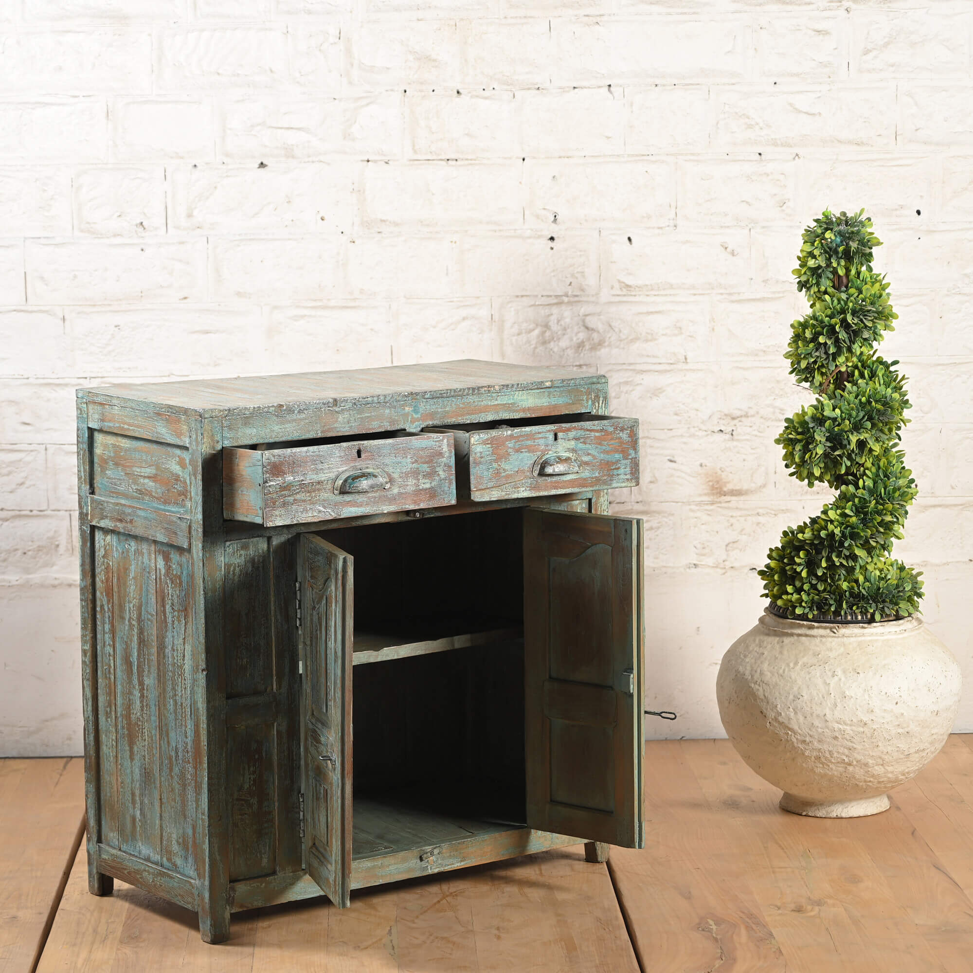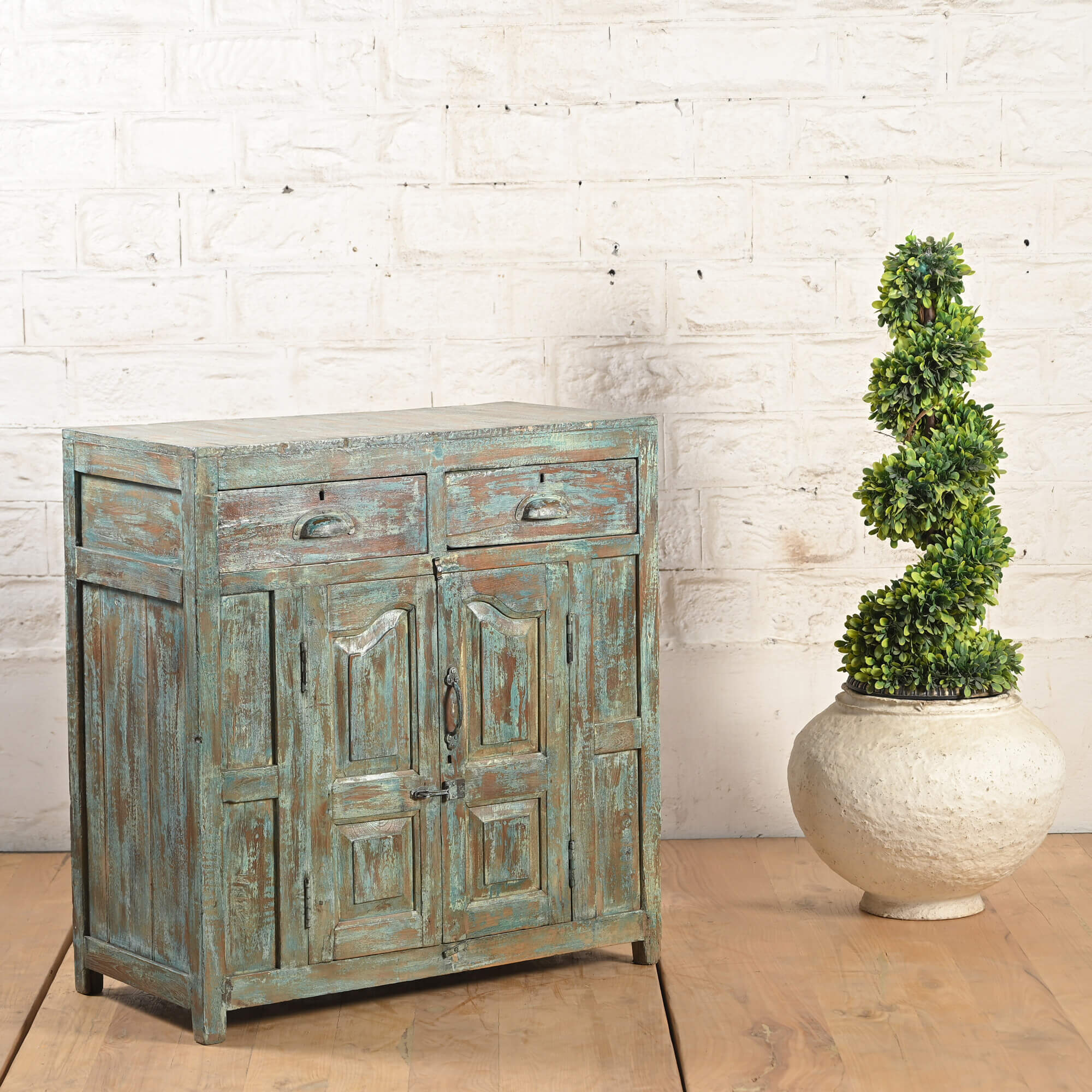 Indian Vintage Hand-Carved Cabinet Rustic Multicolour