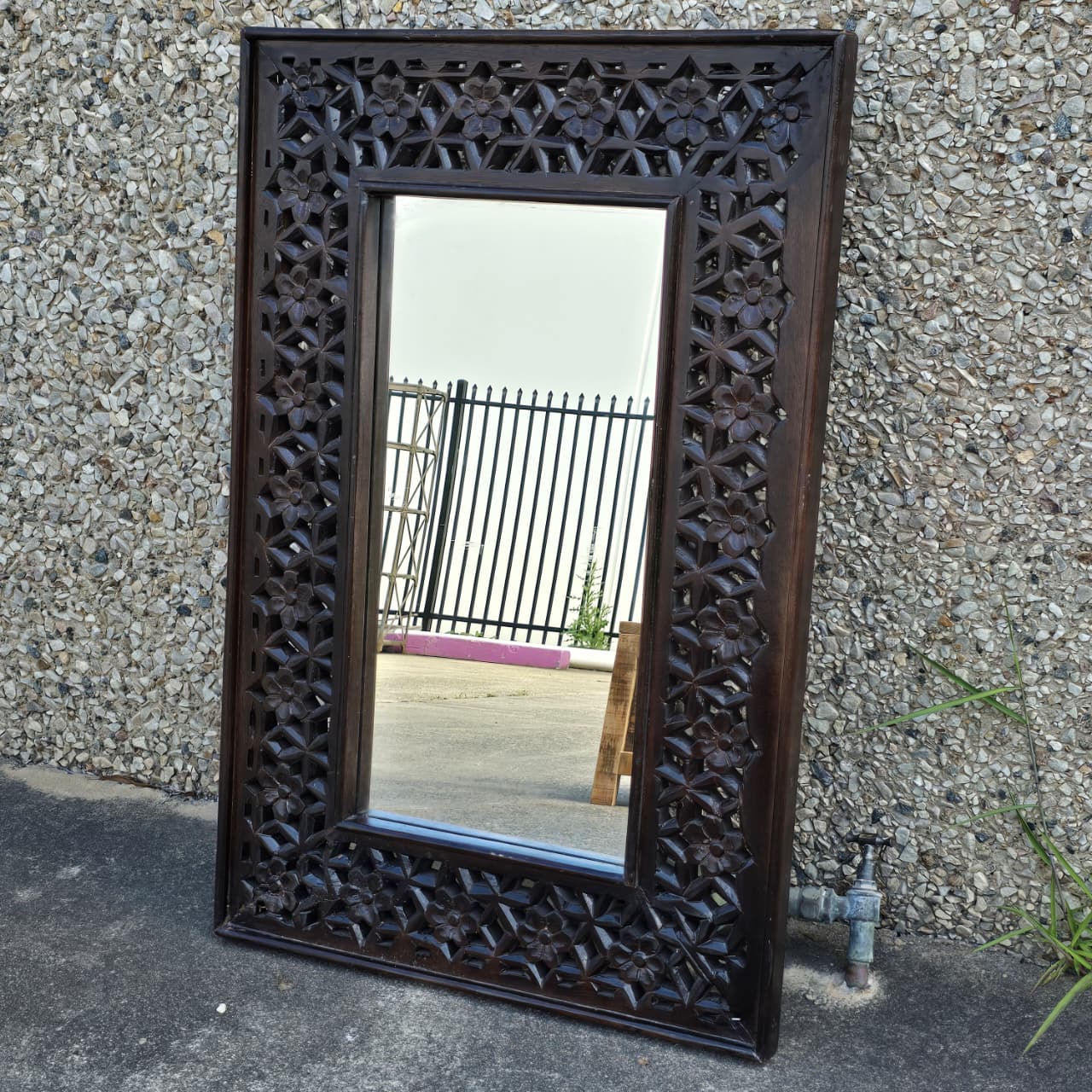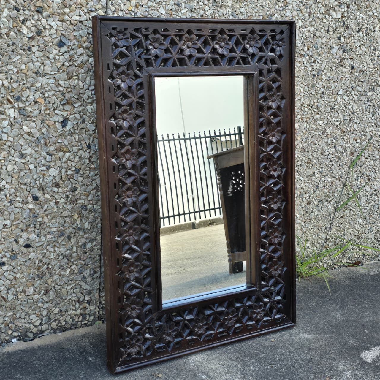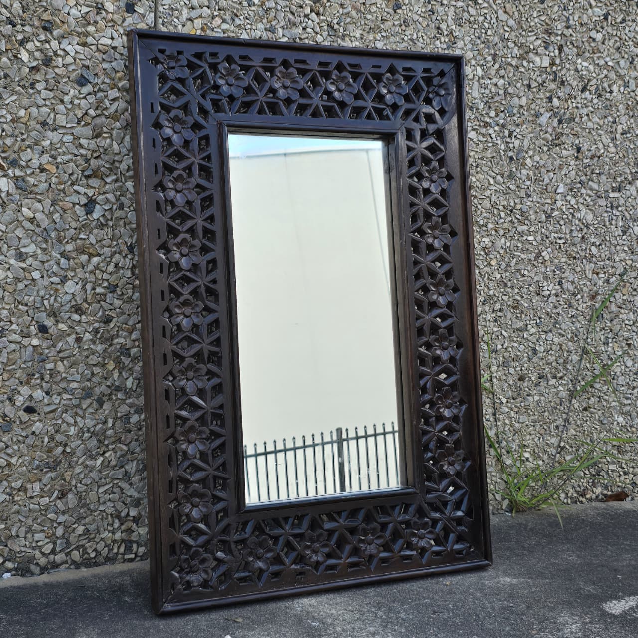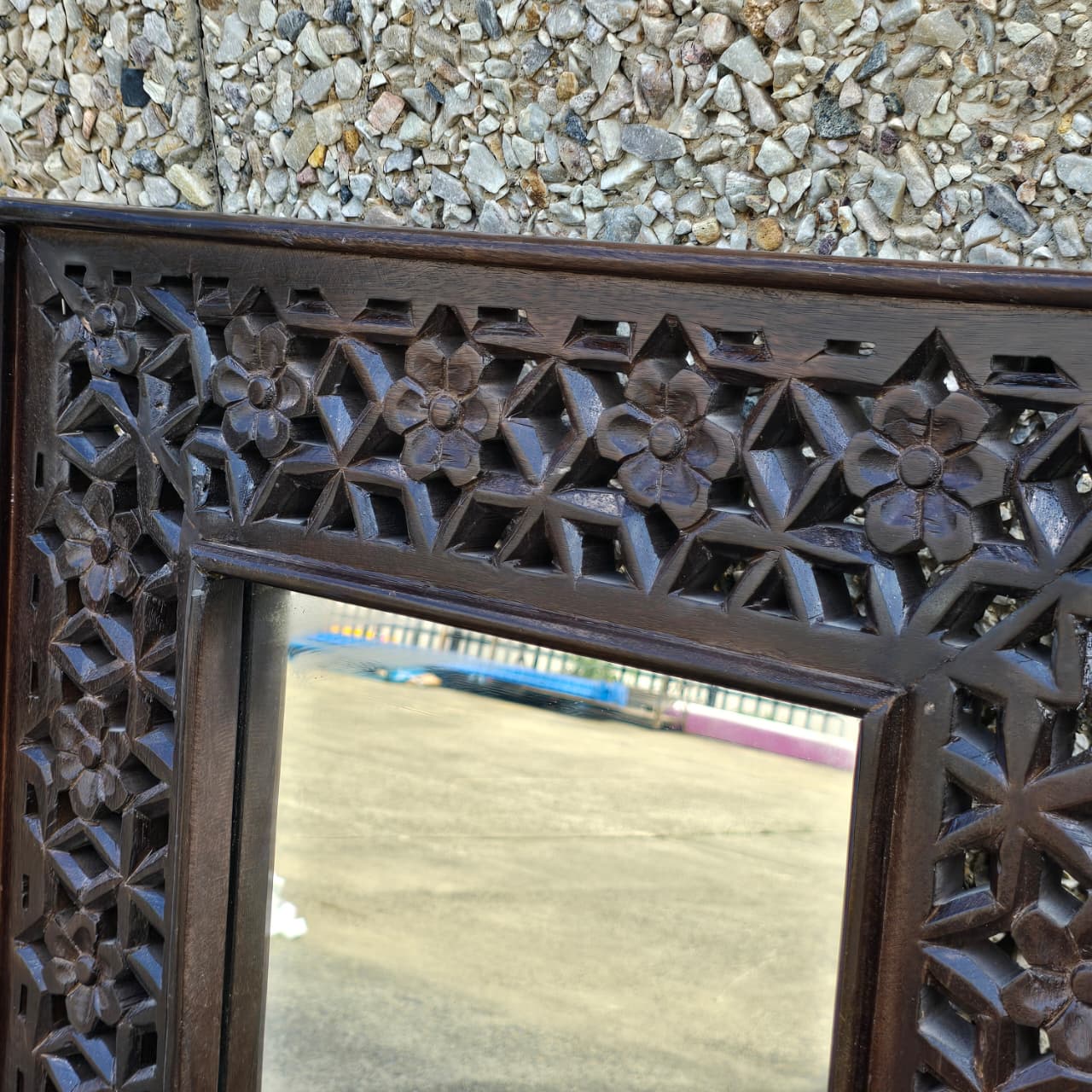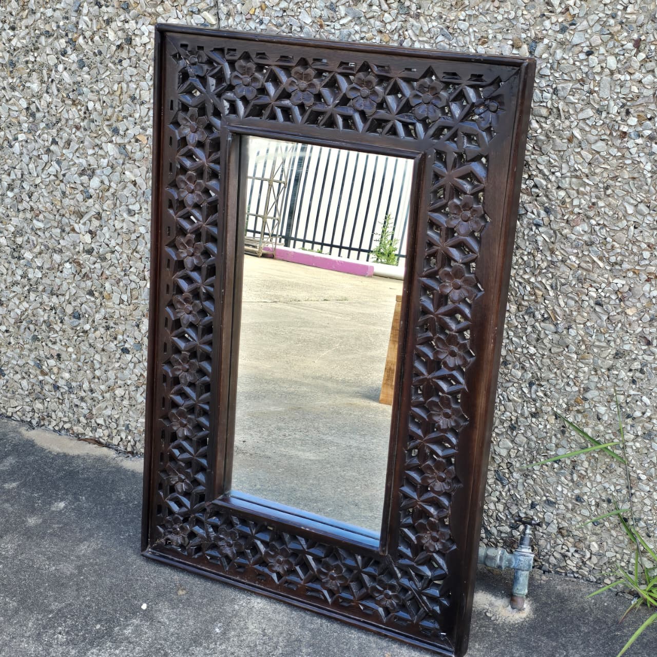 Indian Handmade Carved Wooden Mirror Frame Chocolate Brown 90X5X60Cm