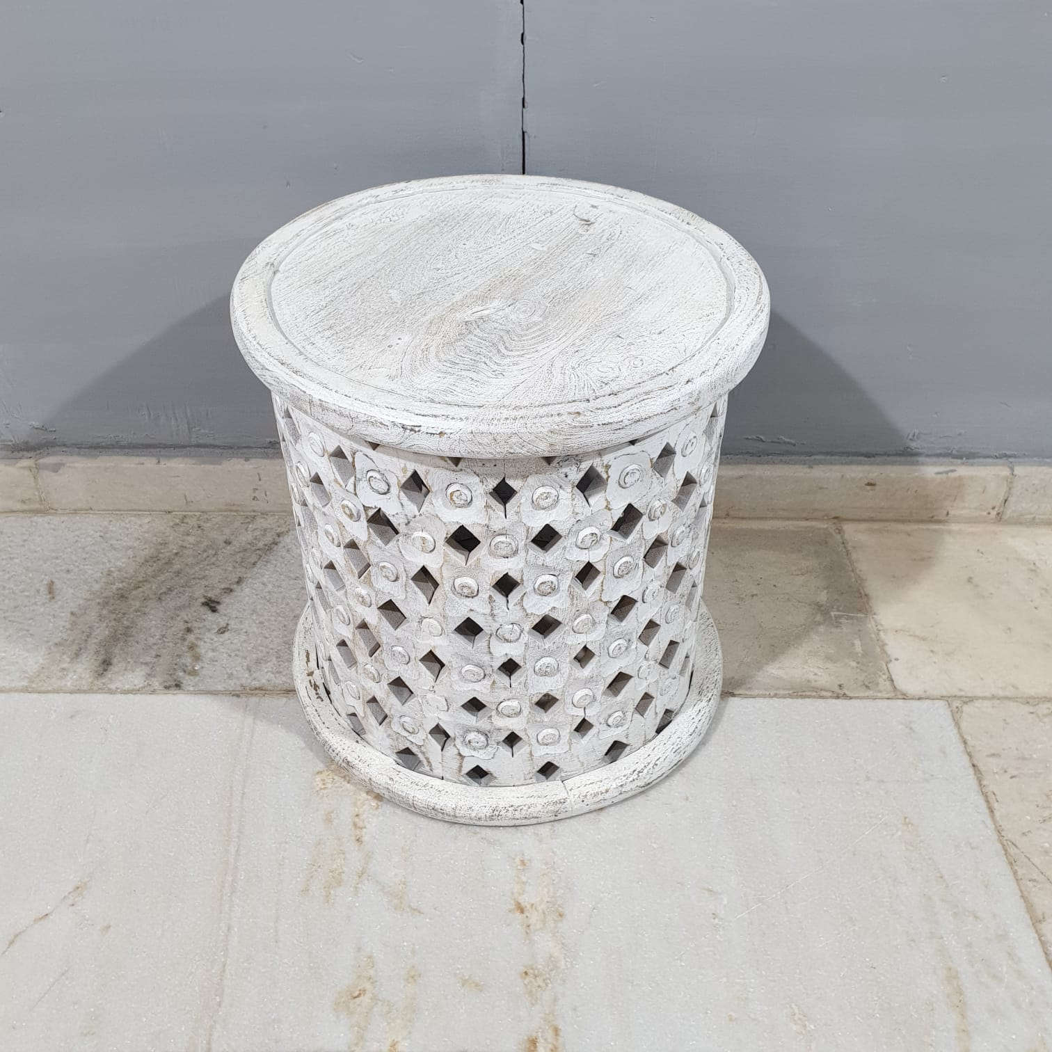Bristol Bamileke Hand Carved Indian Solid Wood Round Coffee Table C97