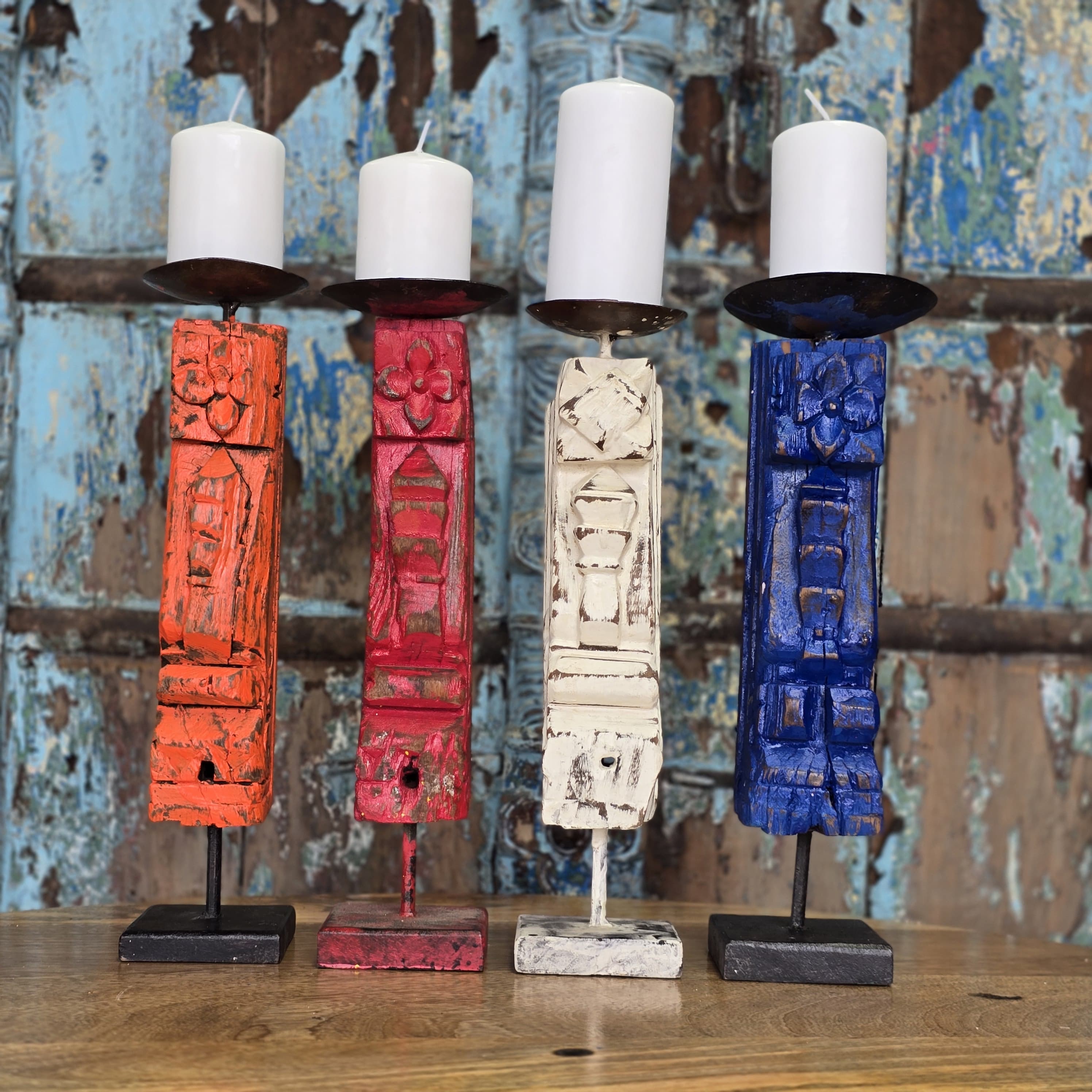Indian Wooden Candle Holder Stand (Set of 4) 107