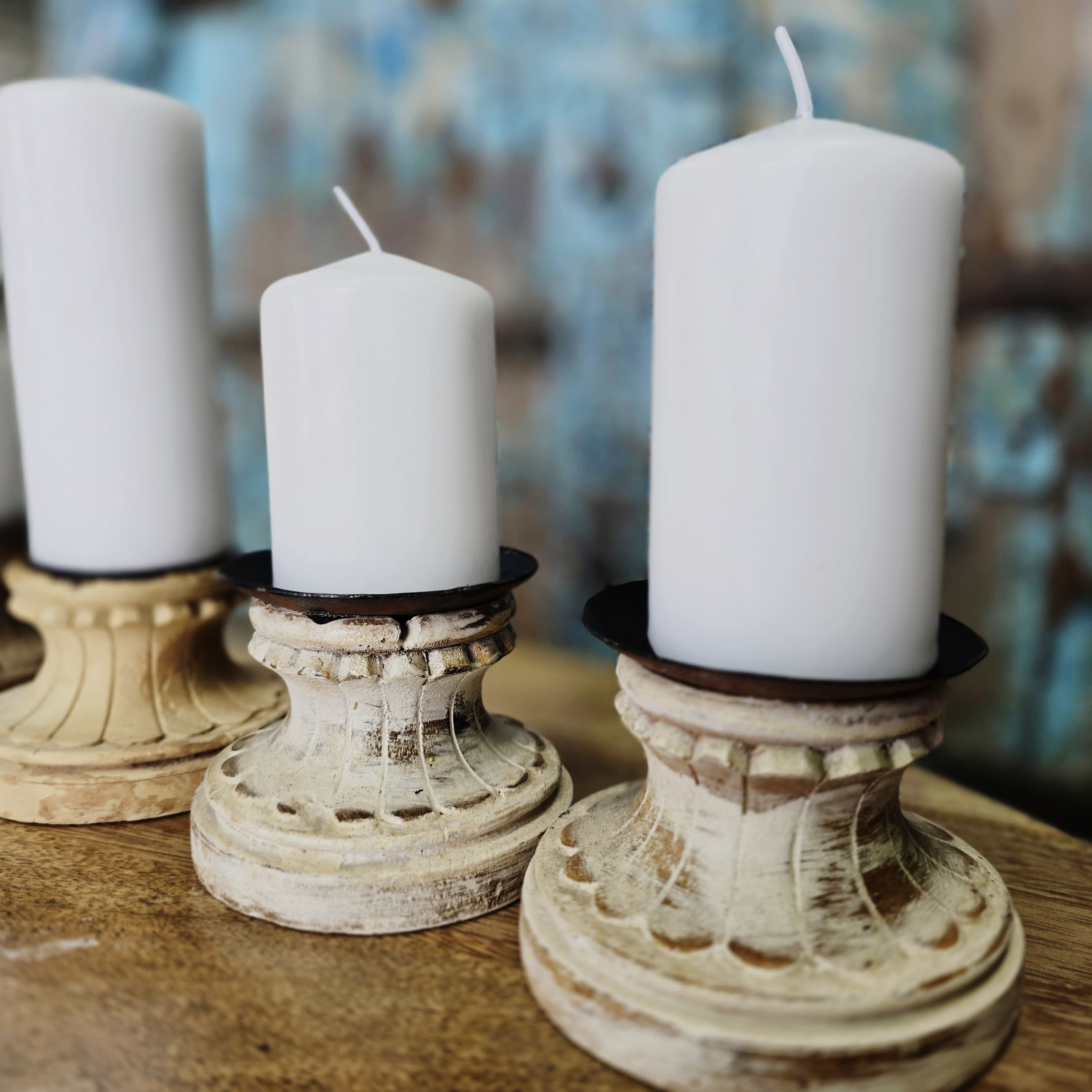 Indian Wooden Hand Carved Candle Holder Stand (Set of 5) 162