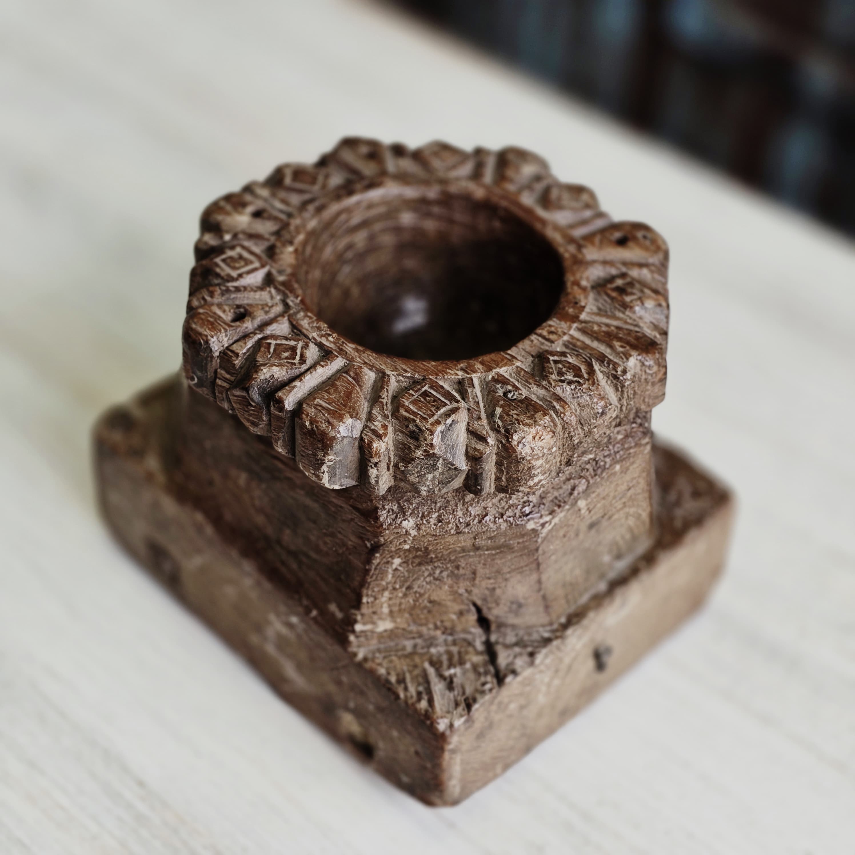 Indian Wooden Hand Carved Candle Holder Stand 145