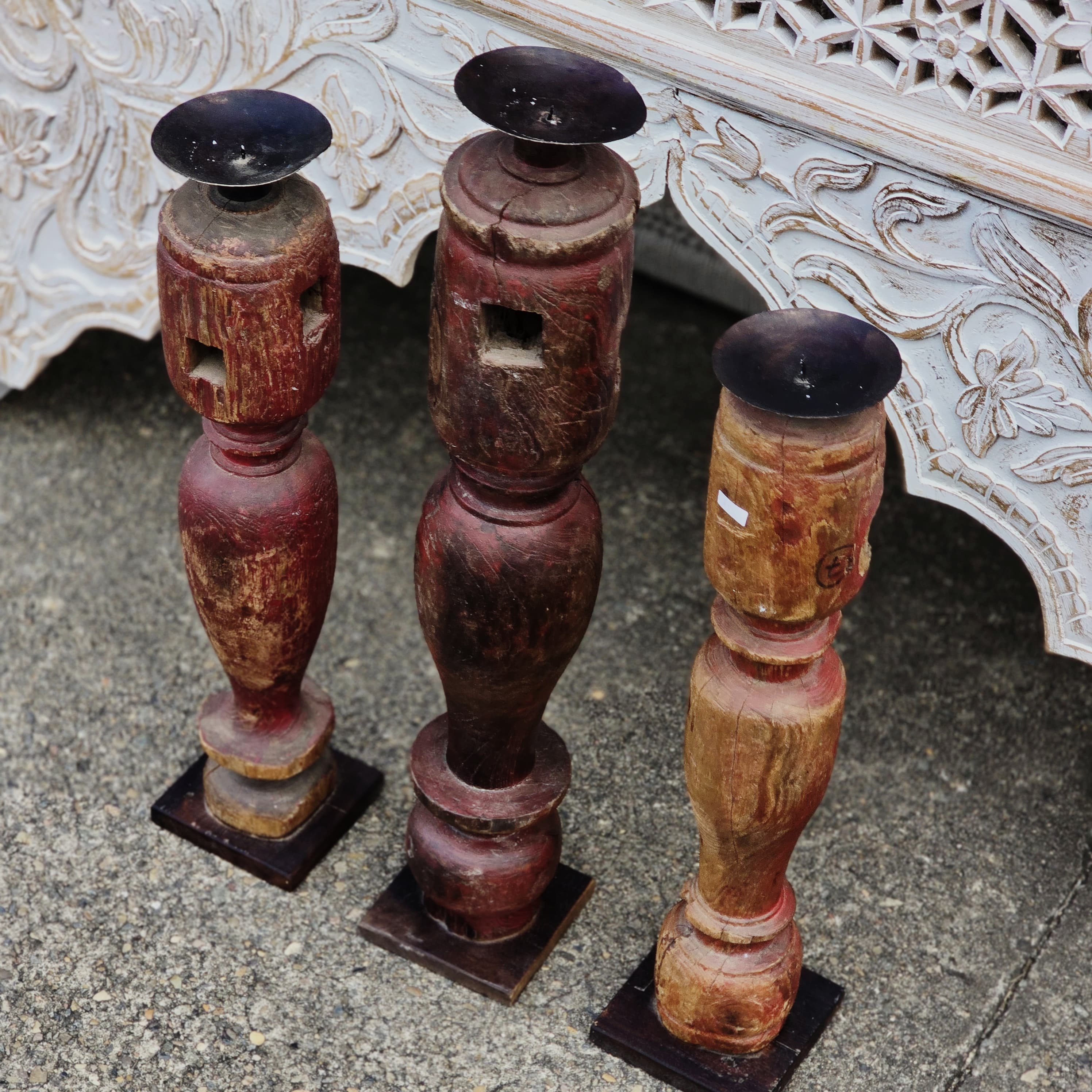 Indian Wooden Hand Carved Candle Holder Stand (Set of 3) 267